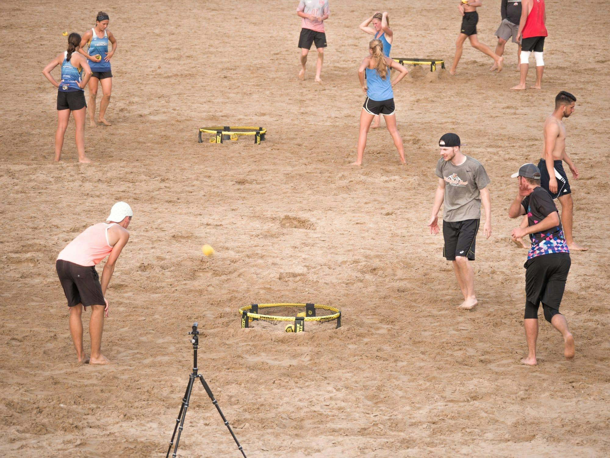 Le Spikeball est un nouveau jeu qui se joue deux contre deux. Il est possible de se procurer un ensemble dans les magasins de sport. Le jeu se joue avec un filet de forme ronde sur pattes et posé au sol au niveau des chevilles ainsi qu’avec trois balles. Pour gagner, il faut être la première équipe à récolter 21 points. Les règles ressemblent un peu au volleyball. Pour jouer, il faut frapper la balle pour la faire ricocher contre les adversaires. Ces derniers ont jusqu'à trois coups pour le contrôler et le renvoyer l’équipe adverse. Lorsque l’autre équipe manque, on récolte les points. Le jeu de spikeball s’installe autant sur la pelouse que sur le sable.