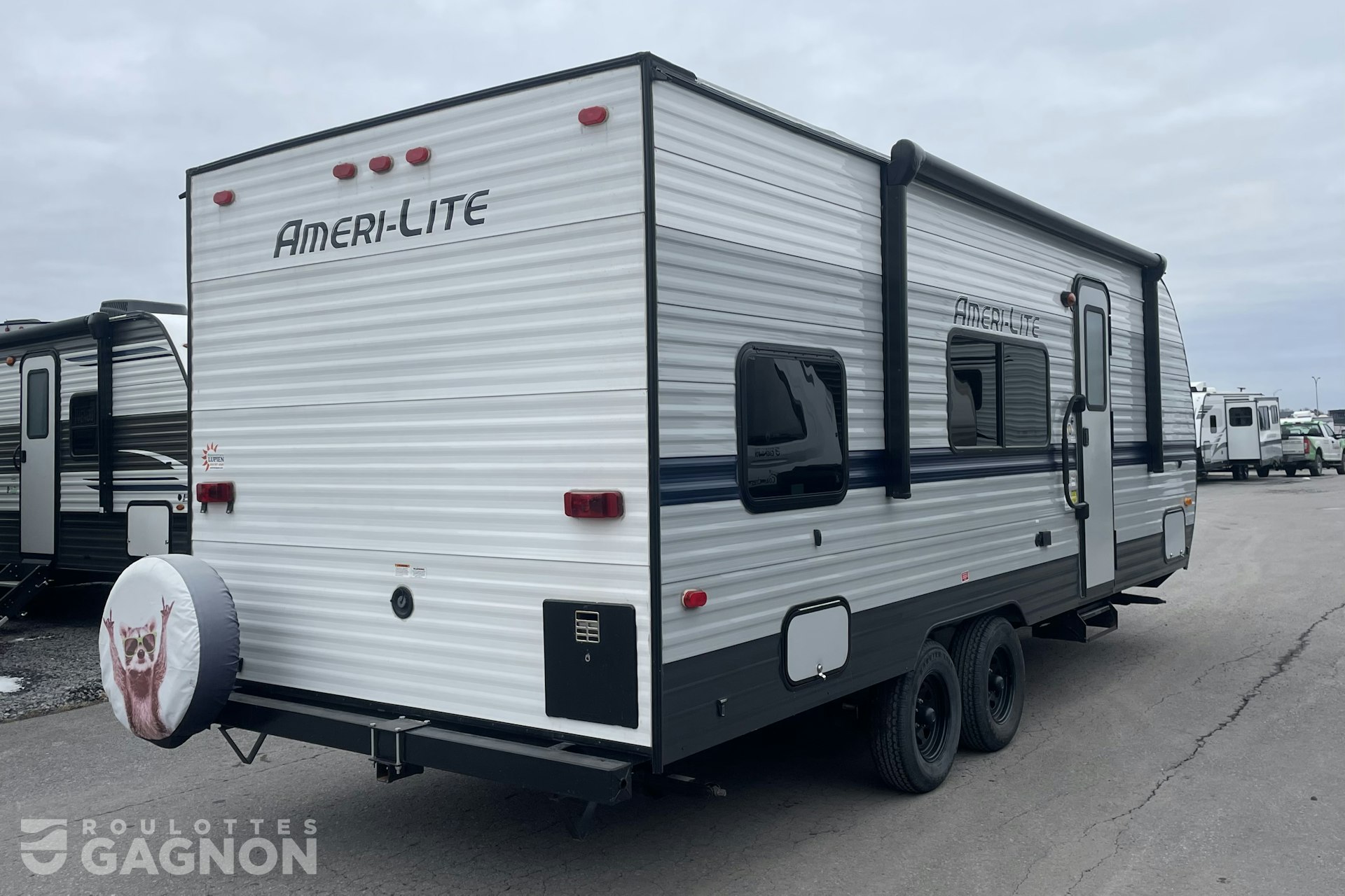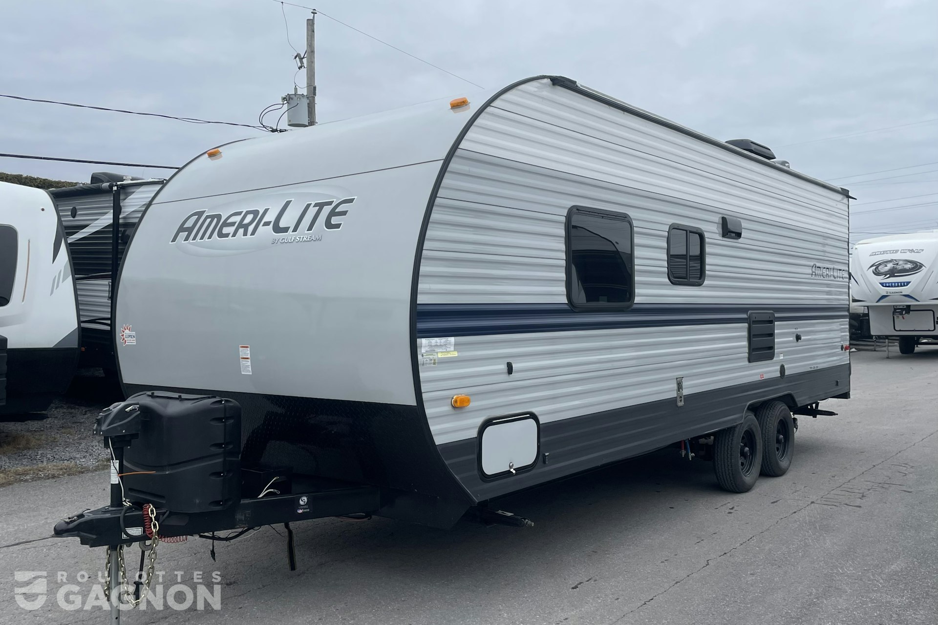 Roulotte Amerilite 248 BH 2022 usagée à vendre. Cette roulotte de voyage fabriquée par Gulfstream est idéale pour une famille et peut coucher jusqu’à 8 personnes. La Amerilite 248 BH mesure 26,6 pieds et pèse 4 206 lb, son revêtement est en aluminium et les options suivantes sont incluses : jack de pole électrique, vérins stabilisateurs manuels, auvent électrique, prise câble ou satellite, prise USB, téléviseur, éclairage au DEL, climatiseur et puits de lumière.