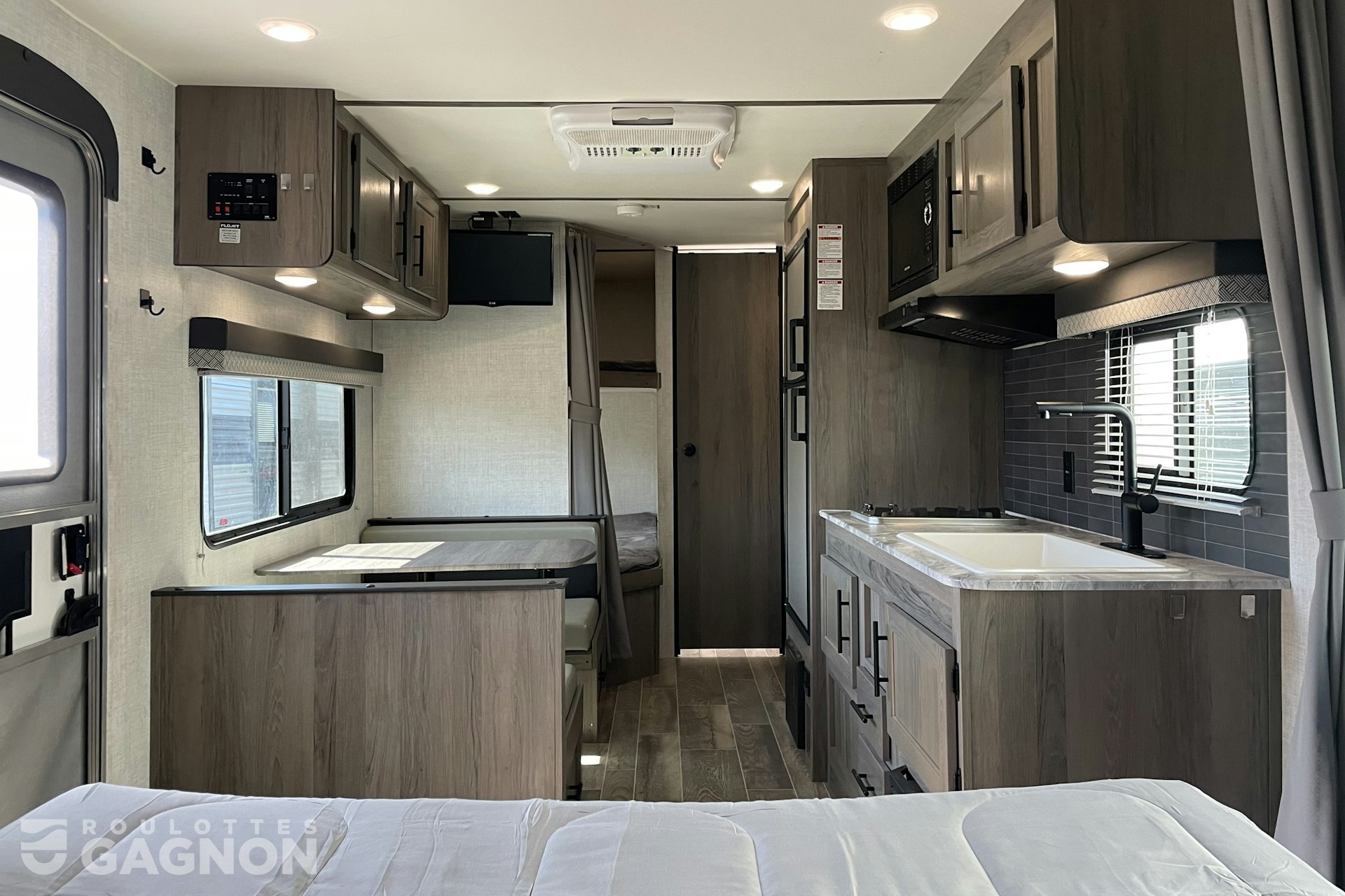 Note: Nous nous efforçons pour décrire les spécifications et les options des roulottes affichées sur notre site le plus précisément possible, toutefois, des erreurs peuvent se glisser. Nous sommes désolés si tel était le cas. Les photos sont à titre indicatif seulement. Les couleurs et les options peuvent varier selon les derniers changements apportés par le fabricant.