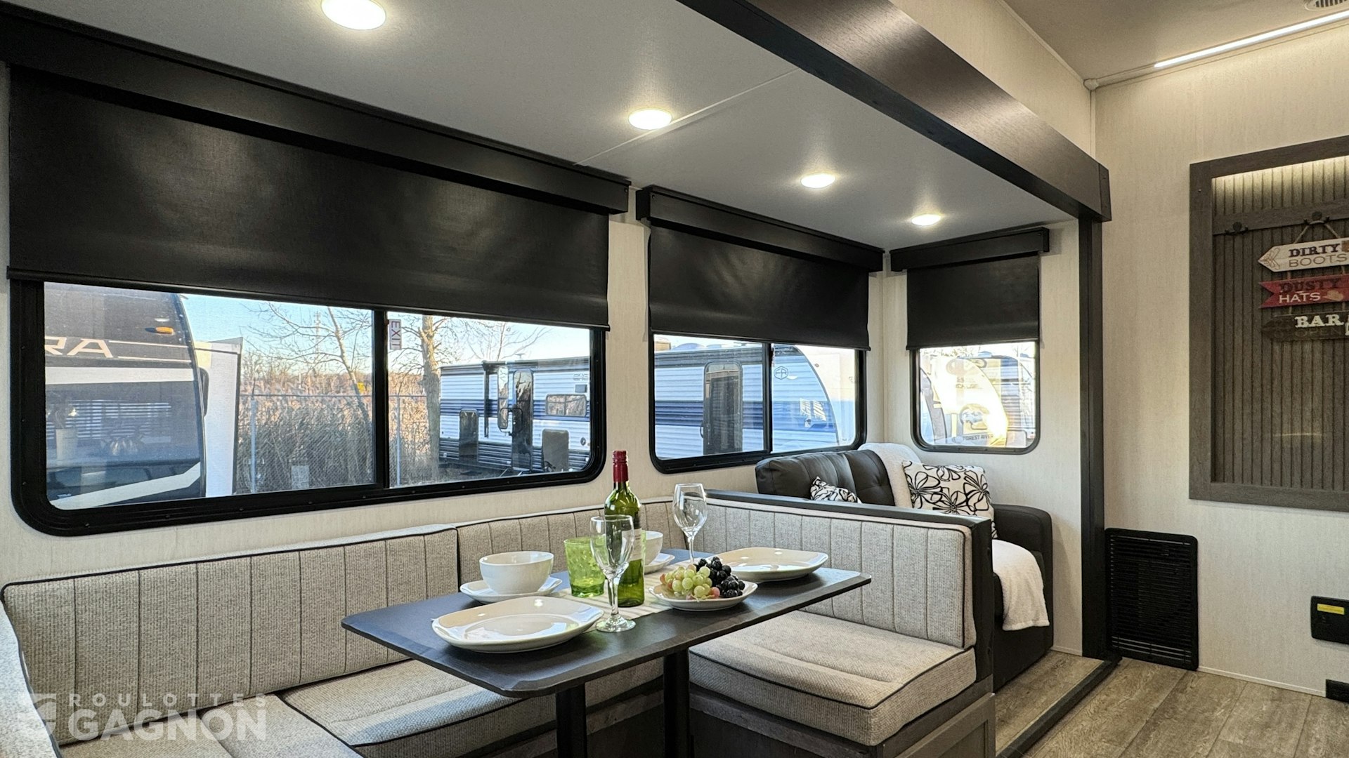 Note: Nous nous efforçons pour décrire les spécifications et les options des roulottes affichées sur notre site le plus précisément possible, toutefois, des erreurs peuvent se glisser. Nous sommes désolés si tel était le cas. Les photos sont à titre indicatif seulement. Les couleurs et les options peuvent varier selon les derniers changements apportés par le fabricant.