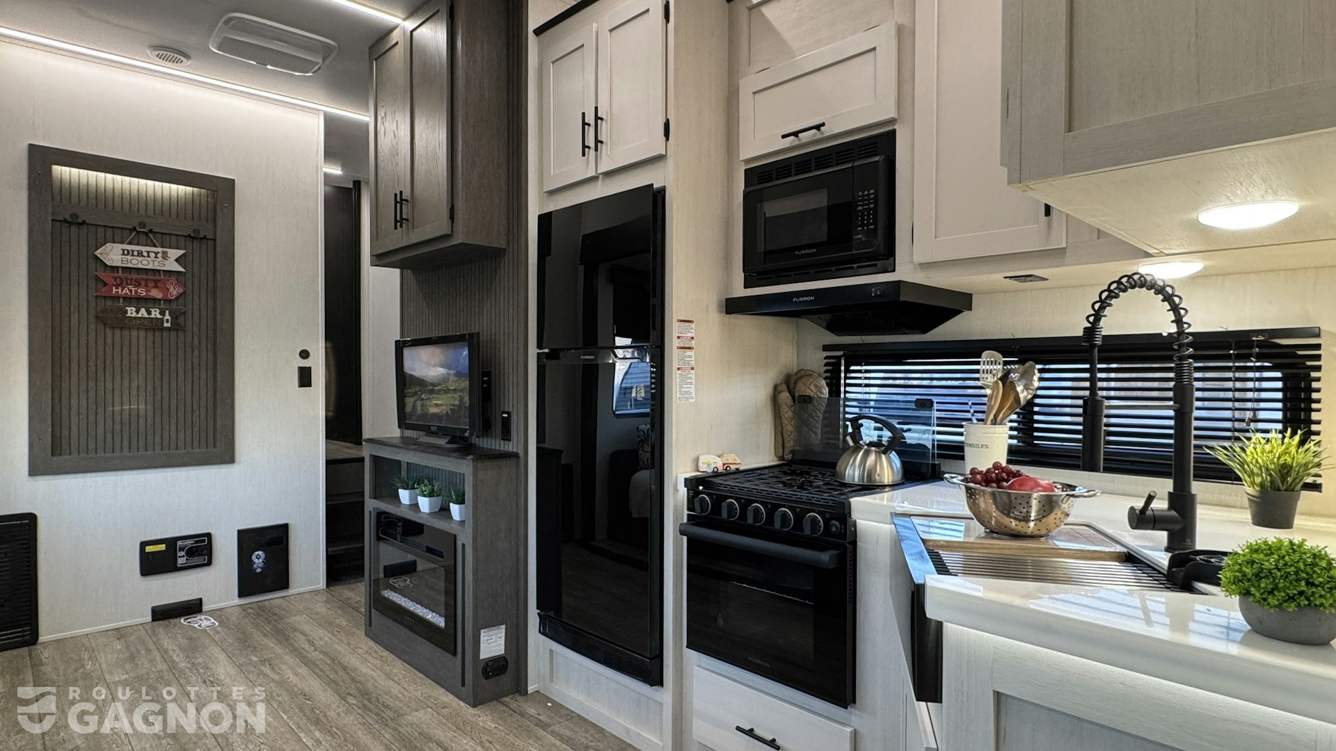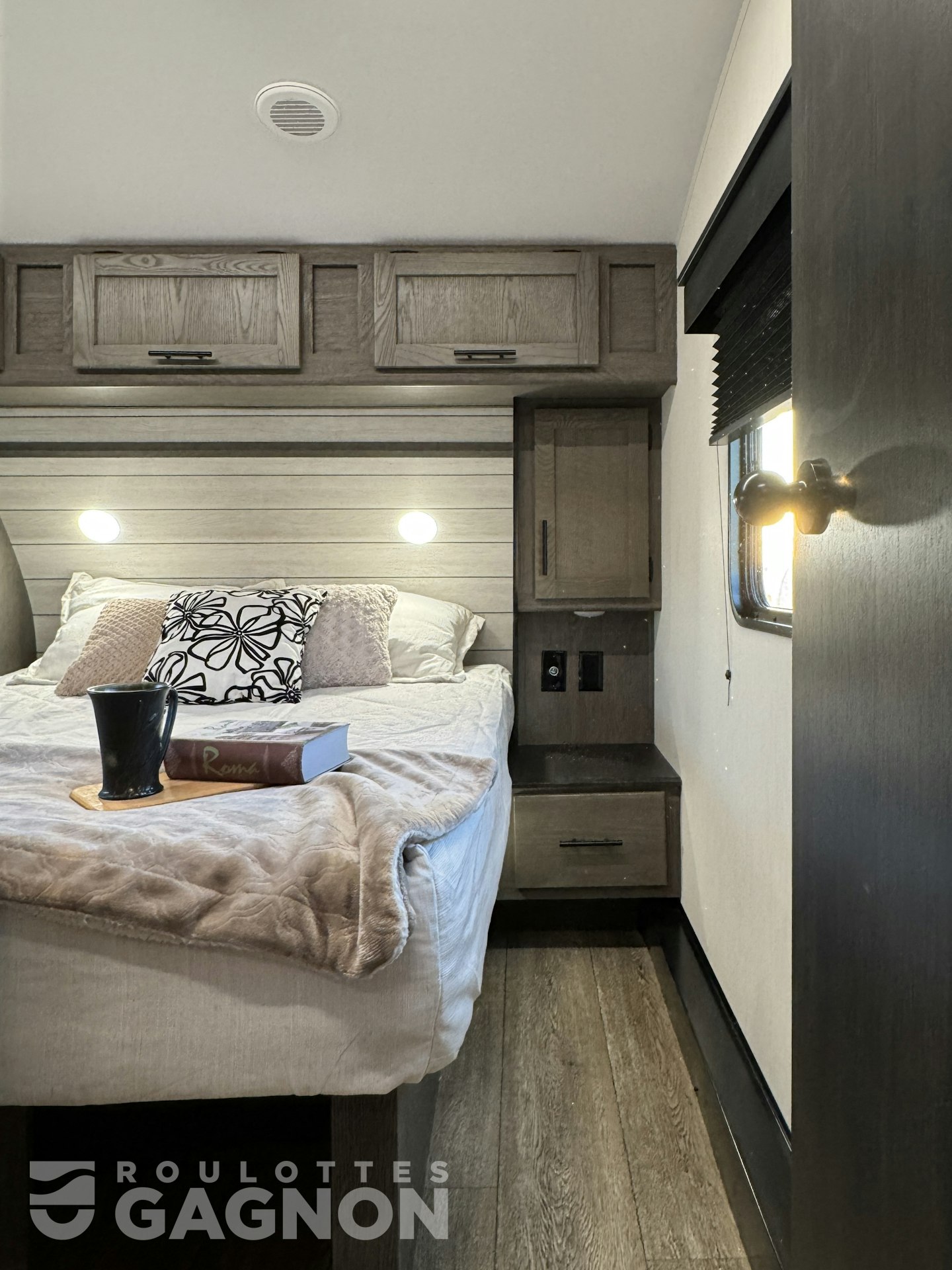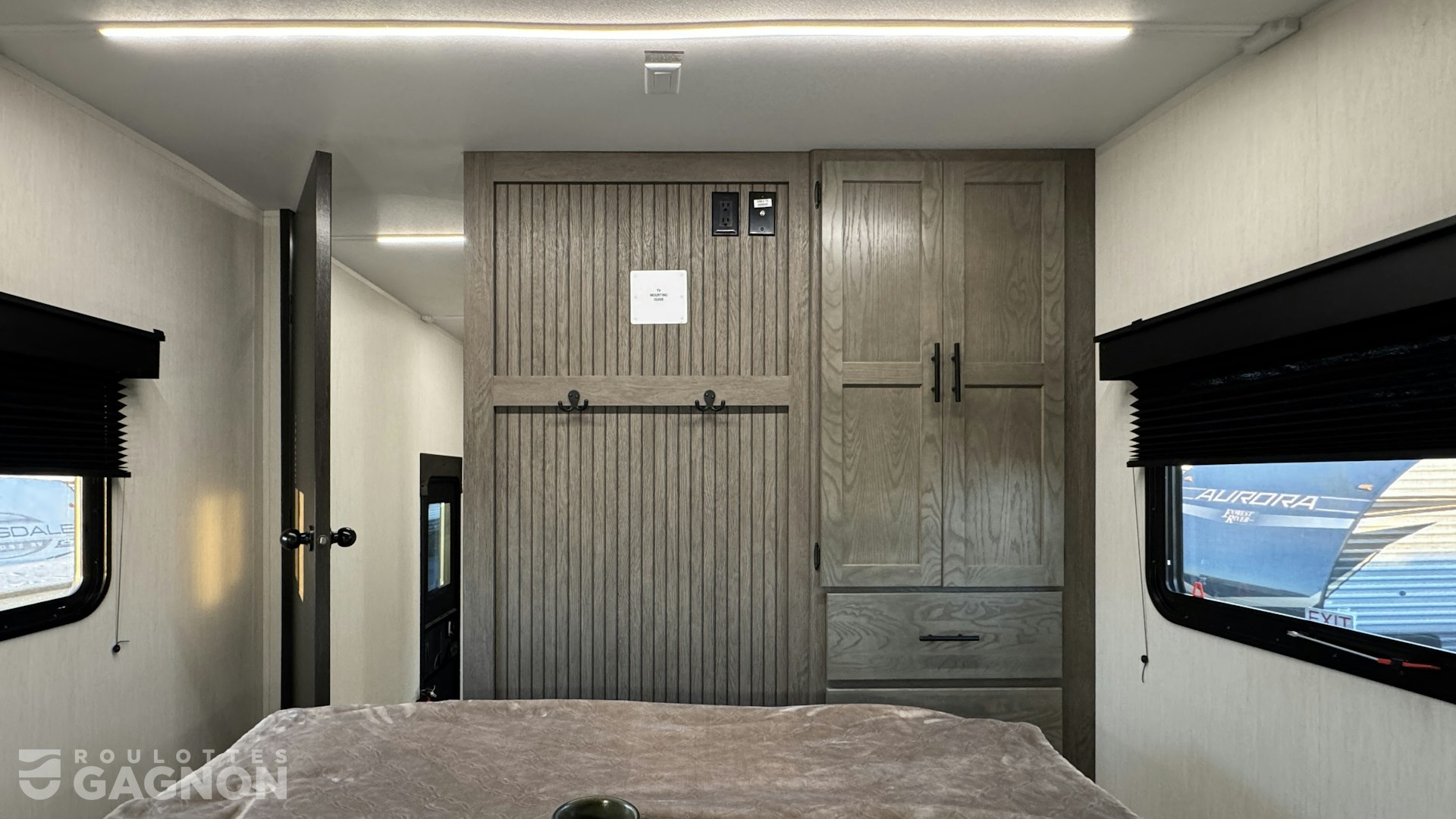 Roulotte Arctic Wolf 287 BH 2026 neuve à vendre. Cette fifth wheel fabriquée par Forest River est idéale pour une famille et peut coucher jusqu’à 10 personnes. La Arctic Wolf 287 BH mesure 35,2 pieds et pèse 8 330 lb, son revêtement est en gel coat et les options suivantes sont incluses : jack de pole électrique, vérins stabilisateurs auto-nivelants, préparation pour caméra de recul, auvent électrique, marche pied en un bloc (solid step), prise câble ou satellite, prise USB, téléviseur, éclairage au DEL, cuisinette extérieure, climatiseur, puits de lumière, douche extérieure, mags, hitch arrière, panneau solaire, fenêtres à verre énergétique réfléchissant, chauffe-eau instantané, prises usb c, balayeuse centrale, foyer électrique et éclairage à intensité variable.