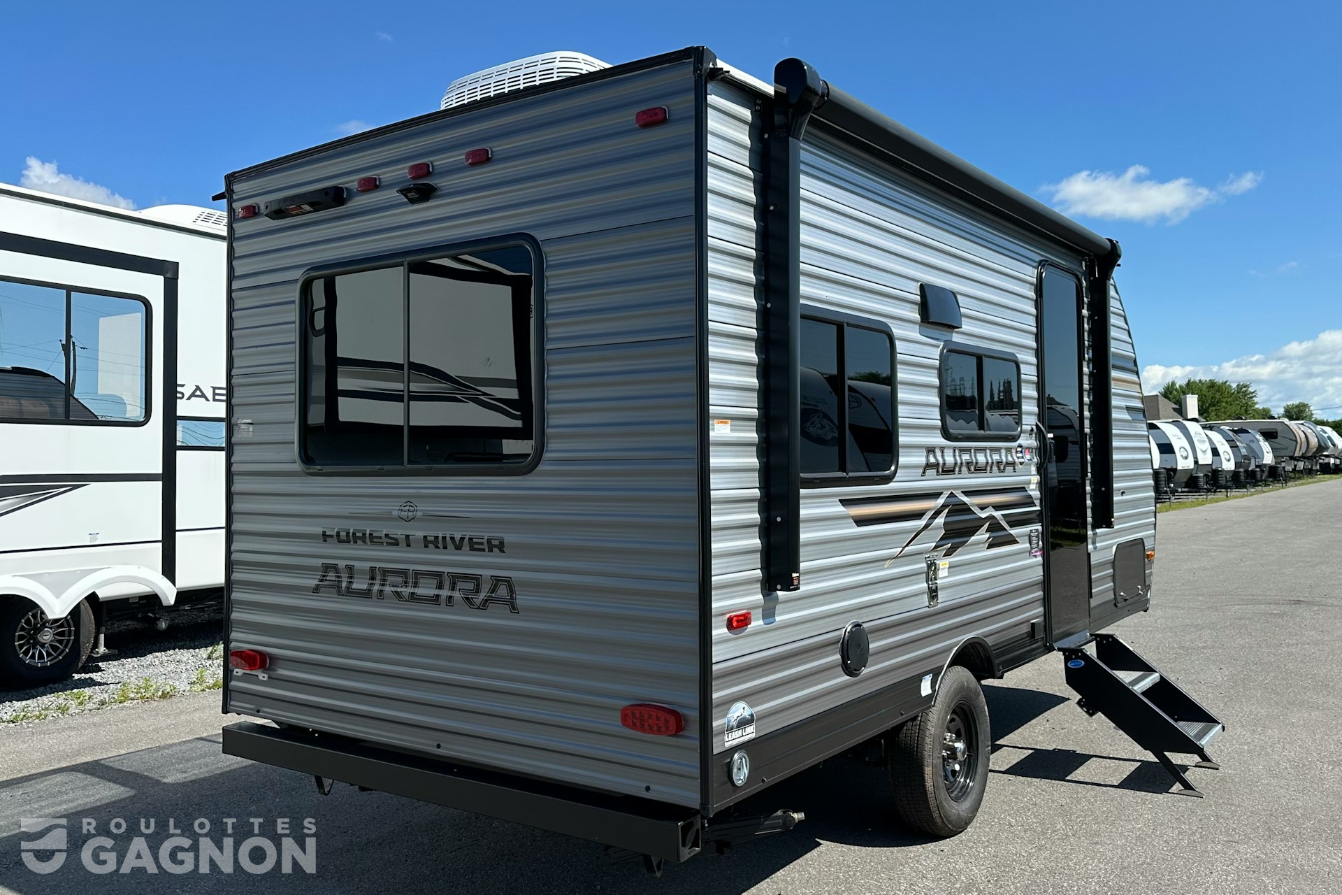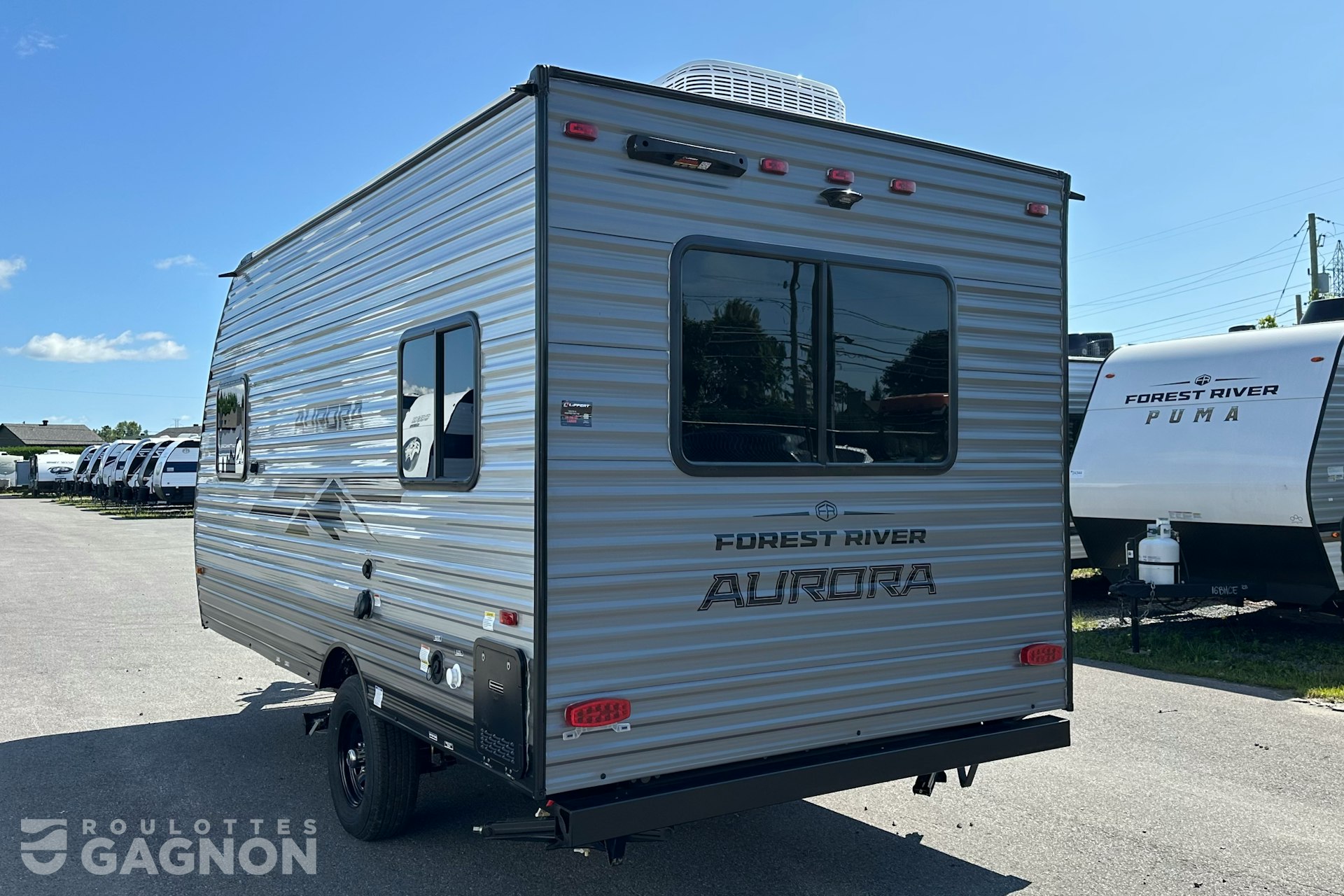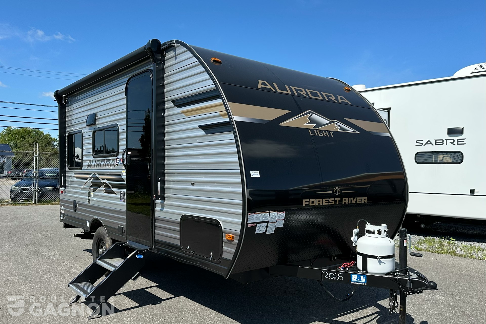 Roulotte Aurora 15 RDX 2026 neuve à vendre. Cette roulotte de voyage fabriquée par Forest River est idéale pour un couple et peut coucher jusqu’à 4 personnes. La Aurora 15 RDX mesure 19,6 pieds et pèse 3 116 lb, son revêtement est en aluminium et les options suivantes sont incluses : vérins stabilisateurs manuels, préparation pour caméra de recul, auvent électrique, marche pied en un bloc (solid step), prise câble ou satellite, bluetooth, prise USB, radio, hauts parleurs extérieurs, éclairage au DEL, climatiseur et préparation pour panneau solaire.
