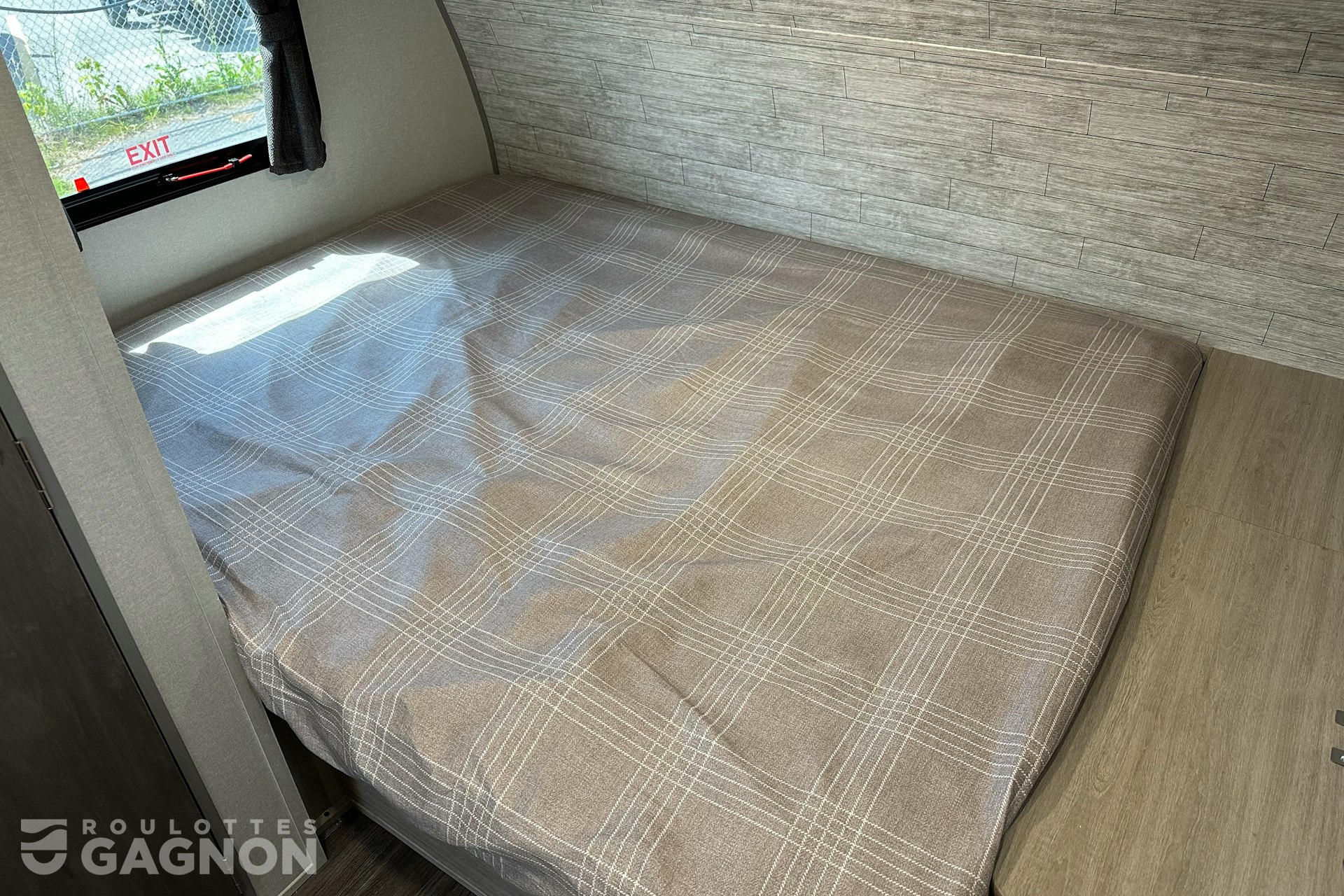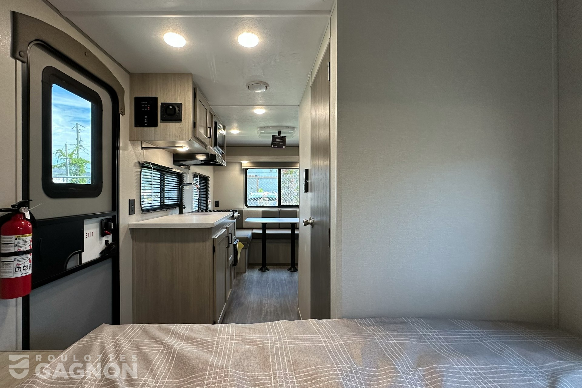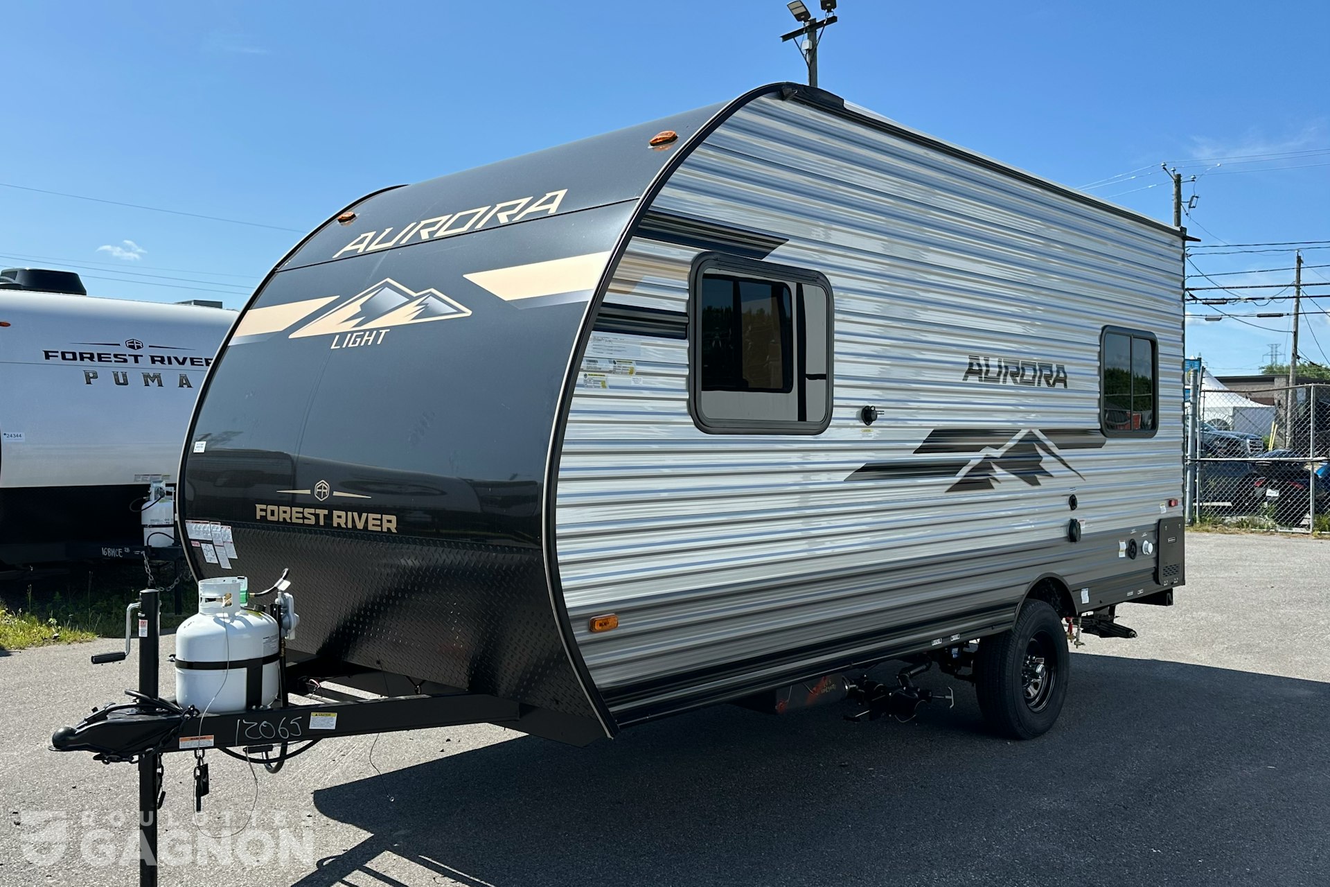 Roulotte Aurora 15 RDX 2026 neuve à vendre. Cette roulotte de voyage fabriquée par Forest River est idéale pour un couple et peut coucher jusqu’à 4 personnes. La Aurora 15 RDX mesure 19,6 pieds et pèse 3 116 lb, son revêtement est en aluminium et les options suivantes sont incluses : vérins stabilisateurs manuels, préparation pour caméra de recul, auvent électrique, marche pied en un bloc (solid step), prise câble ou satellite, bluetooth, prise USB, radio, hauts parleurs extérieurs, éclairage au DEL, climatiseur et préparation pour panneau solaire.