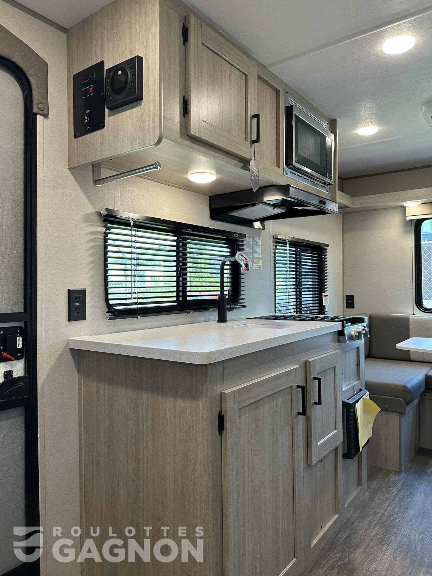 Note: Nous nous efforçons pour décrire les spécifications et les options des roulottes affichées sur notre site le plus précisément possible, toutefois, des erreurs peuvent se glisser. Nous sommes désolés si tel était le cas. Les photos sont à titre indicatif seulement. Les couleurs et les options peuvent varier selon les derniers changements apportés par le fabricant.