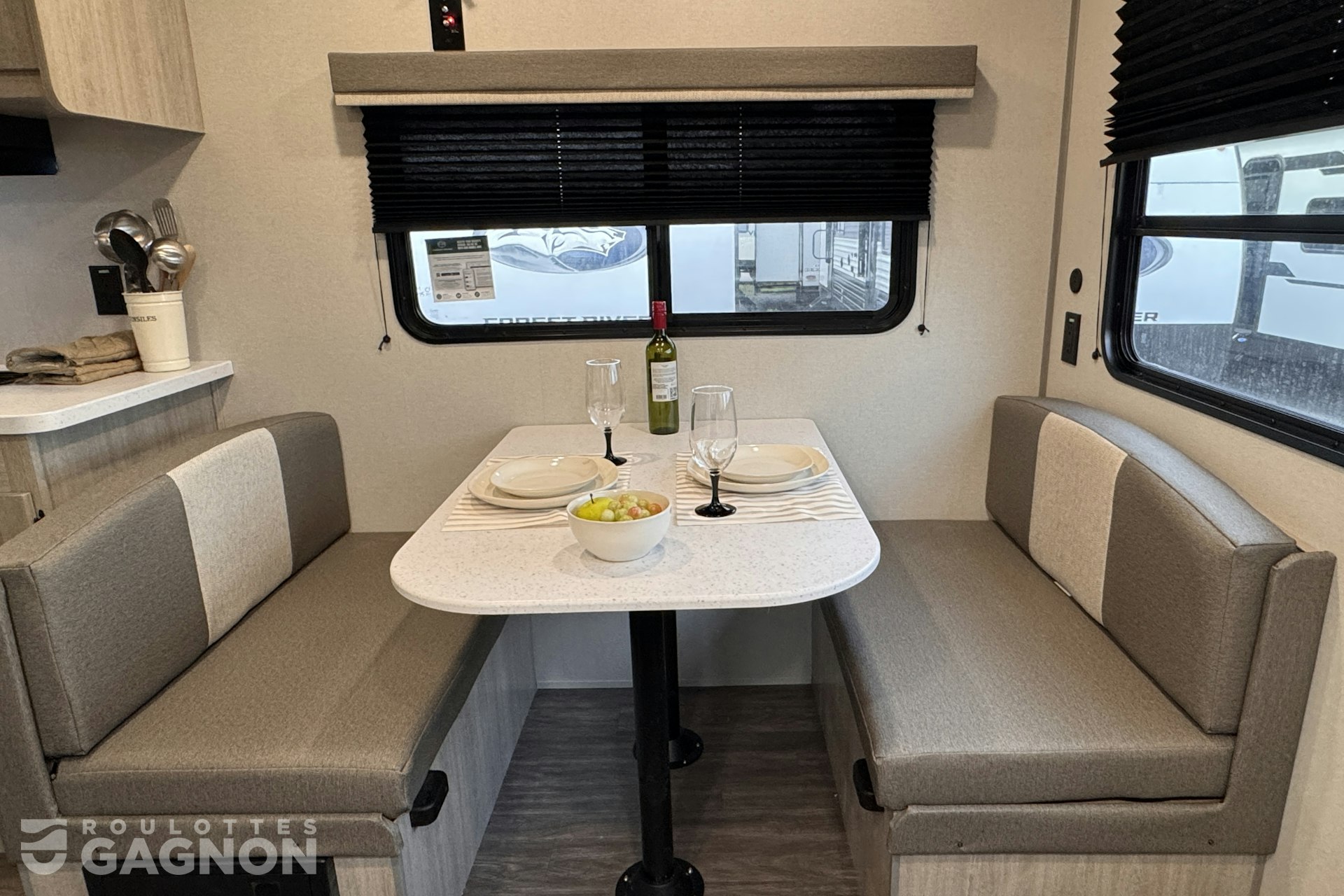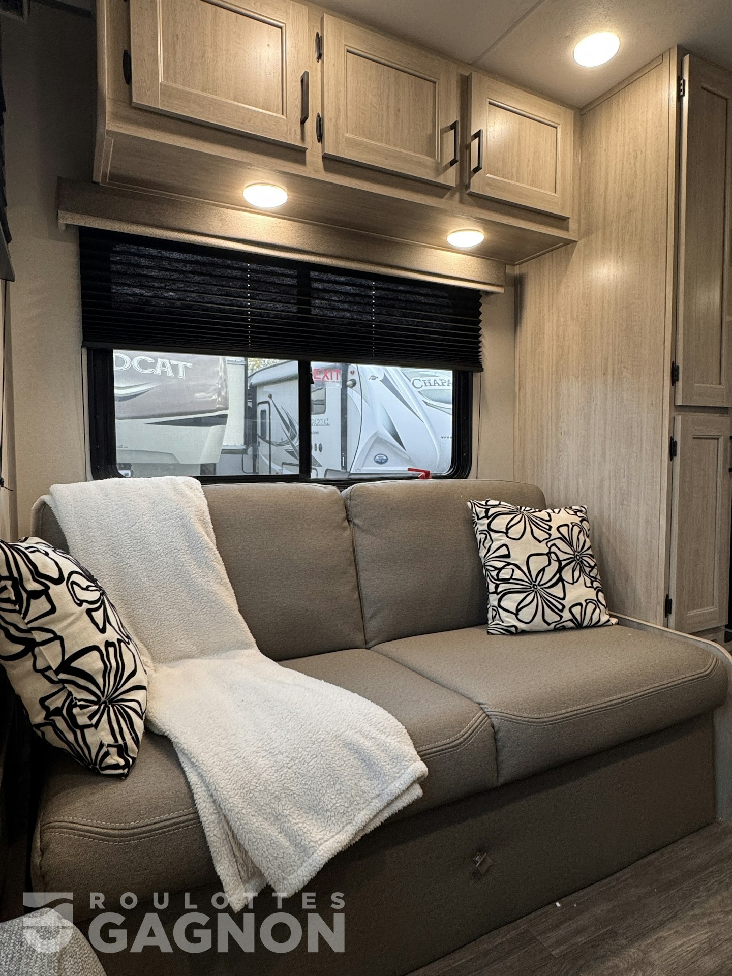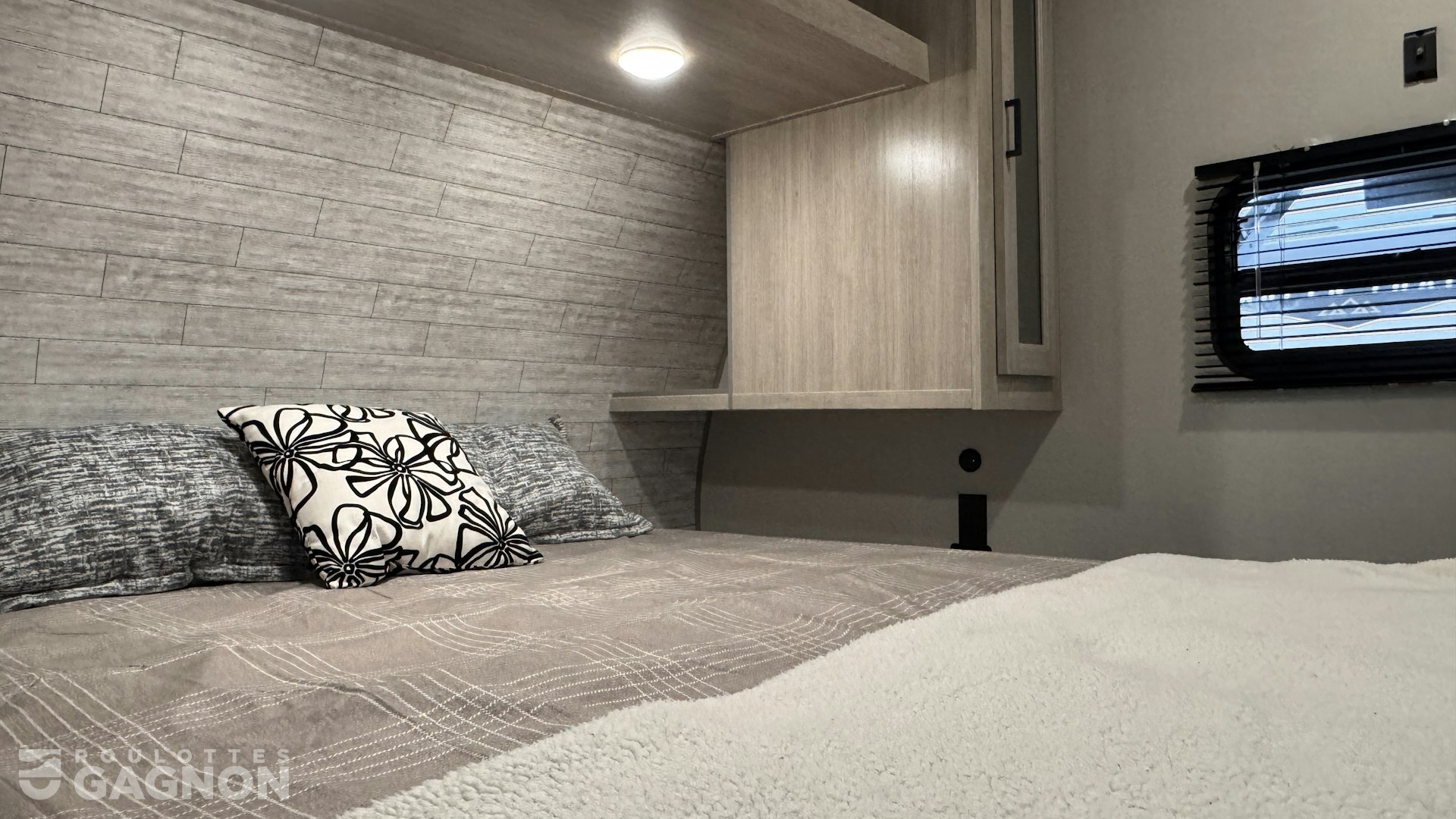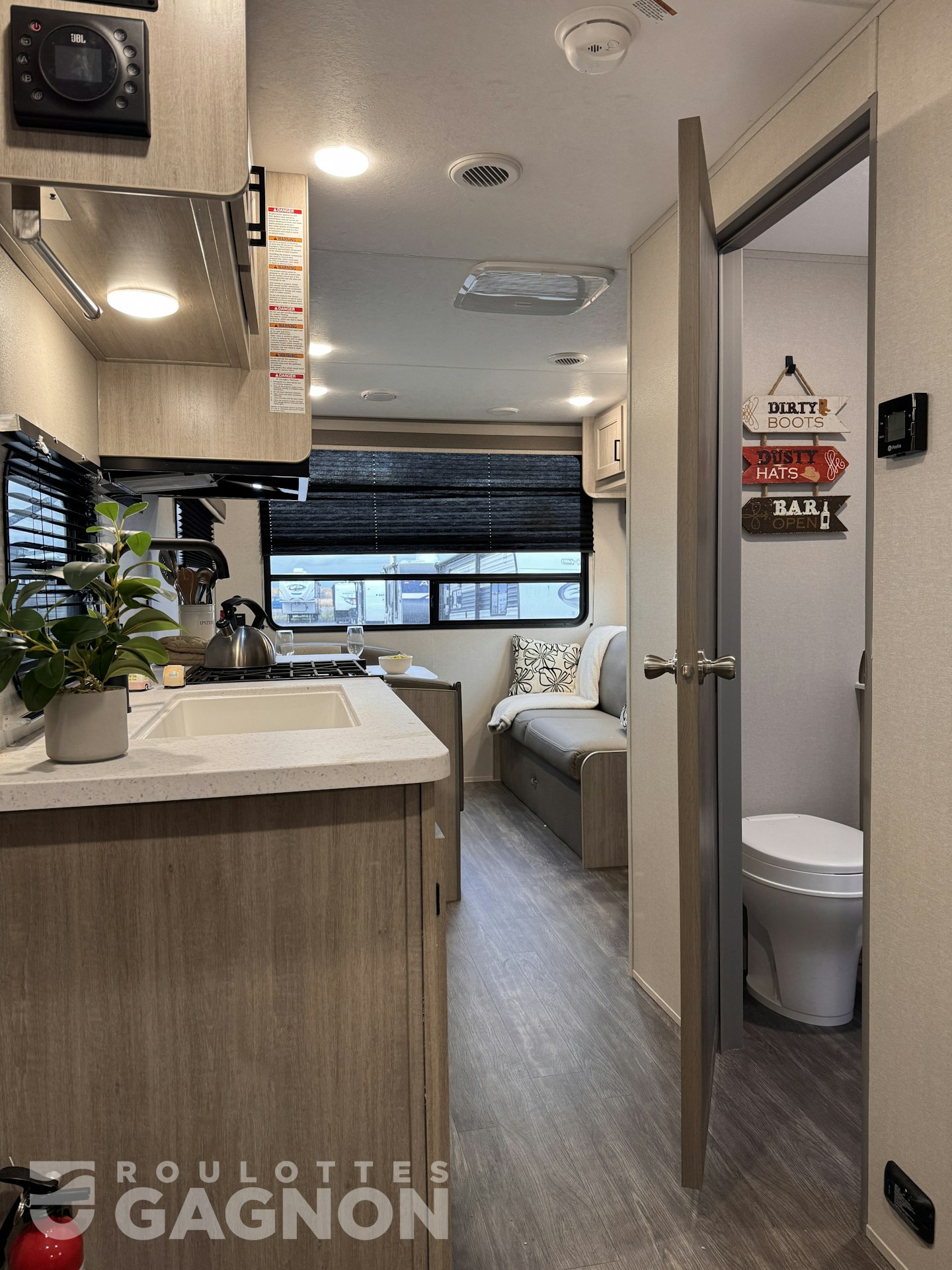 Roulotte Aurora 22 EPIC 2026 neuve à vendre. Cette roulotte de voyage fabriquée par Forest River est idéale pour un couple et peut coucher jusqu’à 5 personnes. La Aurora 22 EPIC mesure 25,9 pieds et pèse 4 670 lb, son revêtement est en aluminium et les options suivantes sont incluses : jack de pole électrique, vérins stabilisateurs manuels, préparation pour caméra de recul, auvent électrique, prise câble ou satellite, bluetooth, prise USB, radio, hauts parleurs extérieurs, éclairage au DEL, climatiseur, puits de lumière, chauffe-eau instantané, prises usb c et panneau solaire.