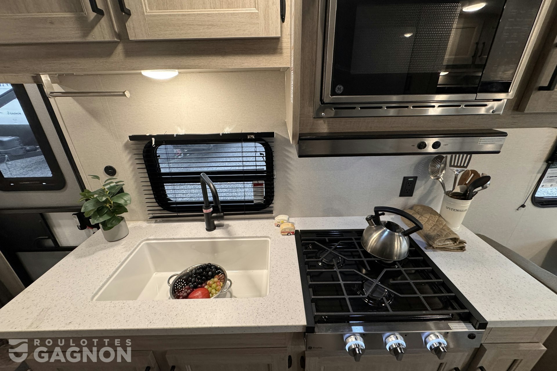 Note: Nous nous efforçons pour décrire les spécifications et les options des roulottes affichées sur notre site le plus précisément possible, toutefois, des erreurs peuvent se glisser. Nous sommes désolés si tel était le cas. Les photos sont à titre indicatif seulement. Les couleurs et les options peuvent varier selon les derniers changements apportés par le fabricant.