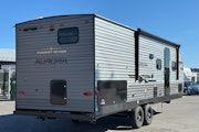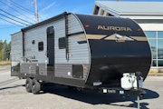 Roulotte Aurora 26 BHS 2026 neuve à vendre. Cette roulotte de voyage fabriquée par Forest River est idéale pour une famille et peut coucher jusqu’à 10 personnes. La Aurora 26 BHS mesure 30,5 pieds et pèse 6 028 lb, son revêtement est en aluminium et les options suivantes sont incluses : jack de pole électrique, vérins stabilisateurs manuels, préparation pour caméra de recul, auvent électrique, marche pied en un bloc (solid step), prise câble ou satellite, bluetooth, prise USB, radio, hauts parleurs extérieurs, éclairage au DEL, cuisinette extérieure, climatiseur, puits de lumière, spray port, prises usb c, panneau solaire et préparation pour laveuse et sécheuse.