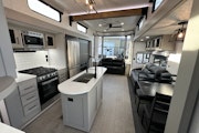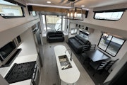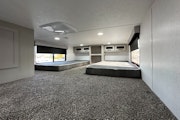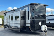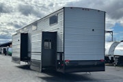 Roulotte Baypoint 400 DL 2026 neuve à vendre. Cette roulotte de parc est idéale pour un couple ou une famille et peut coucher jusqu’à 8 personnes. La Baypoint 400 DL mesure 40 pieds et pèse 12 156 lb, son revêtement est en aluminium et les options suivantes sont incluses : vérins stabilisateurs manuels, auvent électrique, marche pied en un bloc (solid step), prise câble ou satellite, bluetooth, prise USB, téléviseur, radio, éclairage au DEL, climatiseur, ventilateur de plafond, puits de lumière, douche extérieure, chauffe-eau instantané, prises usb c, foyer électrique, préparation pour laveuse et sécheuse et toiles de fenêtres électriques.