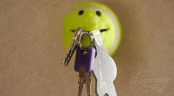 Besoin d'un ami fidèle qui vous accueille dans votre roulotte avec le sourire? Un ami utile qui garde votre trousseau de clé précieusement? Avec une simple balle de tennis, un marqueur et un x-acto vous pourrez fabriquer ce petit être sympathique et fort pratique. Voici la marche à suivre: