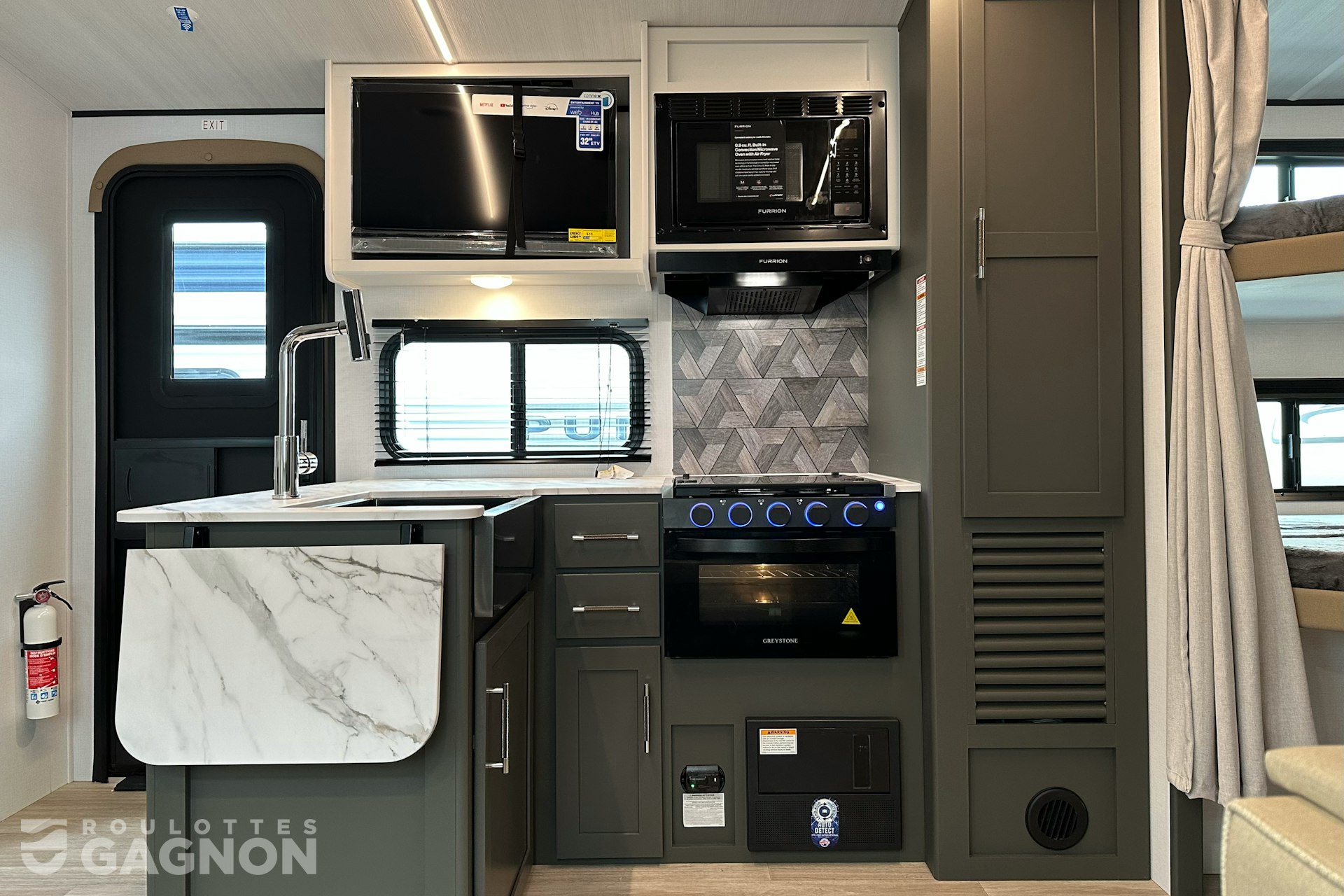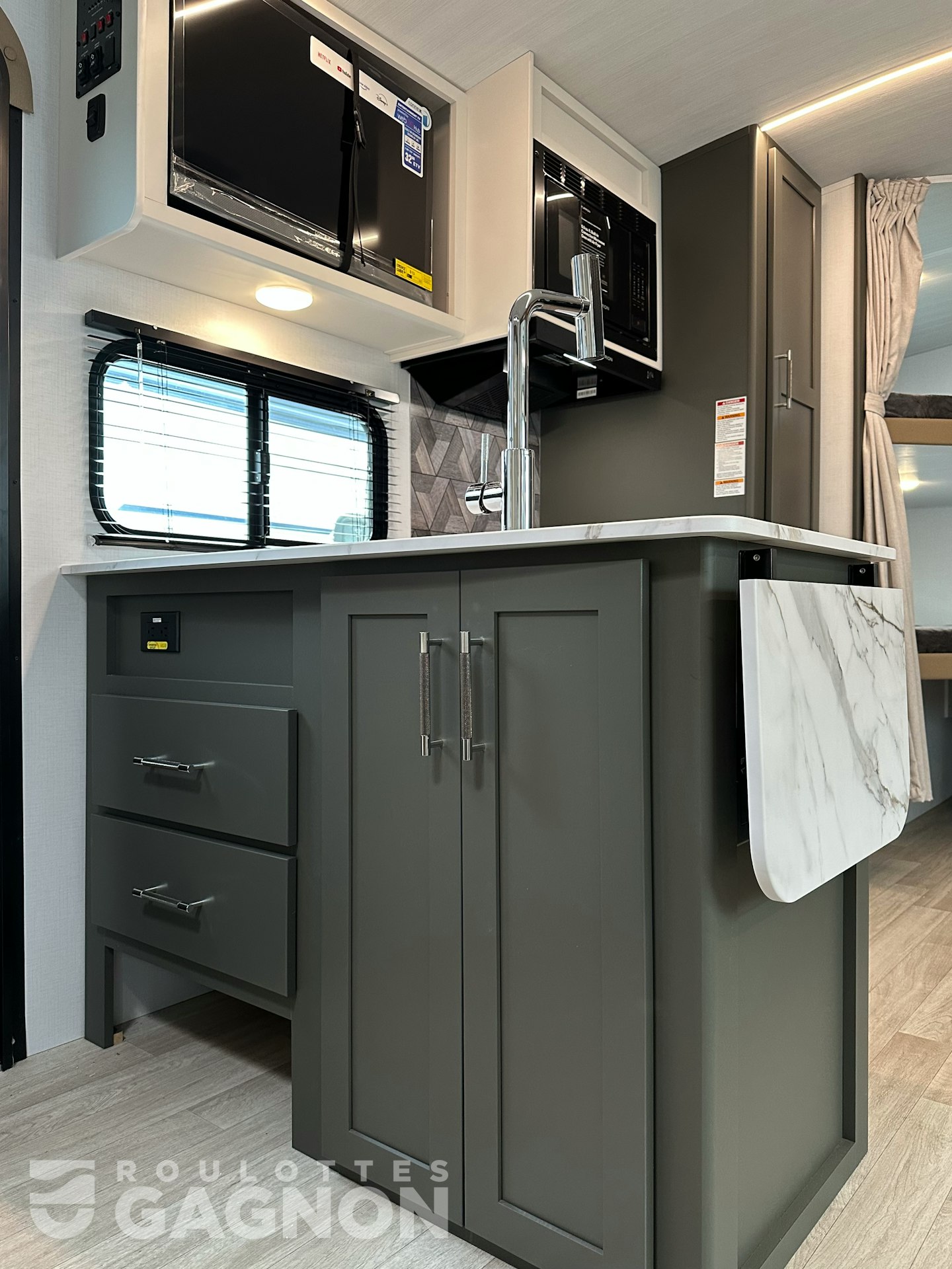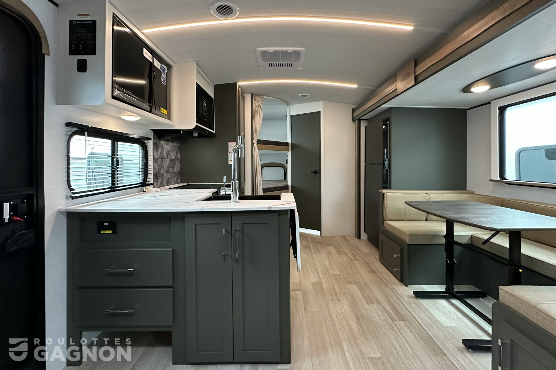Note: Nous nous efforçons pour décrire les spécifications et les options des roulottes affichées sur notre site le plus précisément possible, toutefois, des erreurs peuvent se glisser. Nous sommes désolés si tel était le cas. Les photos sont à titre indicatif seulement. Les couleurs et les options peuvent varier selon les derniers changements apportés par le fabricant.