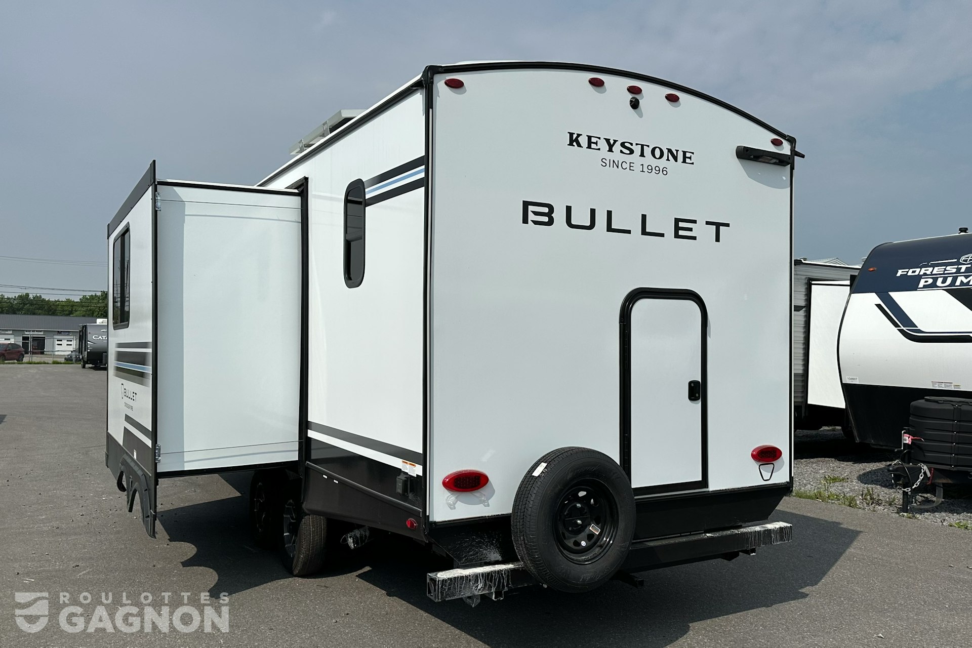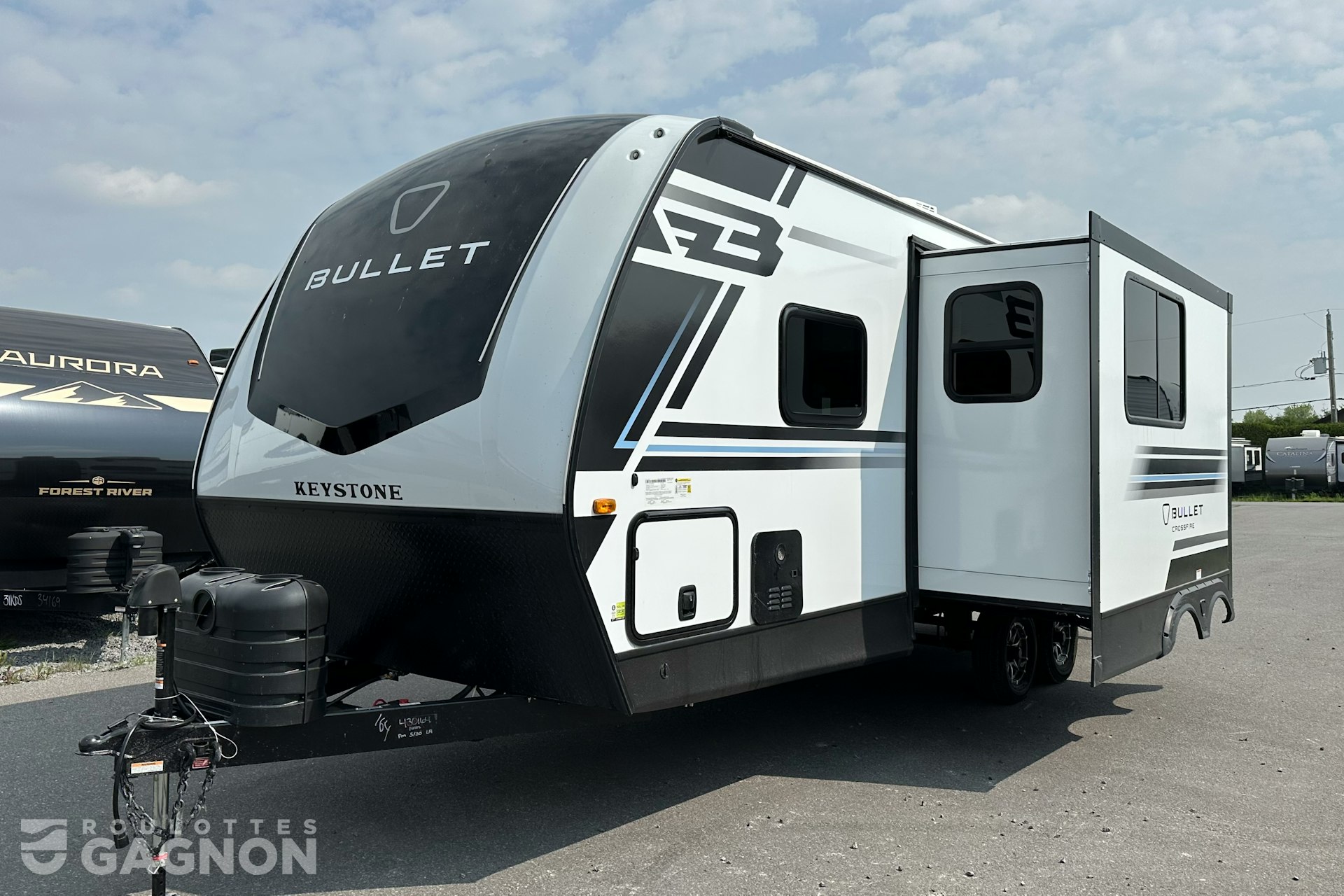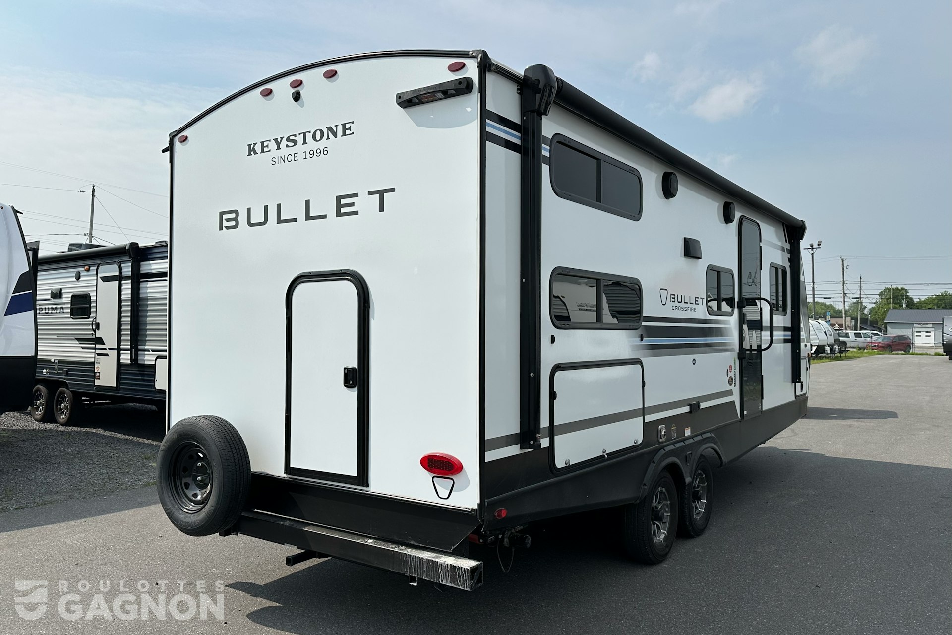 Roulotte Bullet 2290 BH 2026 neuve à vendre. Cette roulotte de voyage fabriquée par Keystone est idéale pour une famille et peut coucher jusqu’à 8 personnes. La Bullet 2290 BH mesure 27 pieds et pèse 5 670 lb, son revêtement est en fibre de verre et les options suivantes sont incluses : jack de pole électrique, vérins stabilisateurs électriques, préparation pour caméra de recul, auvent électrique, marche pied en un bloc (solid step), prise câble ou satellite, prise pour panneau solaire, bluetooth, prise USB, téléviseur, radio, hauts parleurs extérieurs, éclairage au DEL, cuisinette extérieure, climatiseur, puits de lumière, douche extérieure, mags, porte cargo, panneau solaire, chauffe-eau instantané, hitch arrière, prises usb c et éclairage à intensité variable.