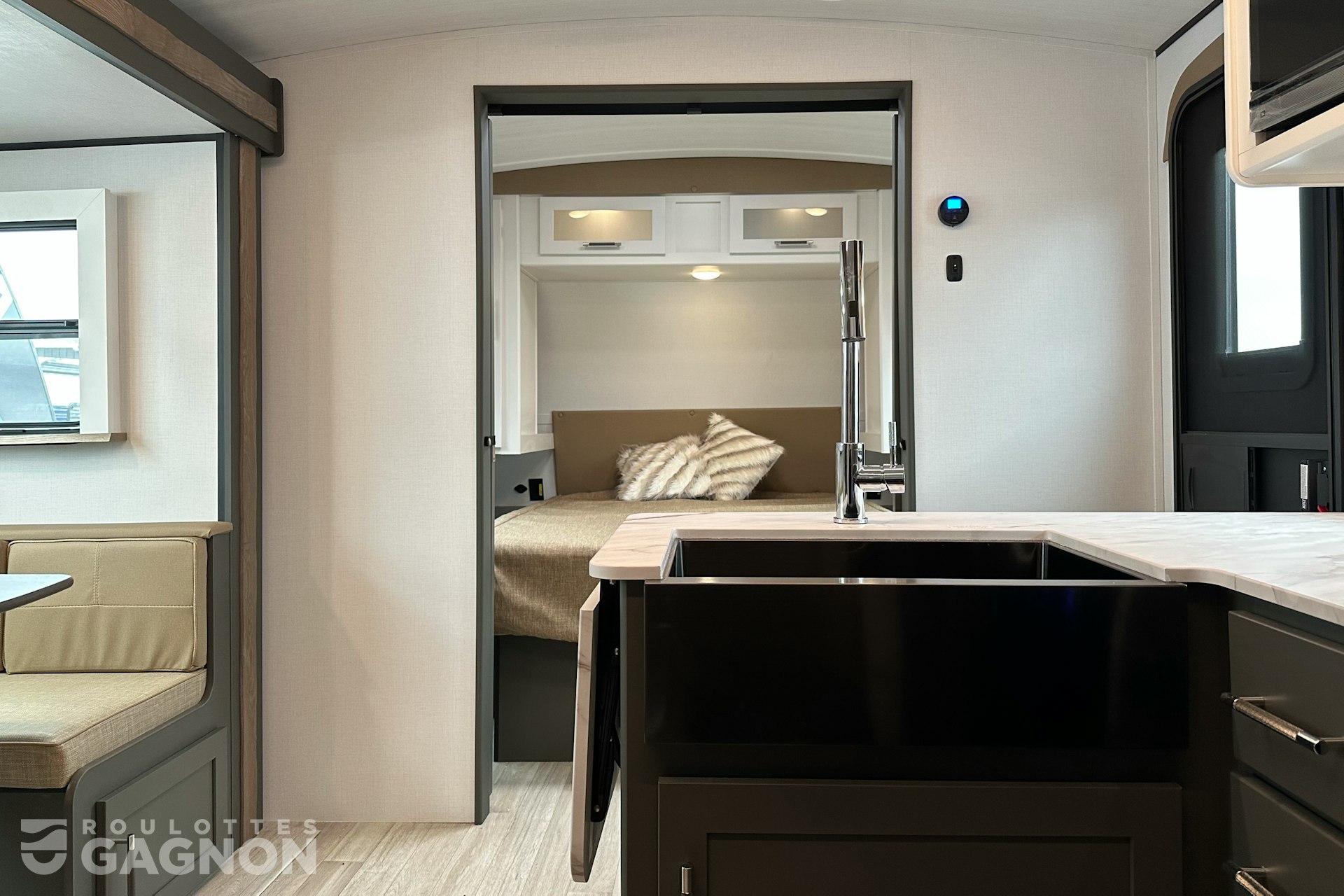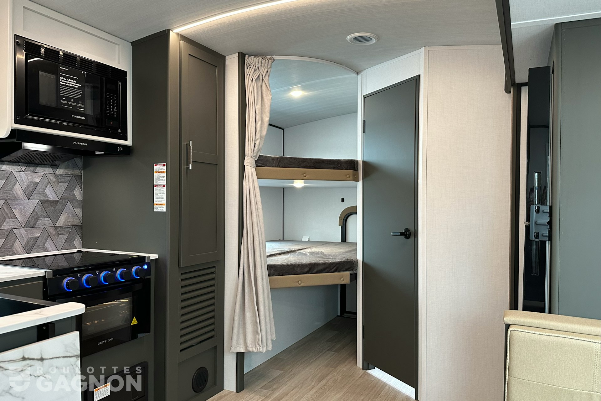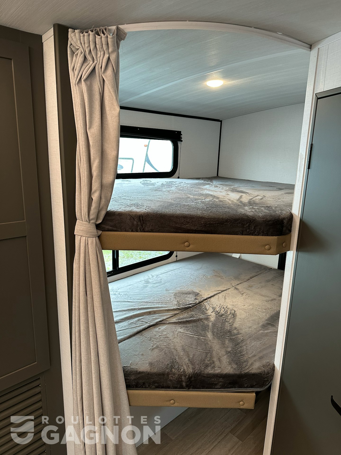 Roulotte Bullet 2290 BH 2026 neuve à vendre. Cette roulotte de voyage fabriquée par Keystone est idéale pour une famille et peut coucher jusqu’à 8 personnes. La Bullet 2290 BH mesure 27 pieds et pèse 5 670 lb, son revêtement est en fibre de verre et les options suivantes sont incluses : jack de pole électrique, vérins stabilisateurs électriques, préparation pour caméra de recul, auvent électrique, marche pied en un bloc (solid step), prise câble ou satellite, prise pour panneau solaire, bluetooth, prise USB, téléviseur, radio, hauts parleurs extérieurs, éclairage au DEL, cuisinette extérieure, climatiseur, puits de lumière, douche extérieure, mags, porte cargo, panneau solaire, chauffe-eau instantané, hitch arrière, prises usb c et éclairage à intensité variable.