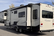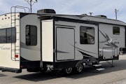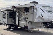 Roulotte Chaparral 298 RLS 2019 usagée à vendre. Cette fifth wheel fabriquée par Coachmen est idéale pour un couple et peut coucher jusqu’à 4 personnes. La Chaparral 298 RLS mesure 33,8 pieds et pèse 9482 lb, son revêtement est en fibre de verre sur Azdel et les options suivantes sont incluses : vérins stabilisateurs manuels, préparation pour caméra de recul, échelle, auvent électrique, prise câble ou satellite, téléviseur, radio, hauts parleurs extérieurs, éclairage au DEL, cuisinette extérieure, climatiseur, ventilateur de plafond, puits de lumière, douche extérieure, mags, foyer électrique et préparation pour laveuse et sécheuse.