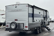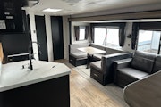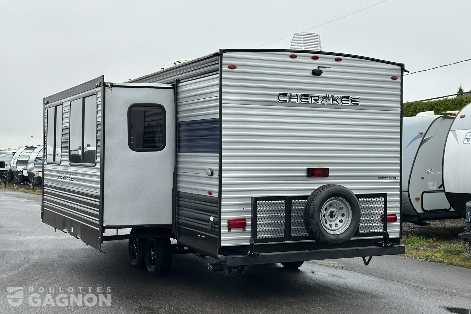 Roulotte Cherokee 234 DC 2022 usagée à vendre. Cette roulotte de voyage fabriquée par Forest River est idéale pour un couple et peut coucher jusqu’à 6 personnes. La Cherokee 234 DC mesure 28.7 pieds et pèse 5876 lb, son revêtement est en aluminium et les options suivantes sont incluses : jack de pole électrique, vérins stabilisateurs électriques, préparation pour caméra de recul, caméra de recul incluse, plateforme cargo, auvent électrique, marche pied en un bloc (solid step), prise câble ou satellite, bluetooth, prise USB, radio, hauts parleurs extérieurs, éclairage au DEL, cuisinette extérieure, climatiseur, puits de lumière, douche extérieure, mags, panneau solaire, foyer électrique et machine à glaçon.
