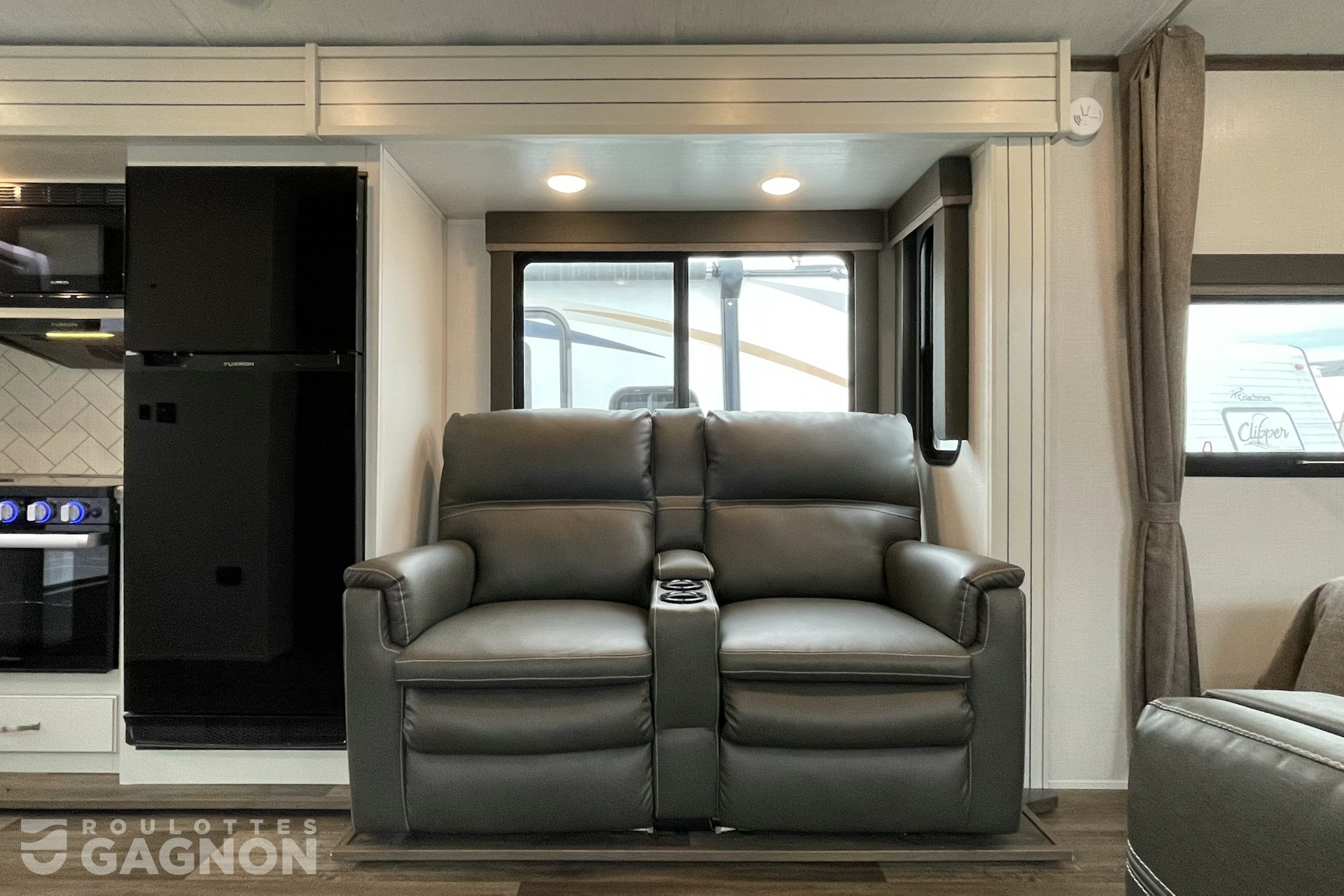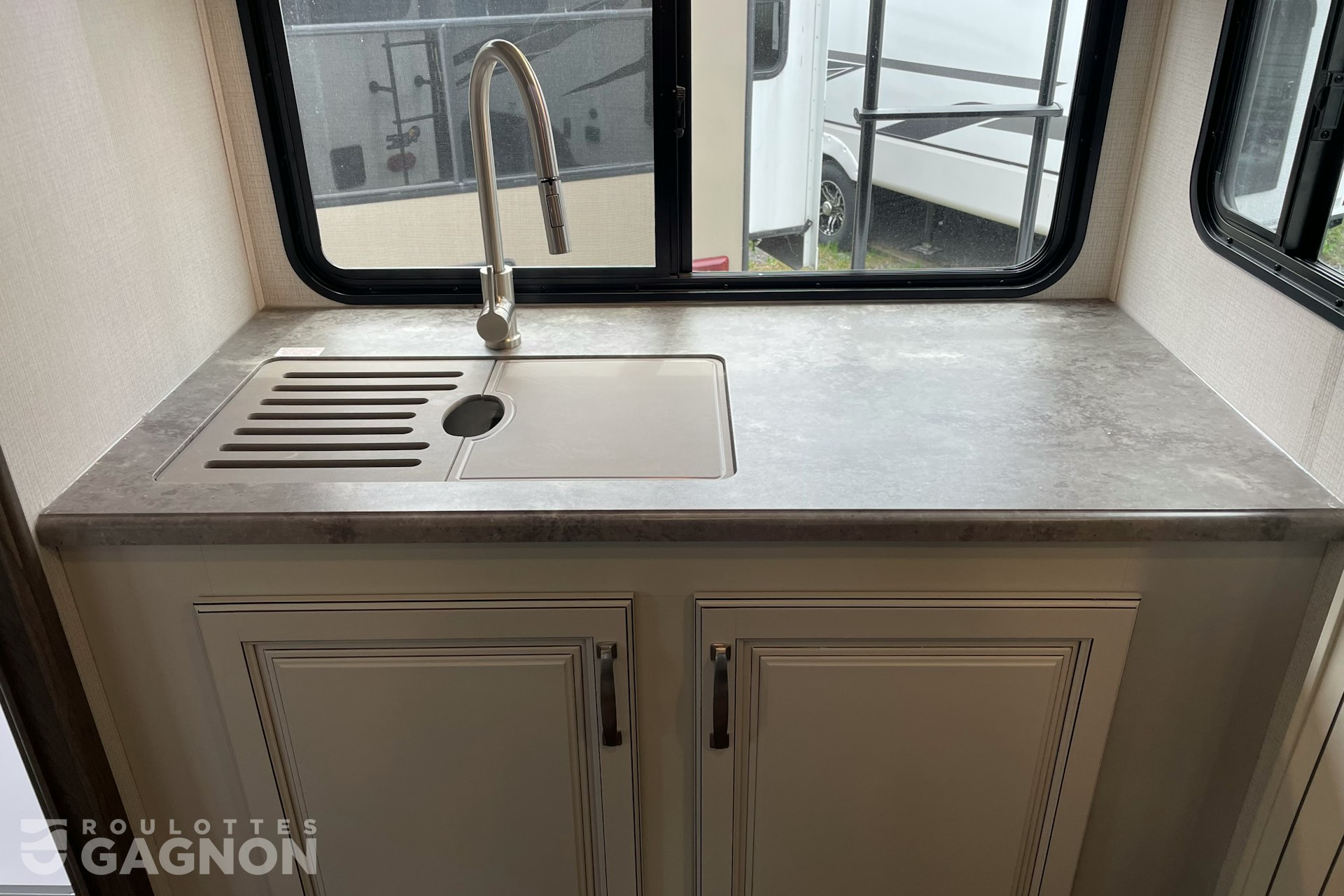 Note: Nous nous efforçons pour décrire les spécifications et les options des roulottes affichées sur notre site le plus précisément possible, toutefois, des erreurs peuvent se glisser. Nous sommes désolés si tel était le cas. Les photos sont à titre indicatif seulement. Les couleurs et les options peuvent varier selon les derniers changements apportés par le fabricant.