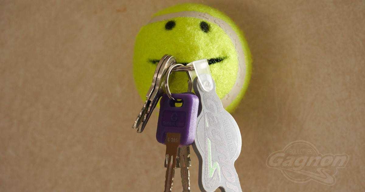 Besoin d'un ami fidèle qui vous accueille dans votre roulotte avec le sourire? Un ami utile qui garde votre trousseau de clé précieusement? Avec une simple balle de tennis, un marqueur et un x-acto vous pourrez fabriquer ce petit être sympathique et fort pratique. Voici la marche à suivre: