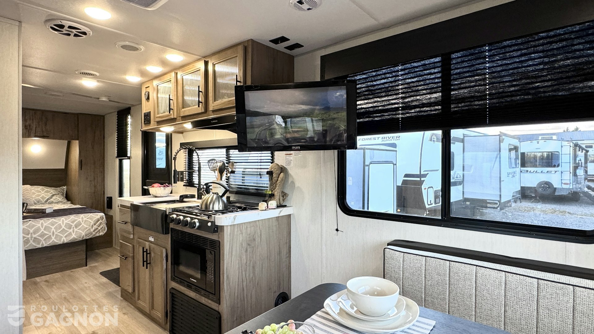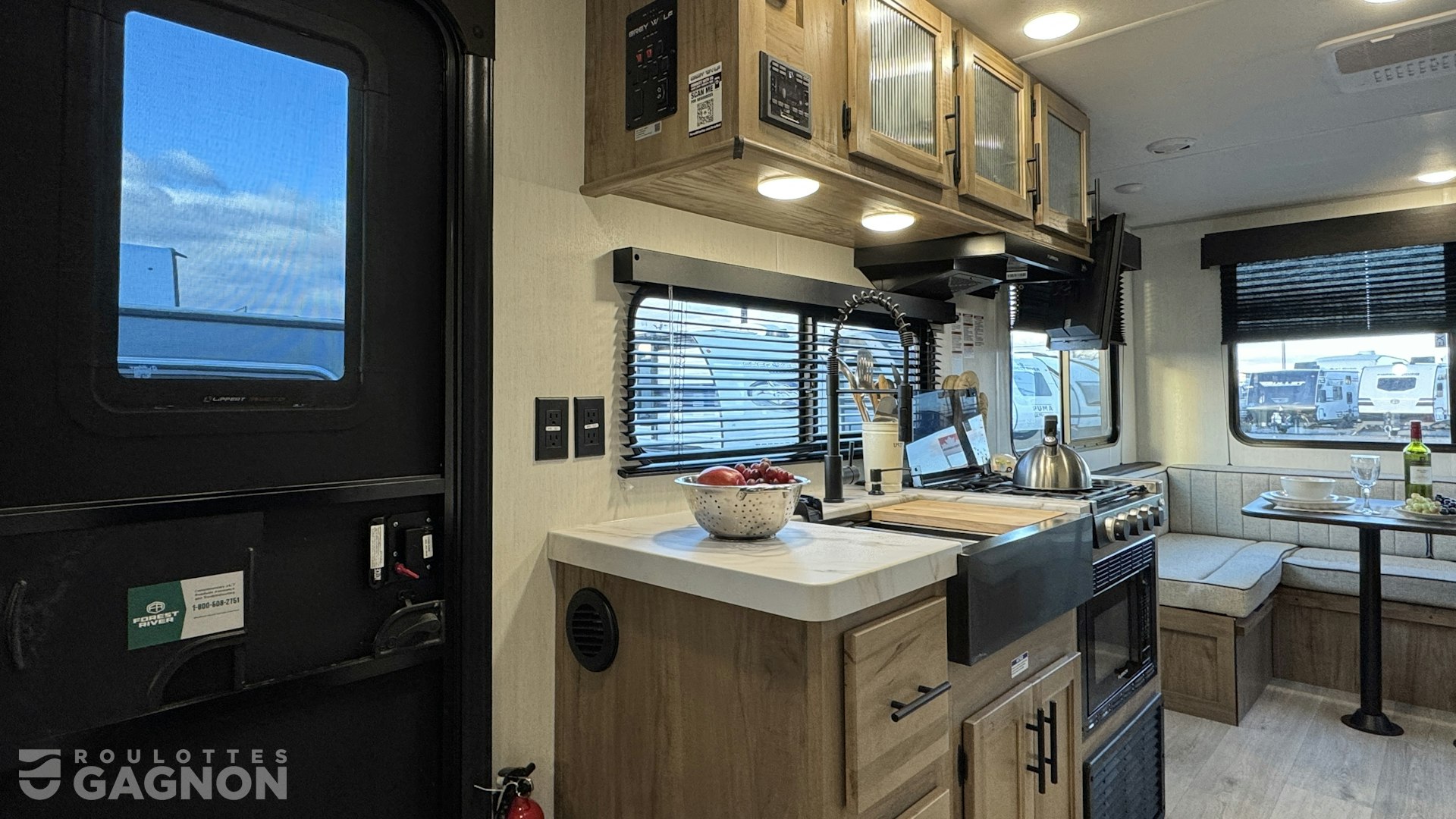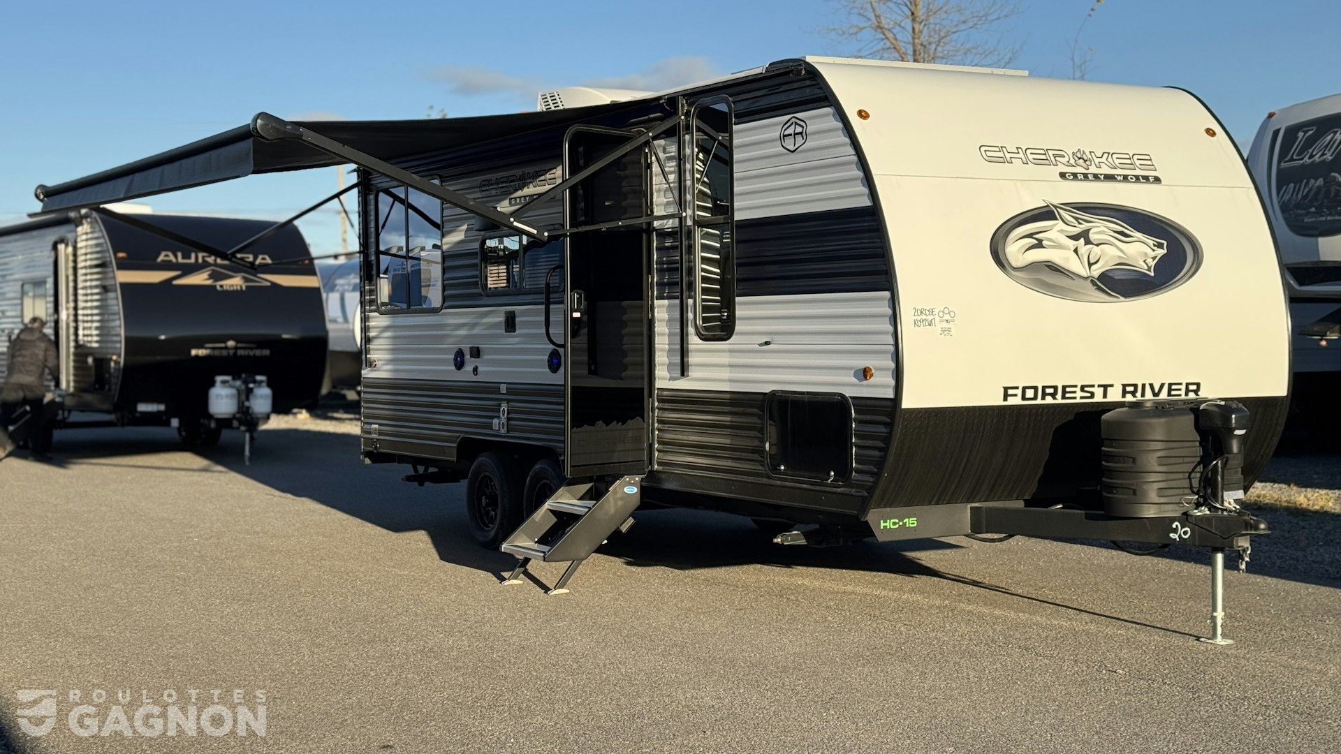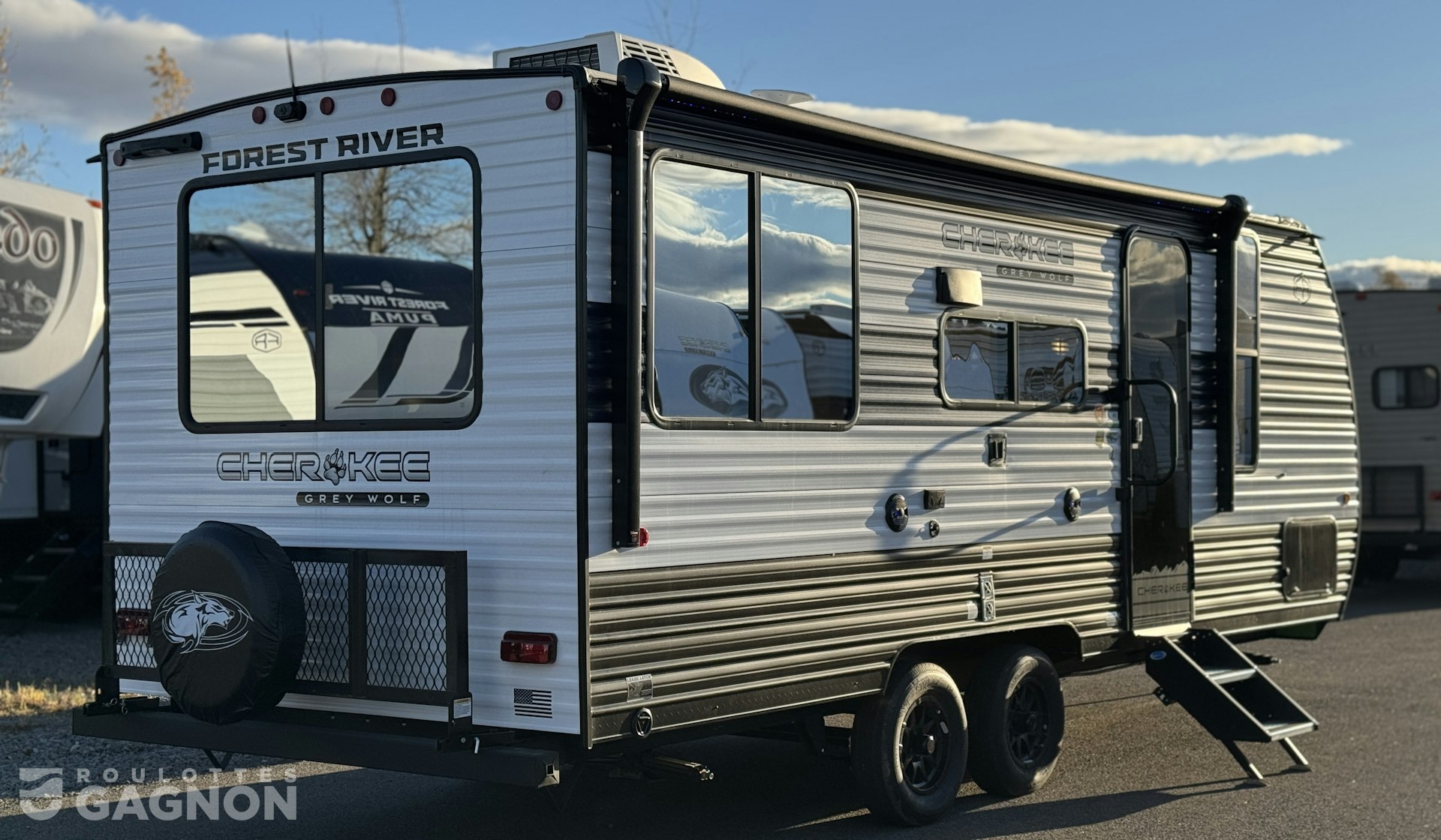 Roulotte Grey Wolf 20 RD SE 2026 neuve à vendre. Cette roulotte de voyage fabriquée par Forest River est idéale pour un couple et peut coucher jusqu’à 4 personnes. La Grey Wolf 20 RD SE mesure 25.4 pieds et pèse 4015 lb, son revêtement est en aluminium et les options suivantes sont incluses : jack de pole électrique, vérins stabilisateurs manuels, préparation pour caméra de recul, caméra de recul incluse, plateforme cargo, auvent électrique, marche pied en un bloc (solid step), prise câble ou satellite, bluetooth, prise USB, radio, hauts parleurs extérieurs, éclairage au DEL, climatiseur, puits de lumière, douche extérieure et mags.