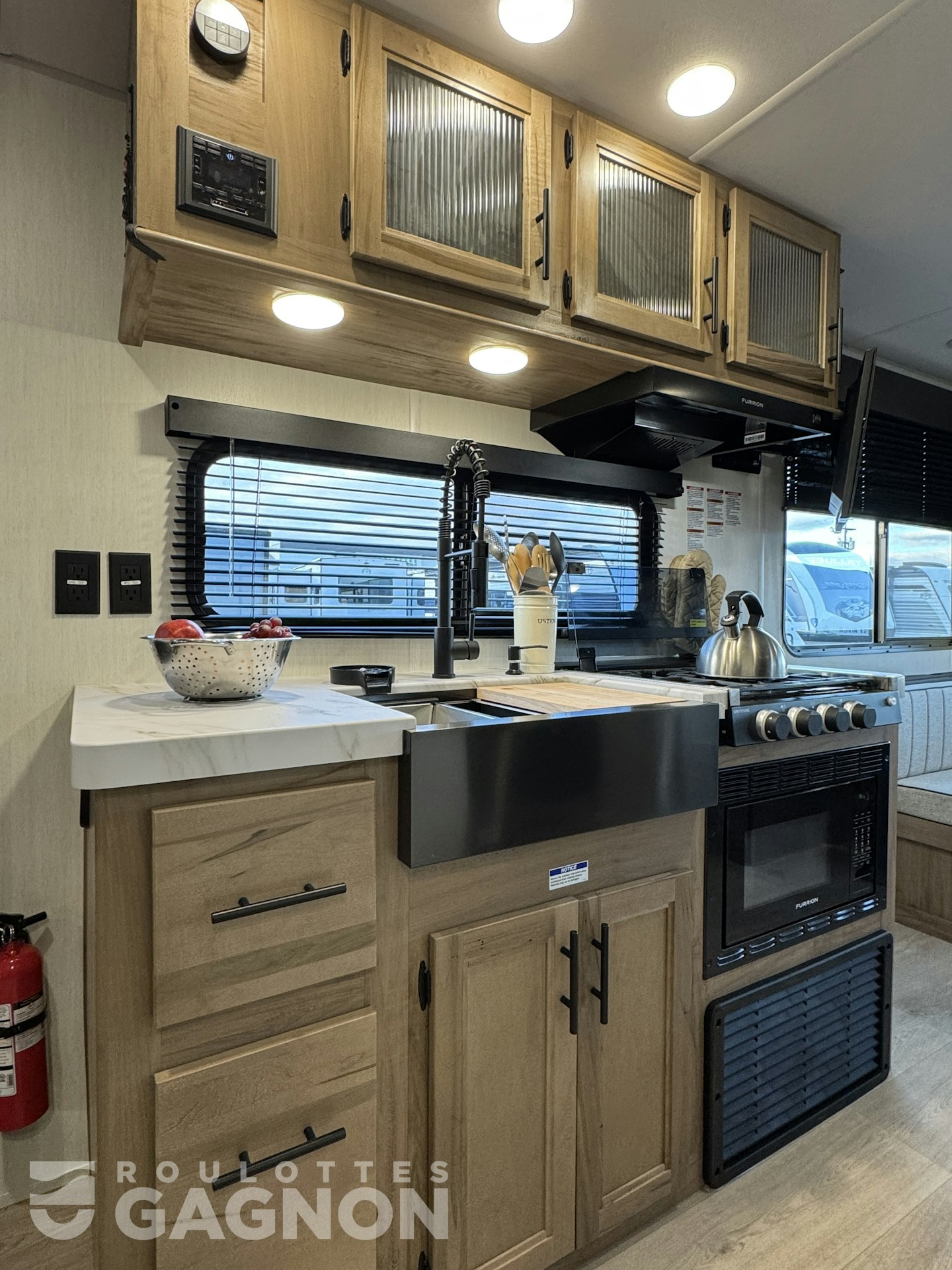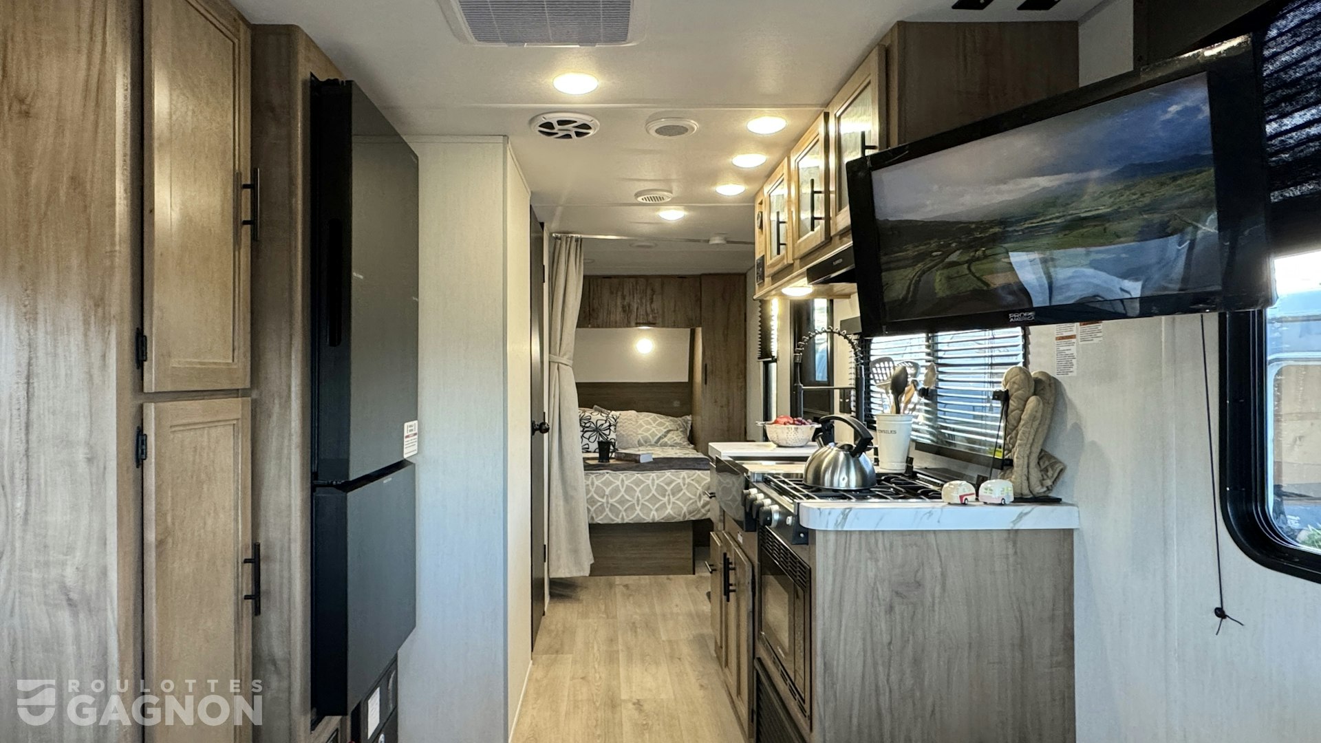 Note: Nous nous efforçons pour décrire les spécifications et les options des roulottes affichées sur notre site le plus précisément possible, toutefois, des erreurs peuvent se glisser. Nous sommes désolés si tel était le cas. Les photos sont à titre indicatif seulement. Les couleurs et les options peuvent varier selon les derniers changements apportés par le fabricant.