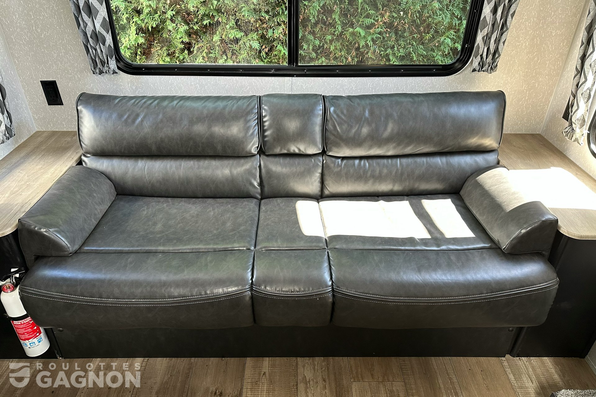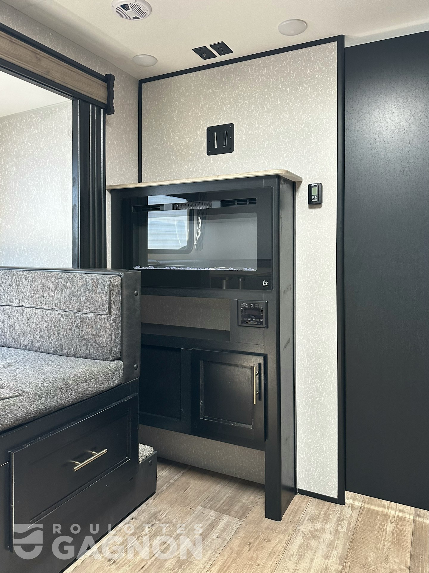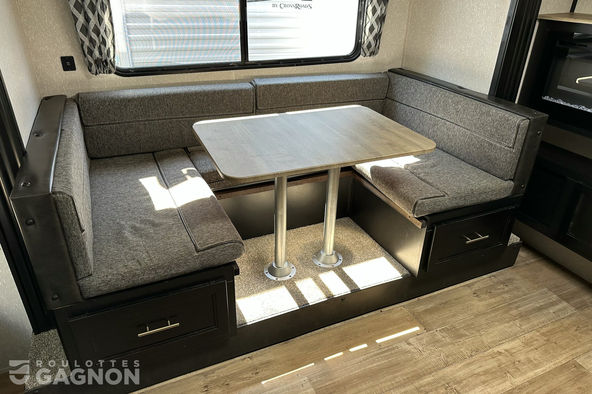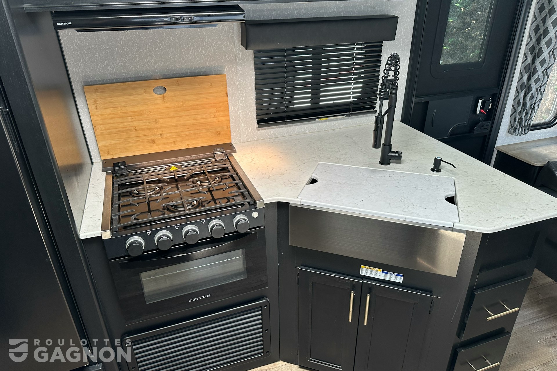Roulotte Grey Wolf 23 MK 2022 usagée à vendre. Cette roulotte de voyage fabriquée par Forest River est idéale pour un couple et peut coucher jusqu’à 6 personnes. La Grey Wolf 23 MK mesure 28.8 pieds et pèse 5013 lb, son revêtement est en aluminium et les options suivantes sont incluses : jack de pole électrique, vérins stabilisateurs manuels, préparation pour caméra de recul, caméra de recul incluse, plateforme cargo, auvent électrique, marche pied en un bloc (solid step), prise câble ou satellite, bluetooth, prise USB, radio, hauts parleurs extérieurs, éclairage au DEL, climatiseur, puits de lumière, douche extérieure, mags, machine à glaçon et frigo extérieur, panneau solaire, slide topper et foyer électrique.