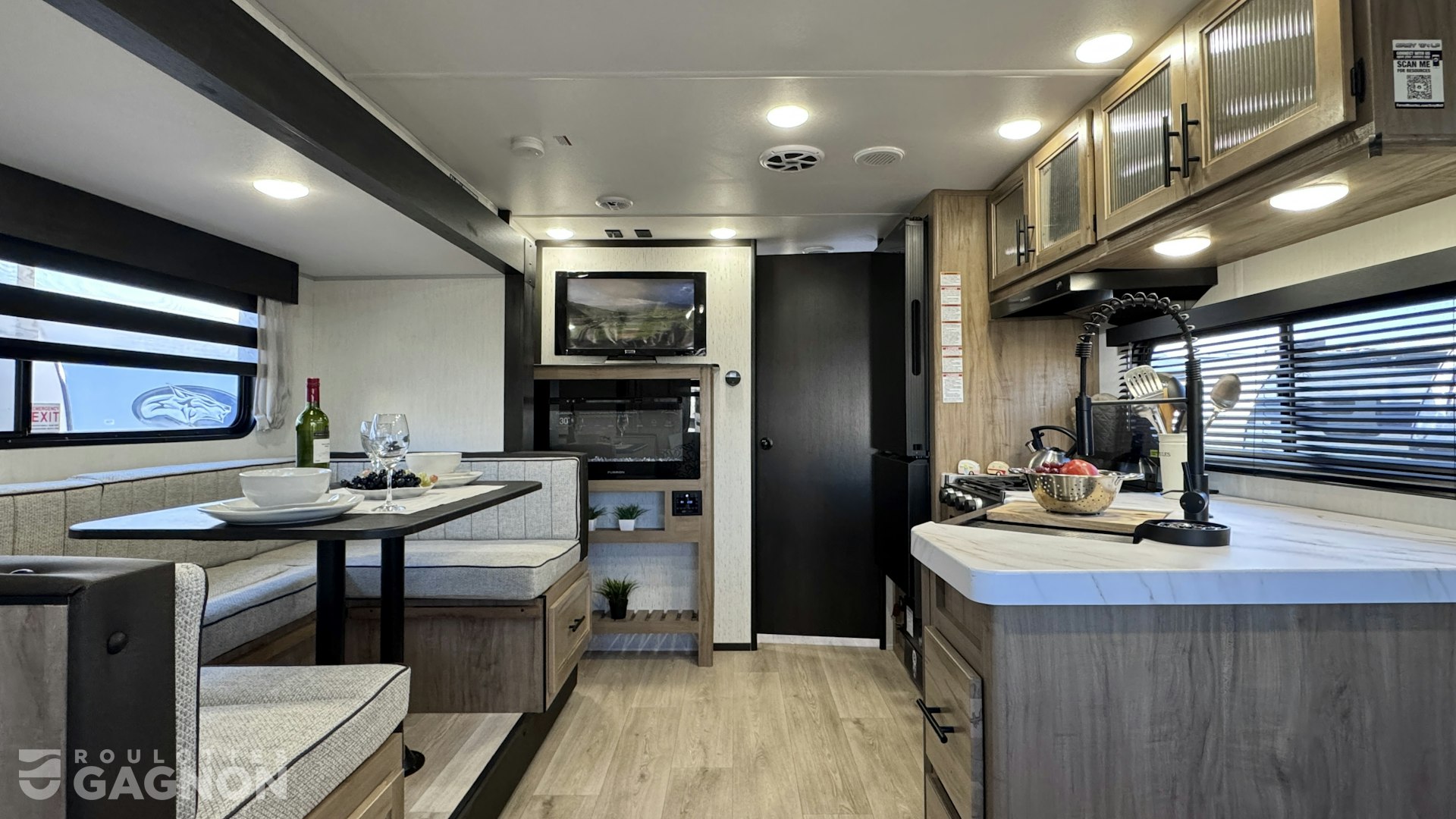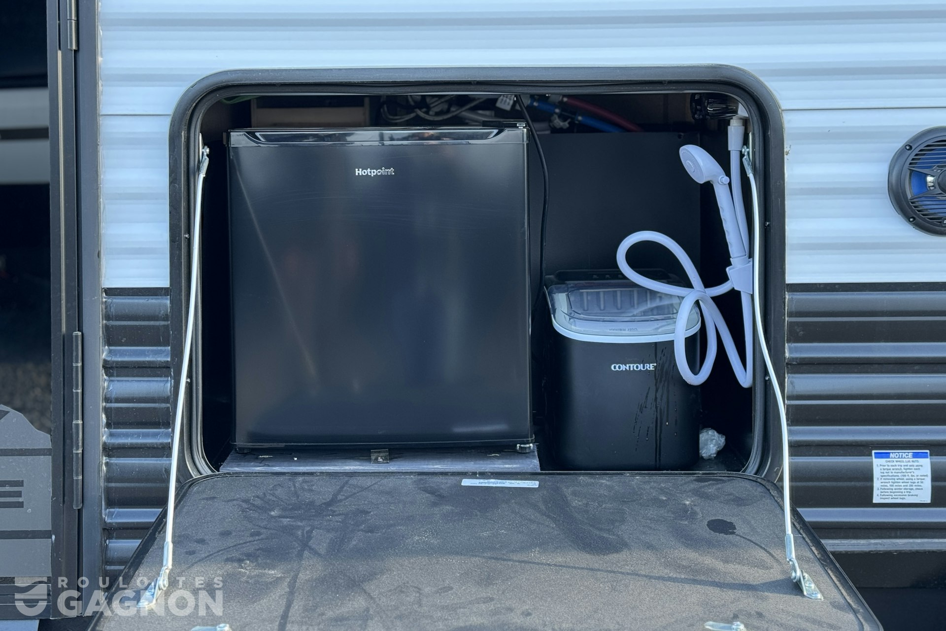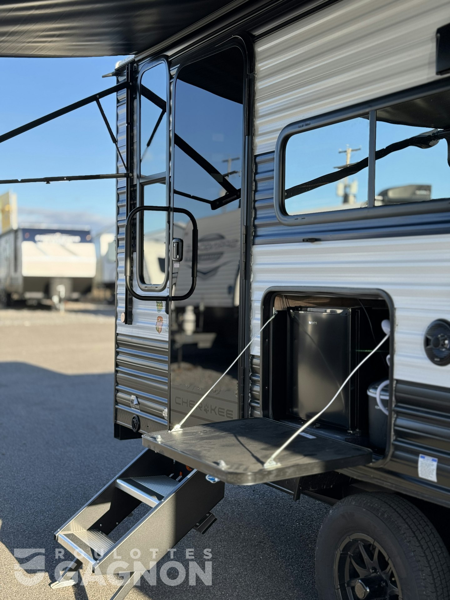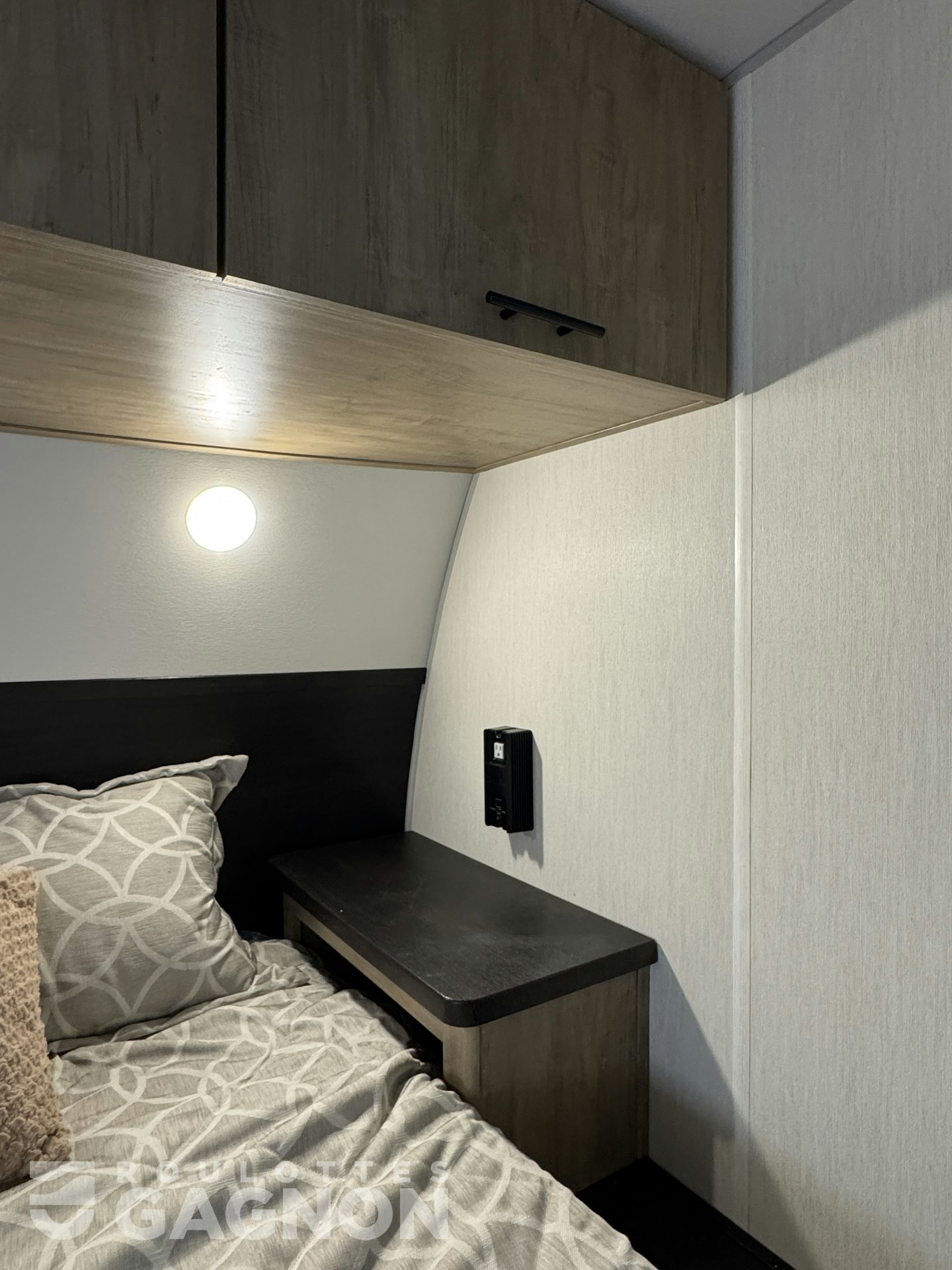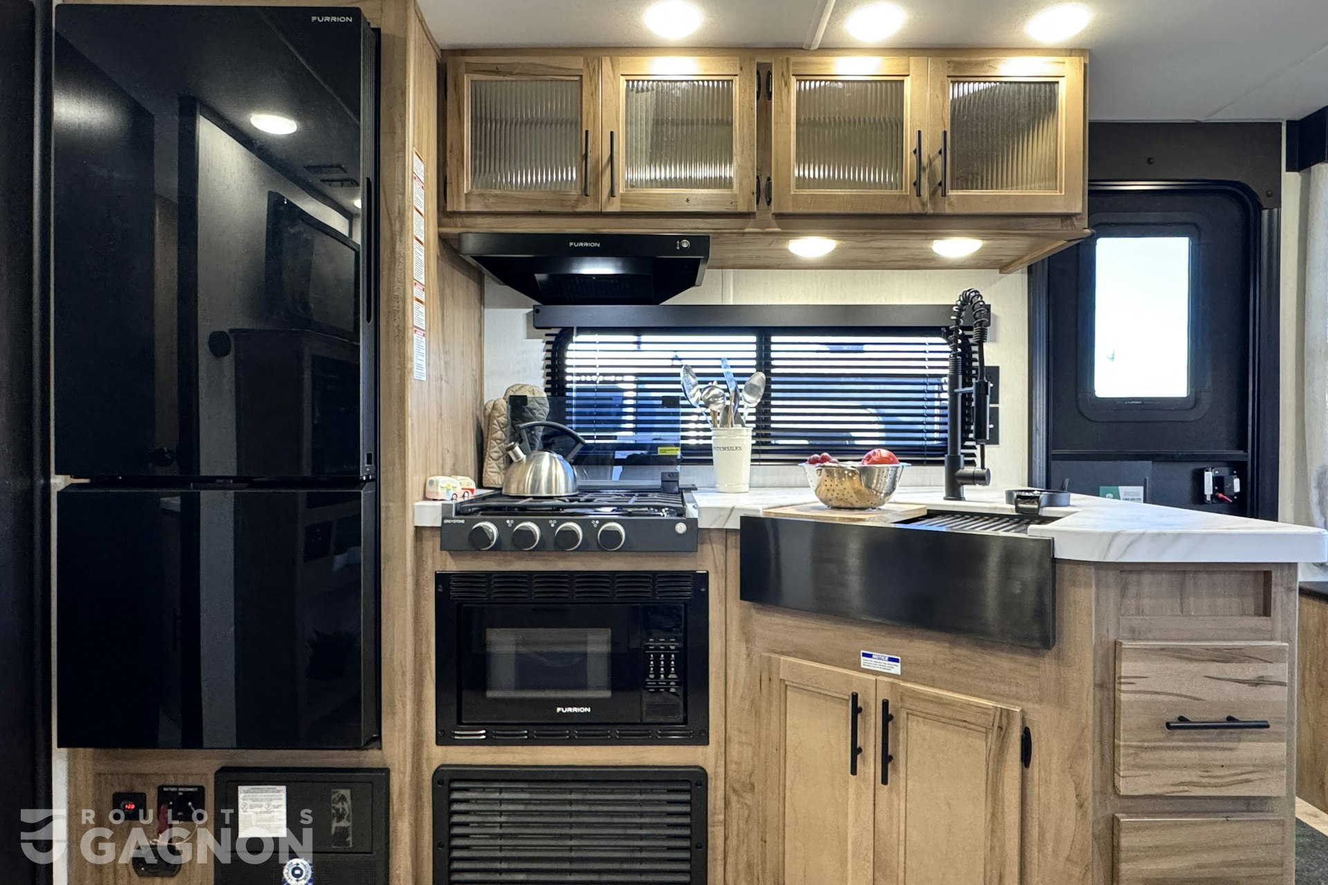 Roulotte Grey Wolf 23 MK 2026 neuve à vendre. Cette roulotte de voyage fabriquée par Forest River est idéale pour un couple et peut coucher jusqu’à 5 personnes. La Grey Wolf 23 MK mesure 29 pieds et pèse 5 025 lb, son revêtement est en aluminium et les options suivantes sont incluses : jack de pole électrique, vérins stabilisateurs manuels, préparation pour caméra de recul, caméra de recul incluse, plateforme cargo, auvent électrique, marche pied en un bloc (solid step), prise câble ou satellite, bluetooth, prise USB, radio, hauts parleurs extérieurs, éclairage au DEL, climatiseur, puits de lumière, douche extérieure, mags, panneau solaire 200 w, chauffe-eau instantané, prises usb c, fenêtres à verre énergétique réfléchissant, machine à glaçon et frigo extérieur, ondulateur 150w près du lit et foyer électrique.