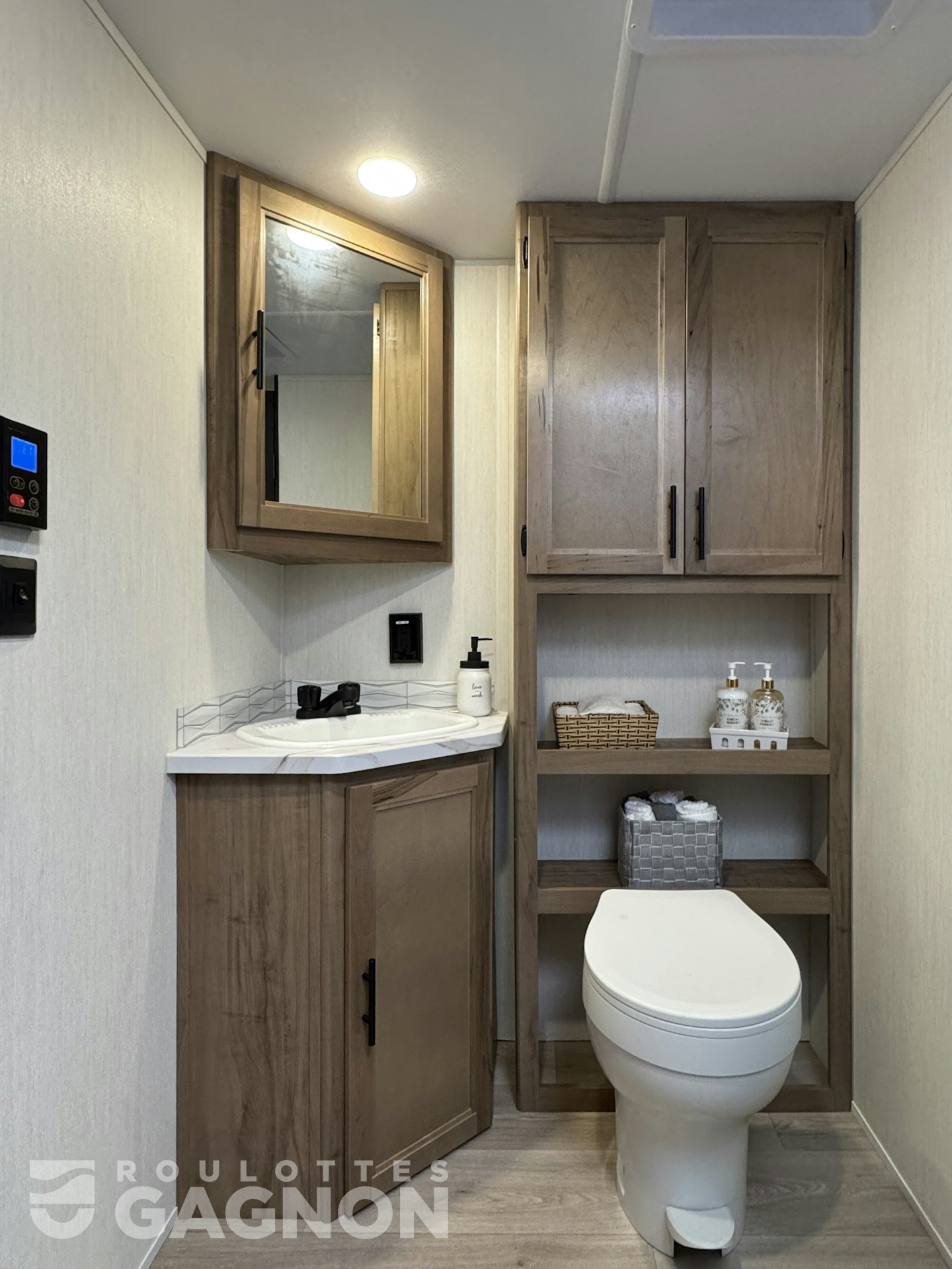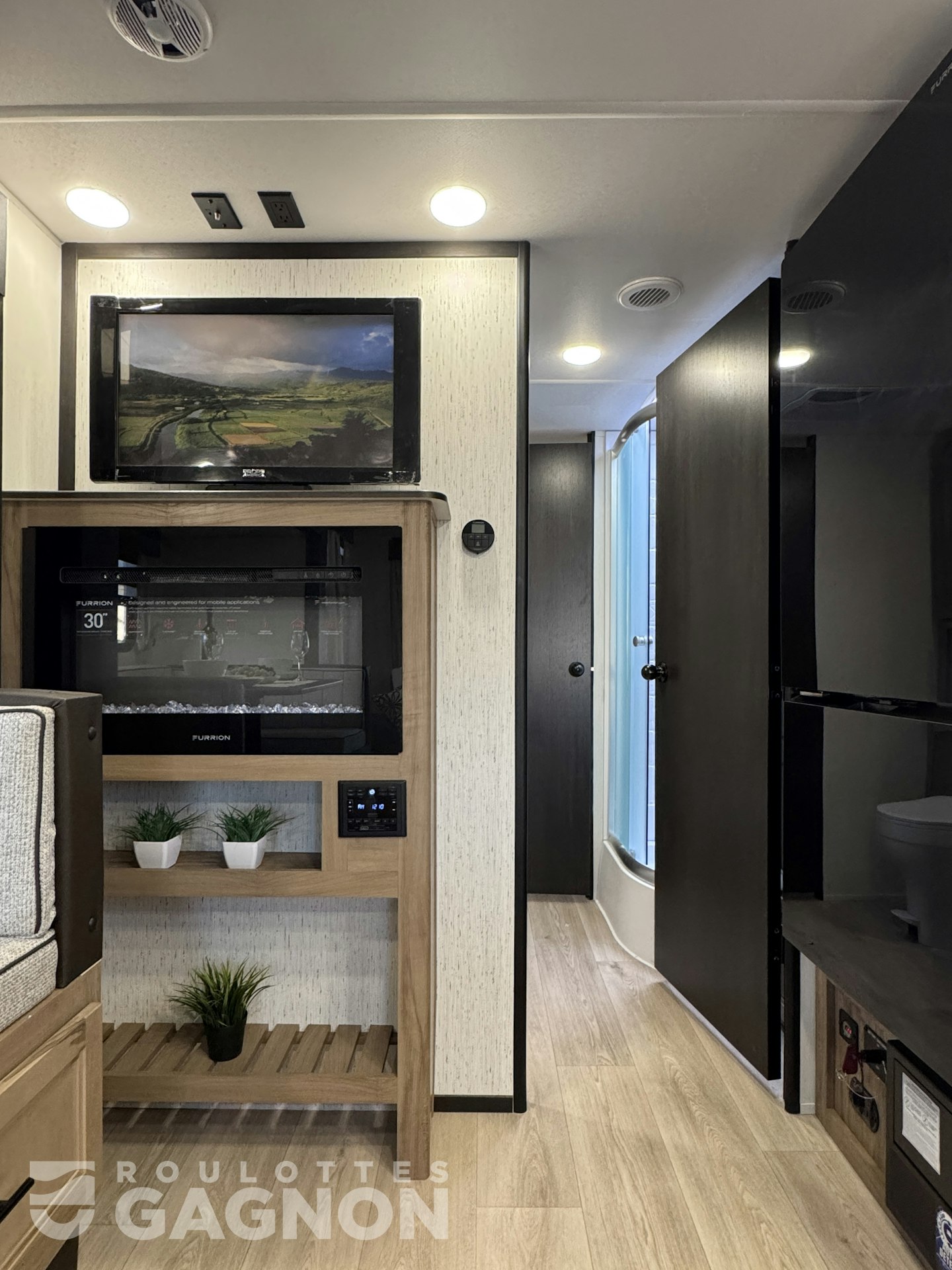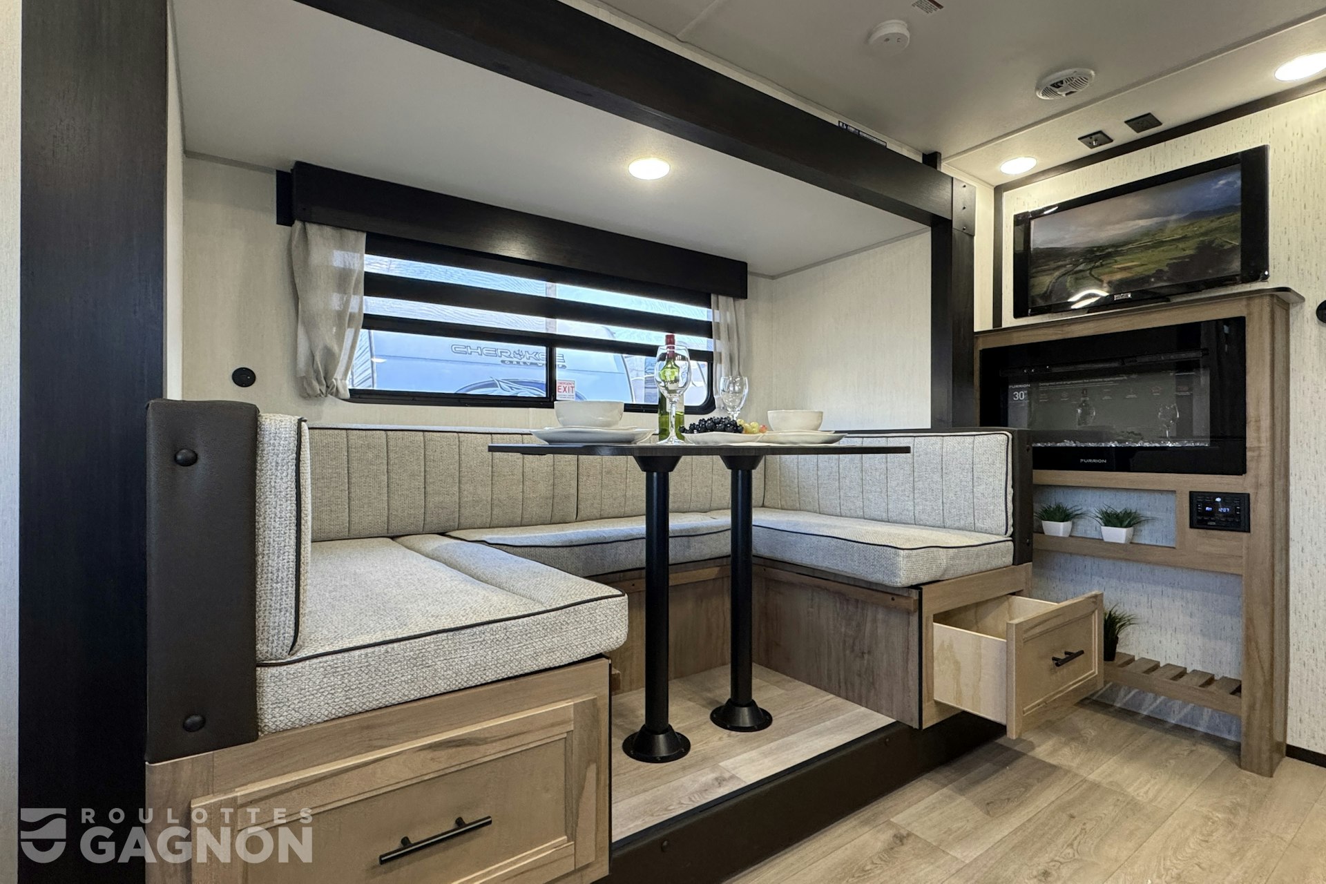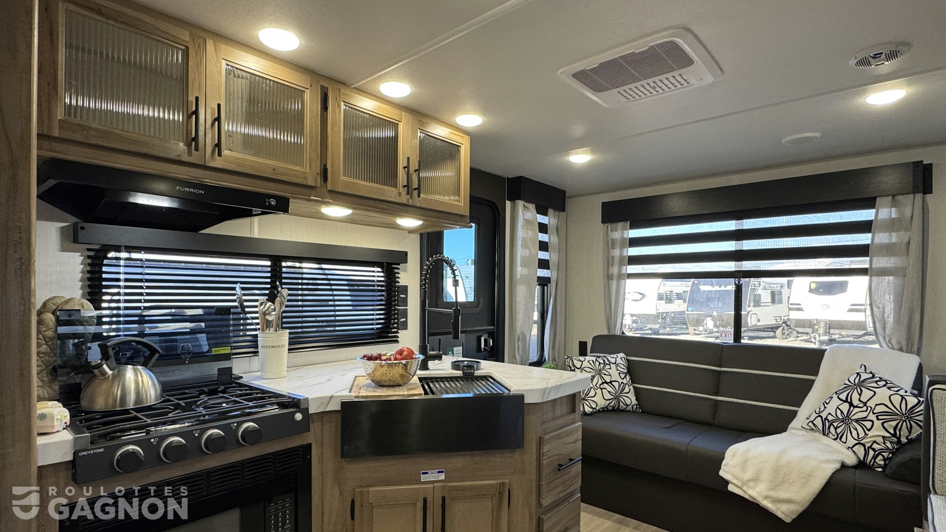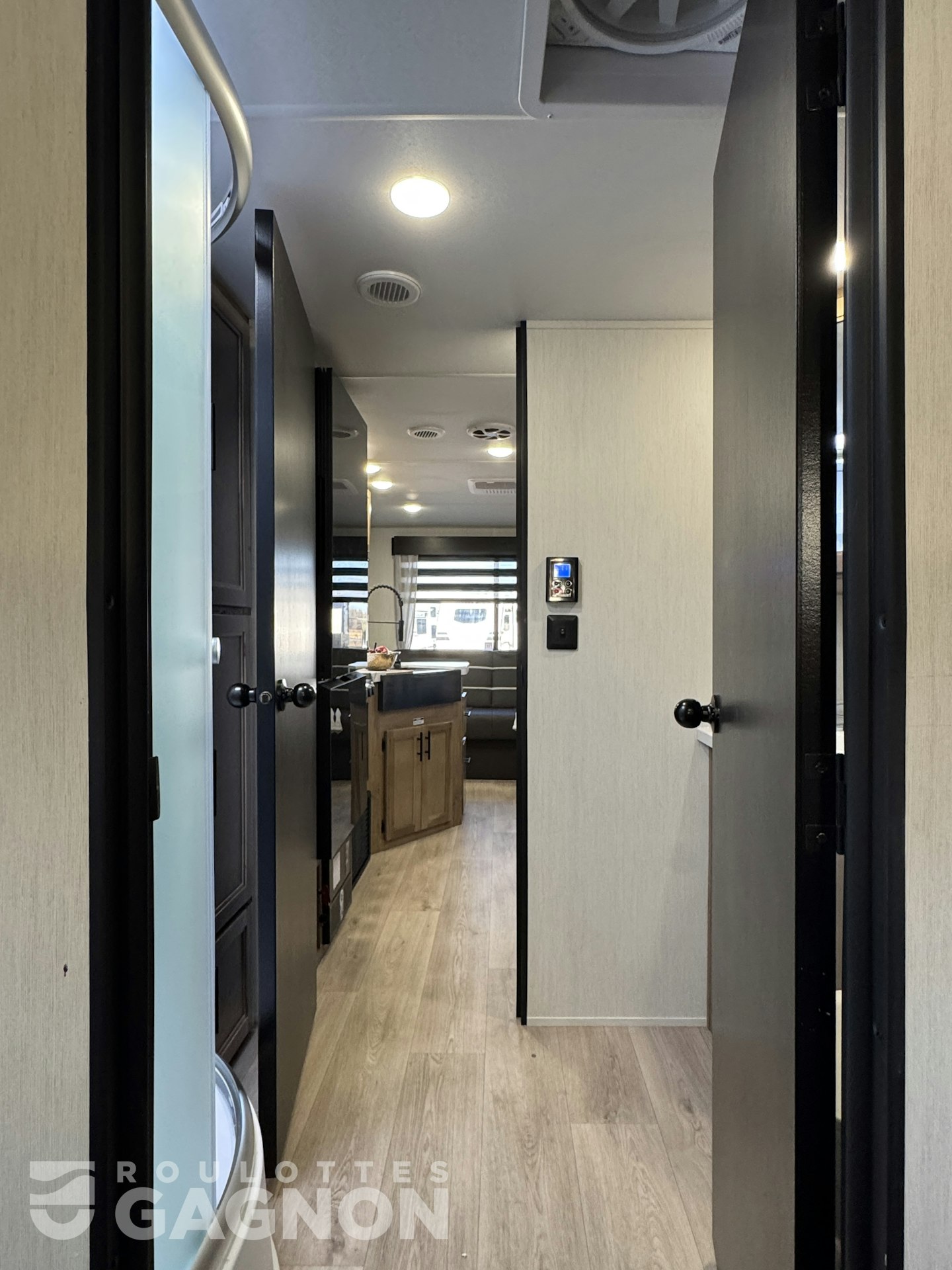 Roulotte Grey Wolf 23 MK 2026 neuve à vendre. Cette roulotte de voyage fabriquée par Forest River est idéale pour un couple et peut coucher jusqu’à 5 personnes. La Grey Wolf 23 MK mesure 29 pieds et pèse 5 025 lb, son revêtement est en aluminium et les options suivantes sont incluses : jack de pole électrique, vérins stabilisateurs manuels, préparation pour caméra de recul, caméra de recul incluse, plateforme cargo, auvent électrique, marche pied en un bloc (solid step), prise câble ou satellite, bluetooth, prise USB, radio, hauts parleurs extérieurs, éclairage au DEL, climatiseur, puits de lumière, douche extérieure, mags, panneau solaire 200 w, chauffe-eau instantané, prises usb c, fenêtres à verre énergétique réfléchissant, machine à glaçon et frigo extérieur, ondulateur 150w près du lit et foyer électrique.