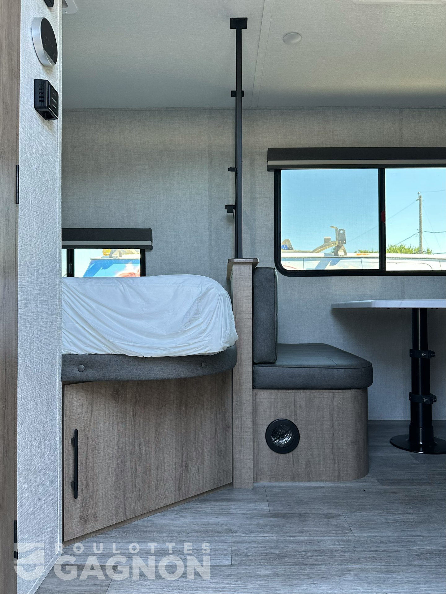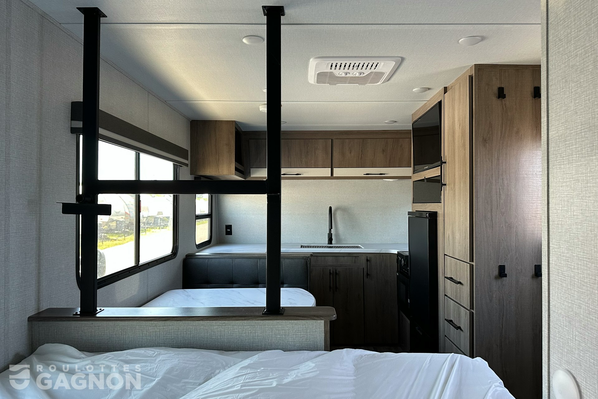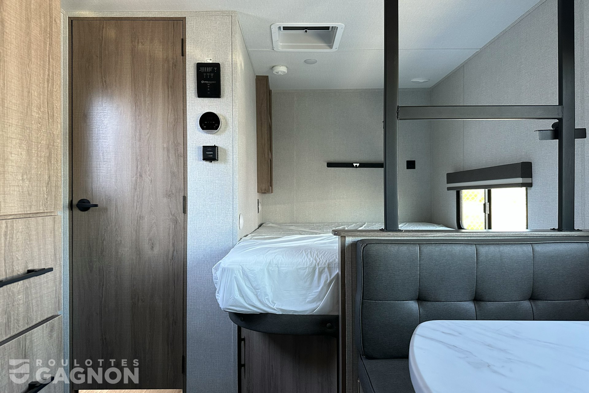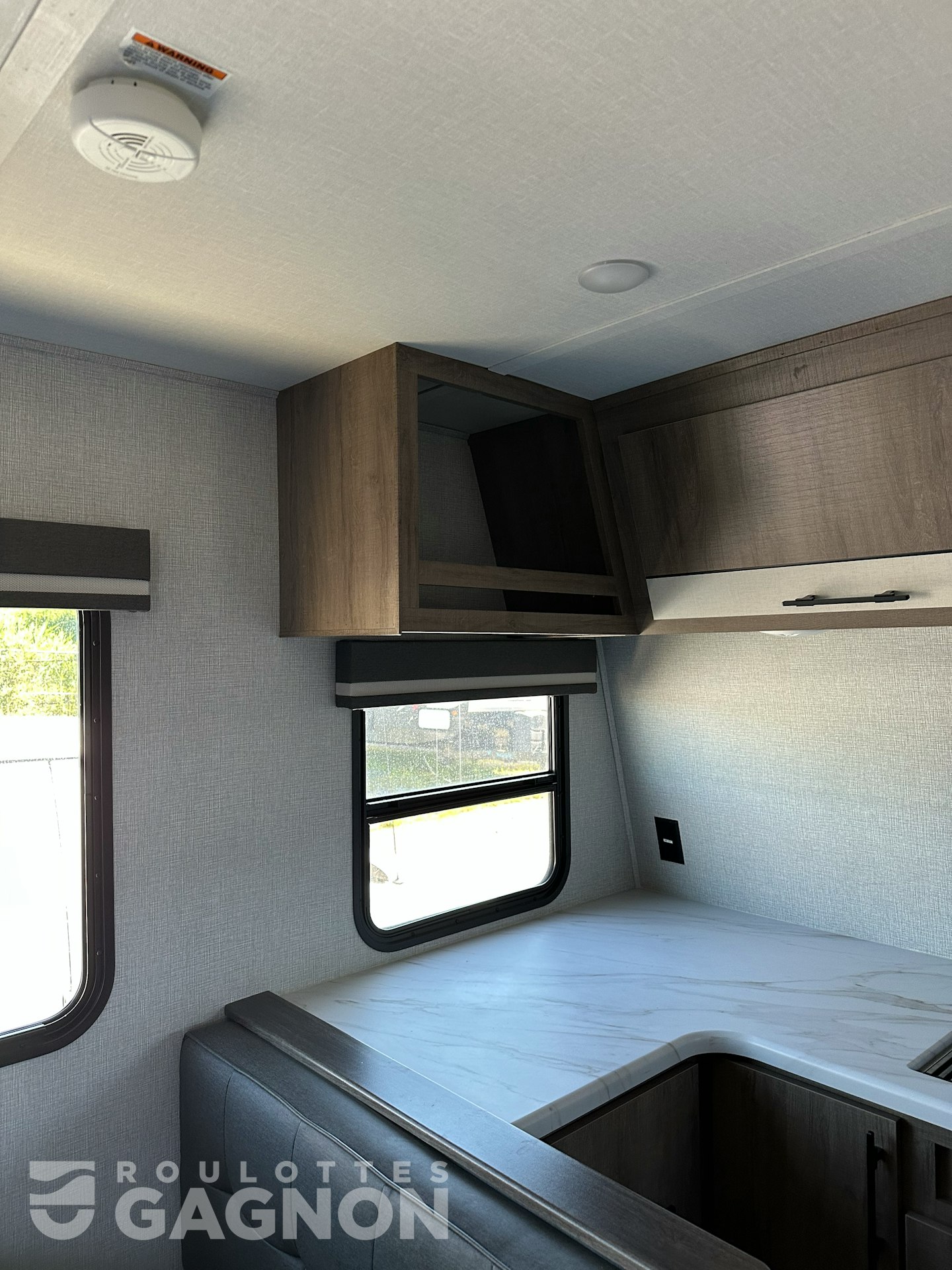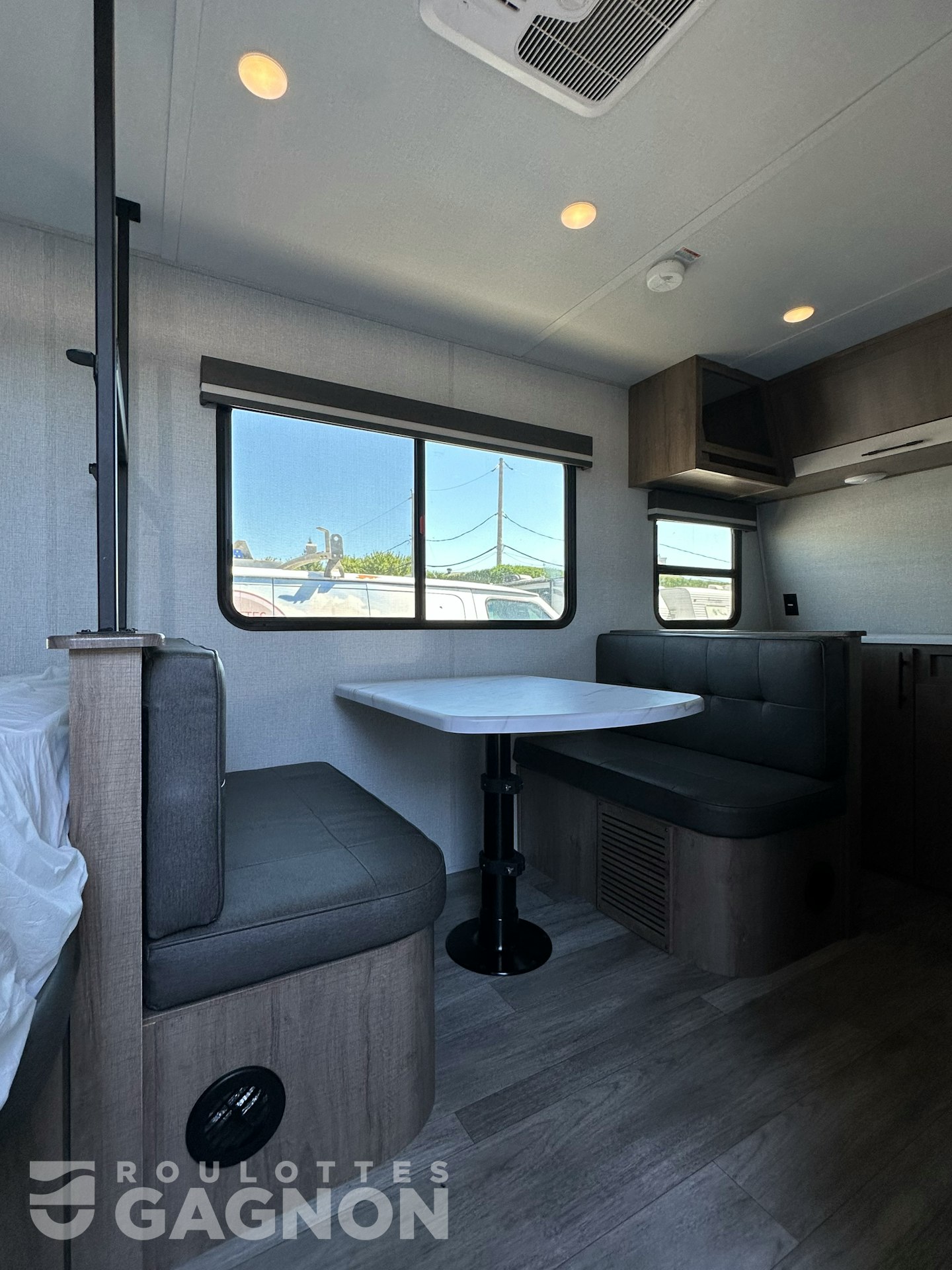 Roulotte Imagine 15 BH 2024 usagée à vendre. Cette roulotte de voyage est idéale pour un couple ou une famille et peut coucher jusqu’à 5 personnes. La Imagine 15 BH mesure 19.9 pieds et pèse 3698 lb, son revêtement est en fibre de verre et les options suivantes sont incluses : jack de pole électrique, vérins stabilisateurs manuels, préparation pour caméra de recul, échelle, auvent électrique, marche pied en un bloc (solid step), prise câble ou satellite, prise USB, téléviseur, éclairage au DEL, climatiseur, puits de lumière, panneau solaire, hitch arrière et chauffe-eau instantané.