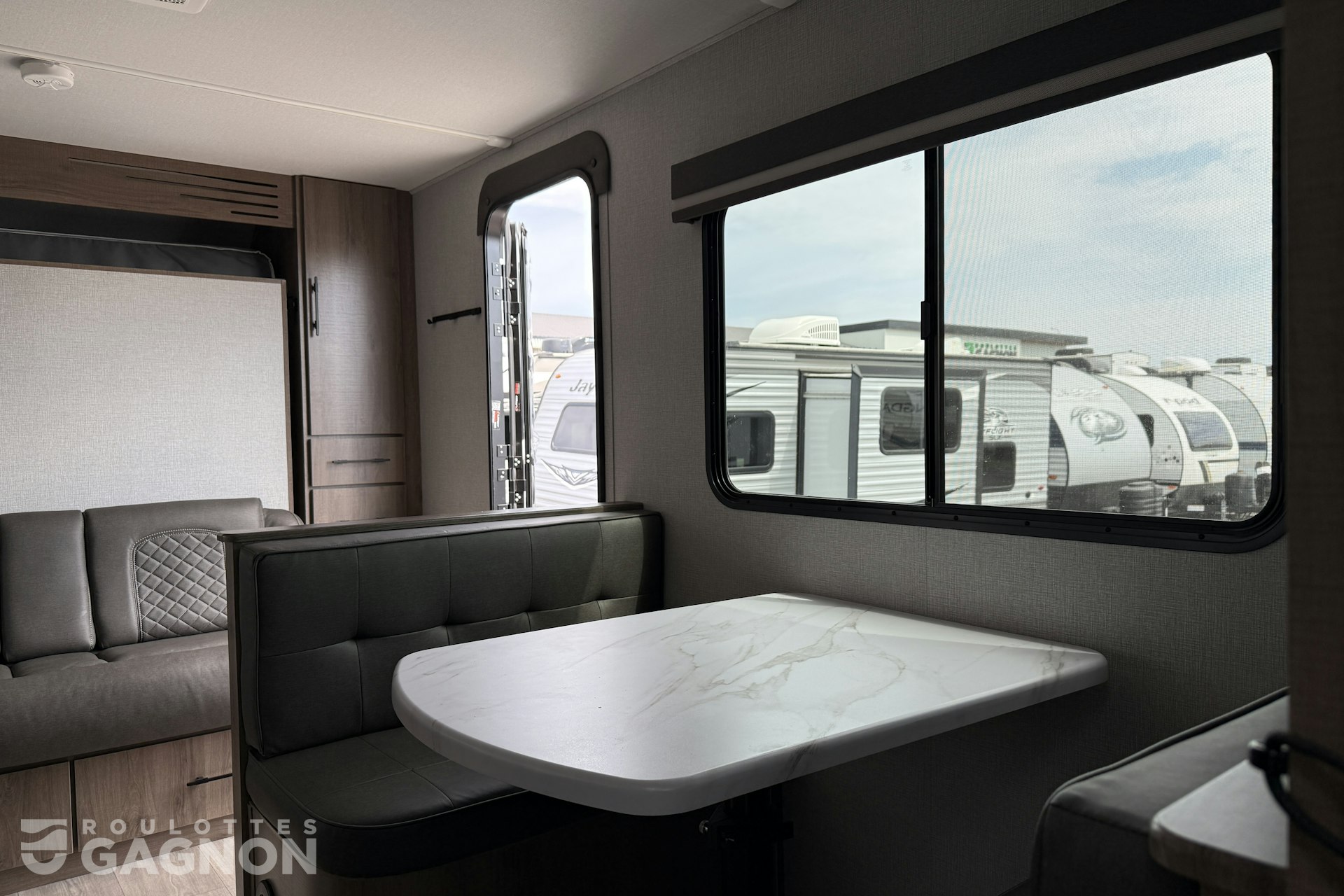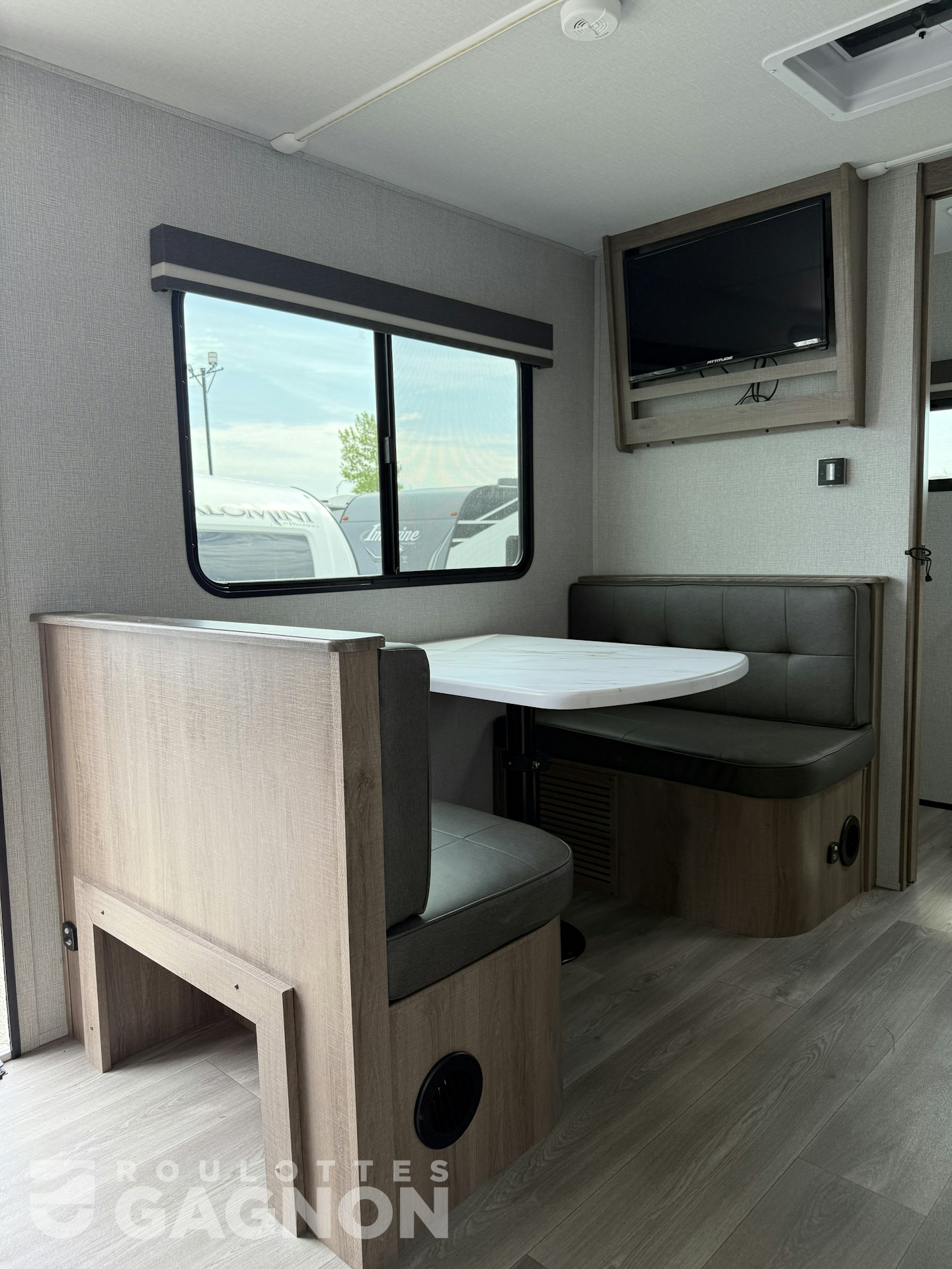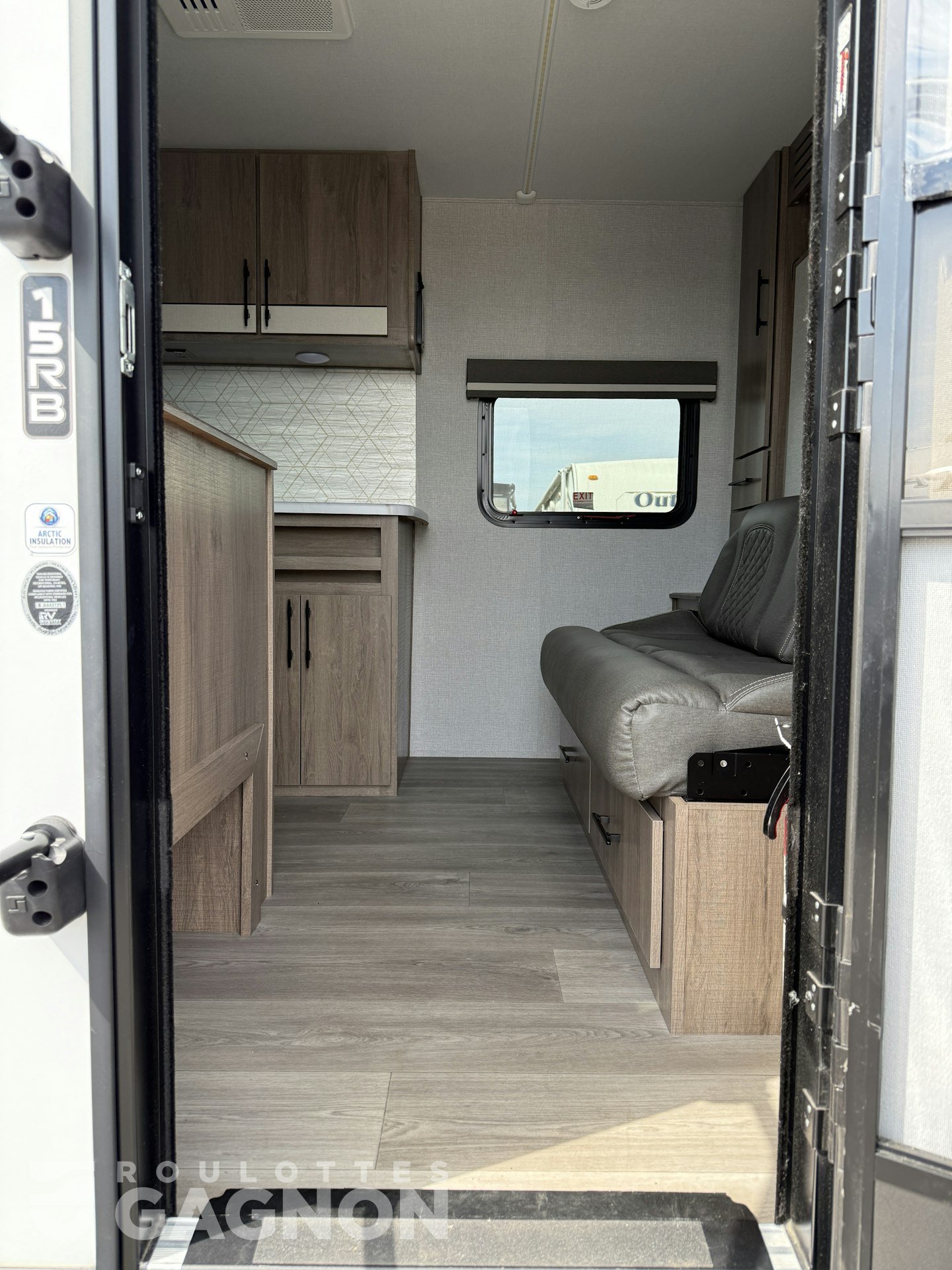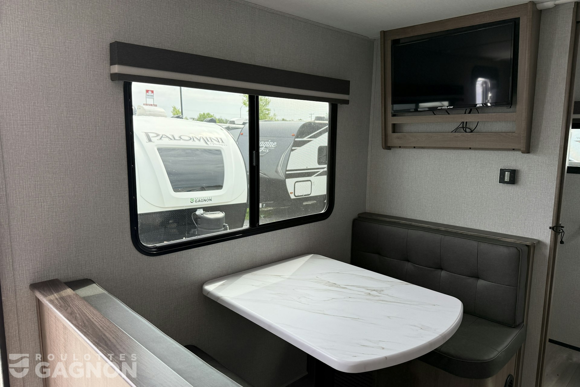 Roulotte Imagine 15 RB 2024 usagée à vendre. Cette roulotte de voyage est idéale pour un couple et peut coucher jusqu’à 4 personnes. La Imagine 15 RB mesure 19.11 pieds et pèse 3762 lb, son revêtement est en fibre de verre et les options suivantes sont incluses : jack de pole électrique, vérins stabilisateurs manuels, échelle, auvent électrique, marche pied en un bloc (solid step), radio, éclairage au DEL, climatiseur et mags.