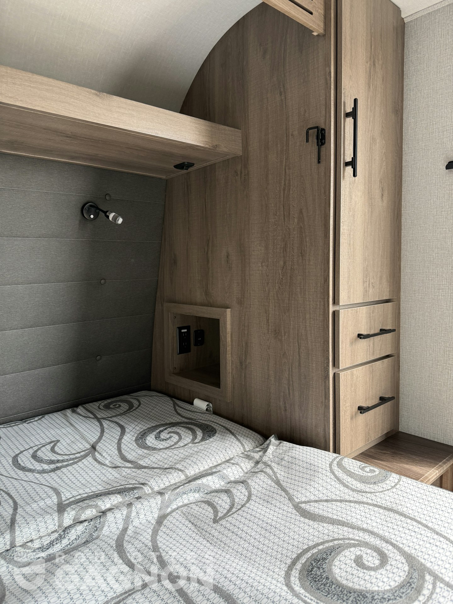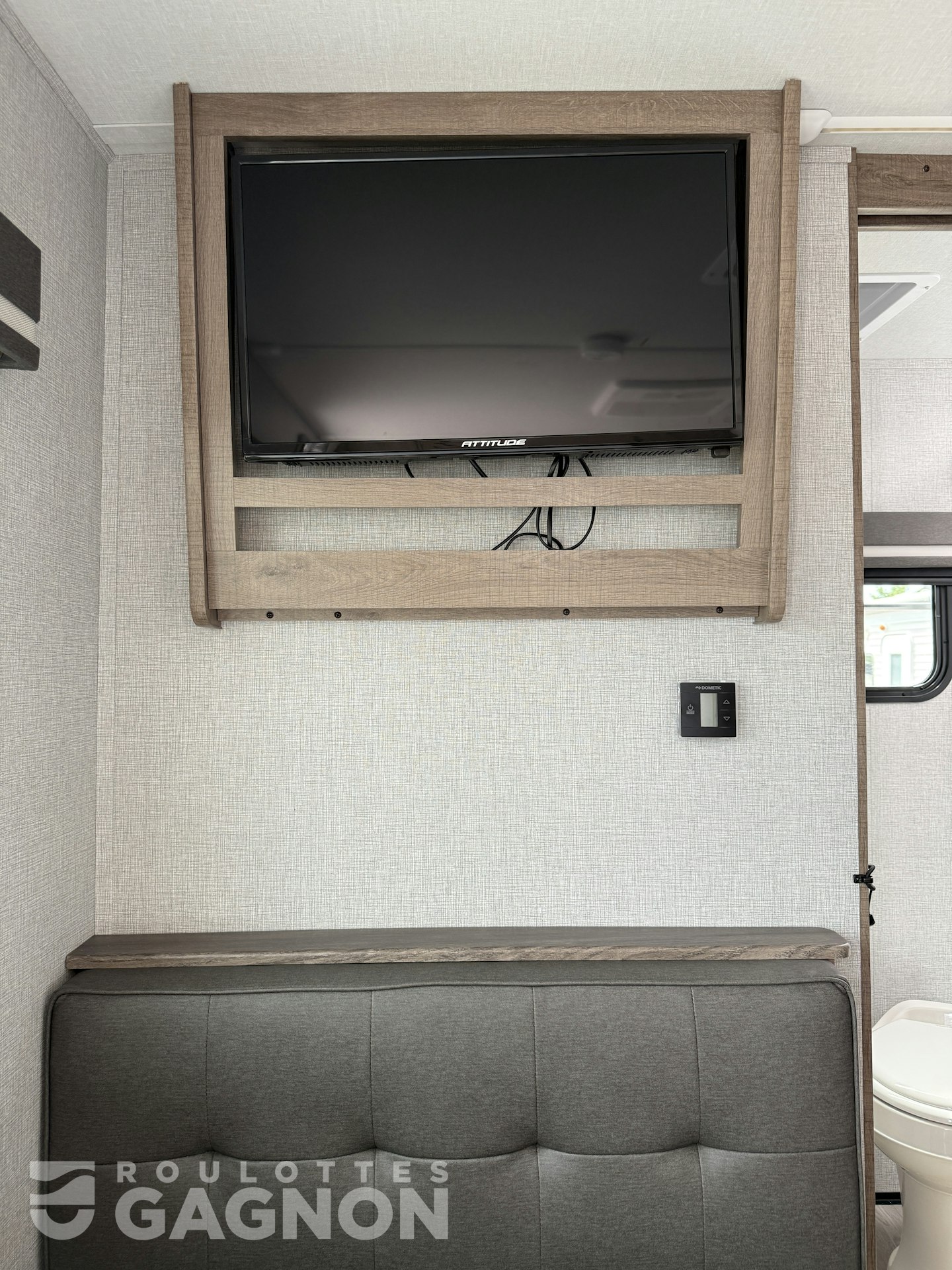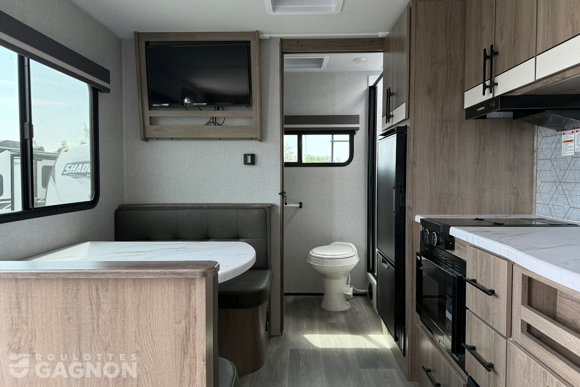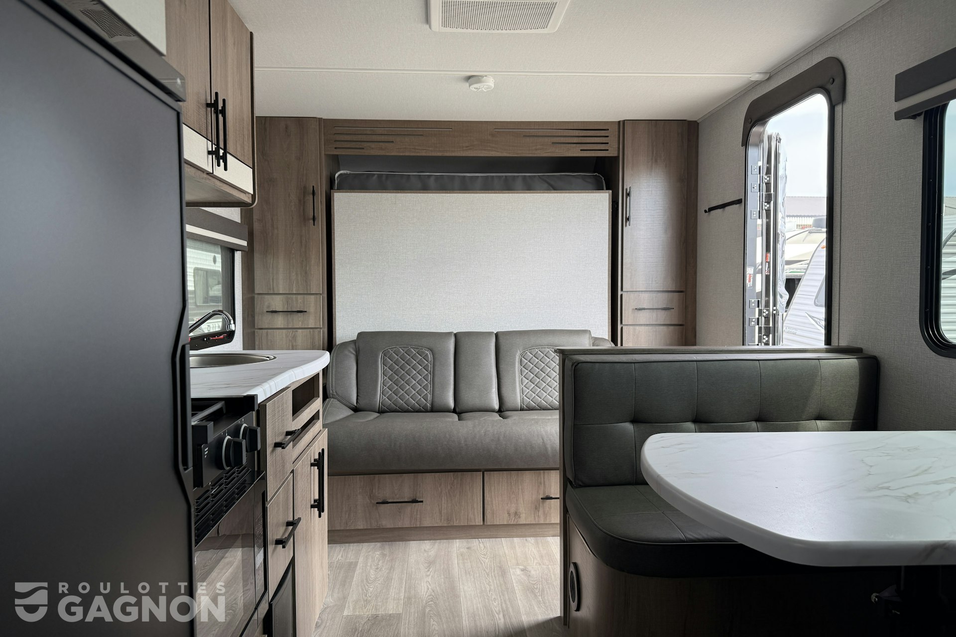 Roulotte Imagine 15 RB 2024 usagée à vendre. Cette roulotte de voyage est idéale pour un couple et peut coucher jusqu’à 4 personnes. La Imagine 15 RB mesure 19.11 pieds et pèse 3762 lb, son revêtement est en fibre de verre et les options suivantes sont incluses : jack de pole électrique, vérins stabilisateurs manuels, échelle, auvent électrique, marche pied en un bloc (solid step), radio, éclairage au DEL, climatiseur et mags.