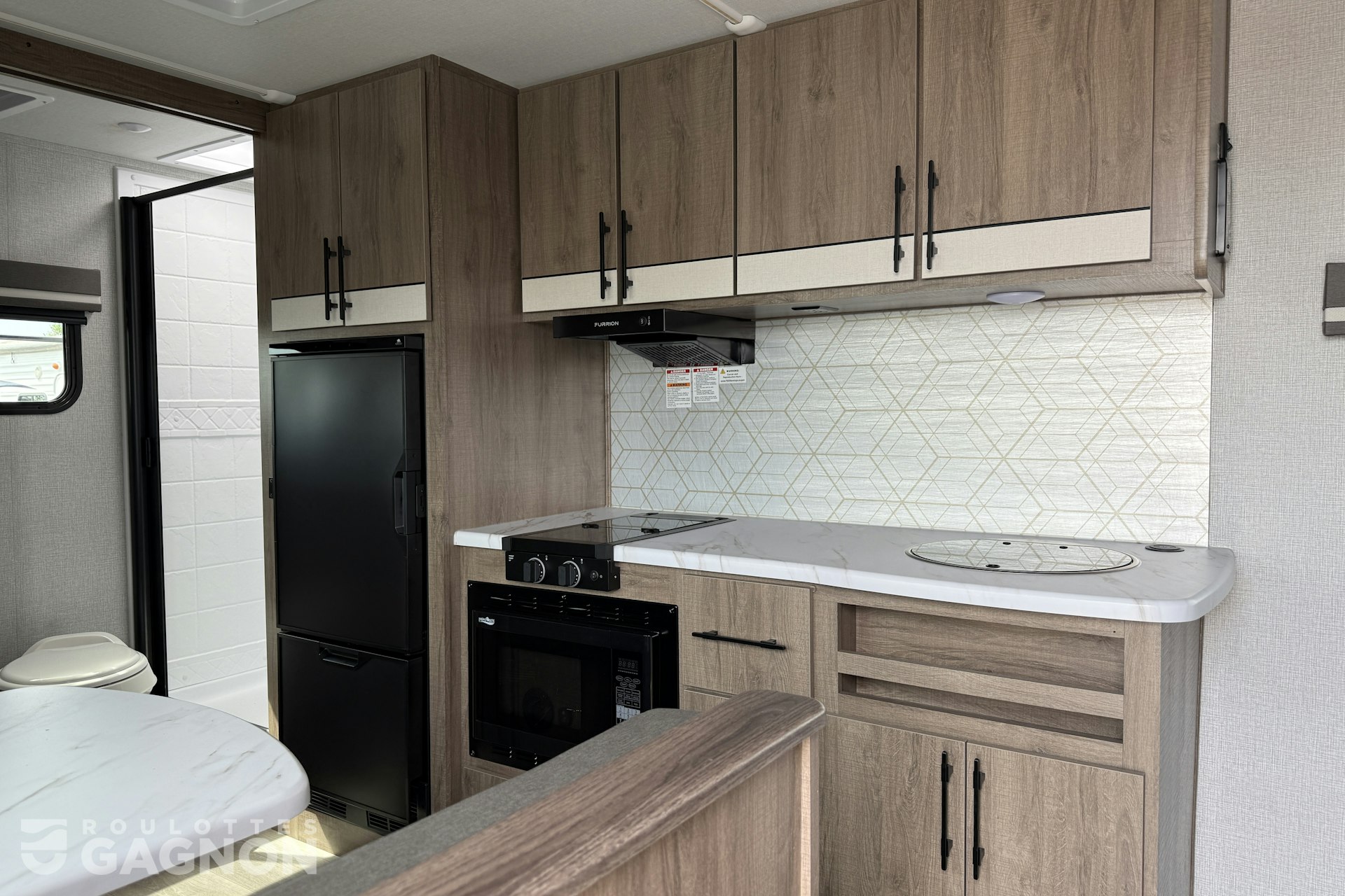 Note: Nous nous efforçons pour décrire les spécifications et les options des roulottes affichées sur notre site le plus précisément possible, toutefois, des erreurs peuvent se glisser. Nous sommes désolés si tel était le cas. Les photos sont à titre indicatif seulement. Les couleurs et les options peuvent varier selon les derniers changements apportés par le fabricant.