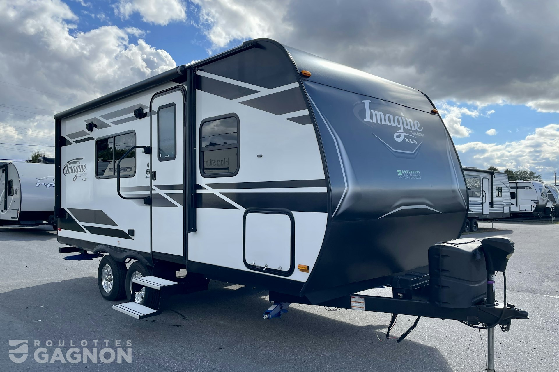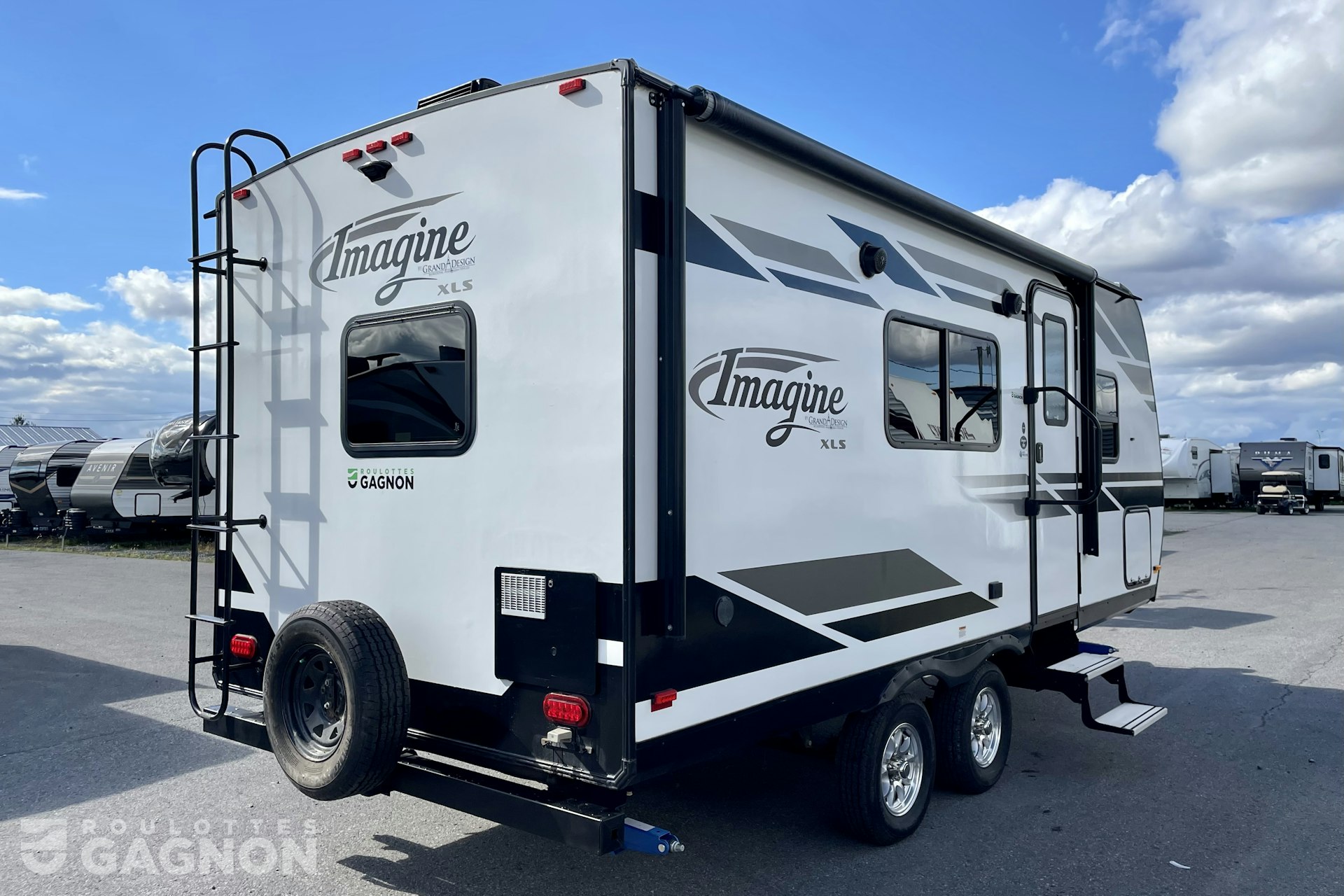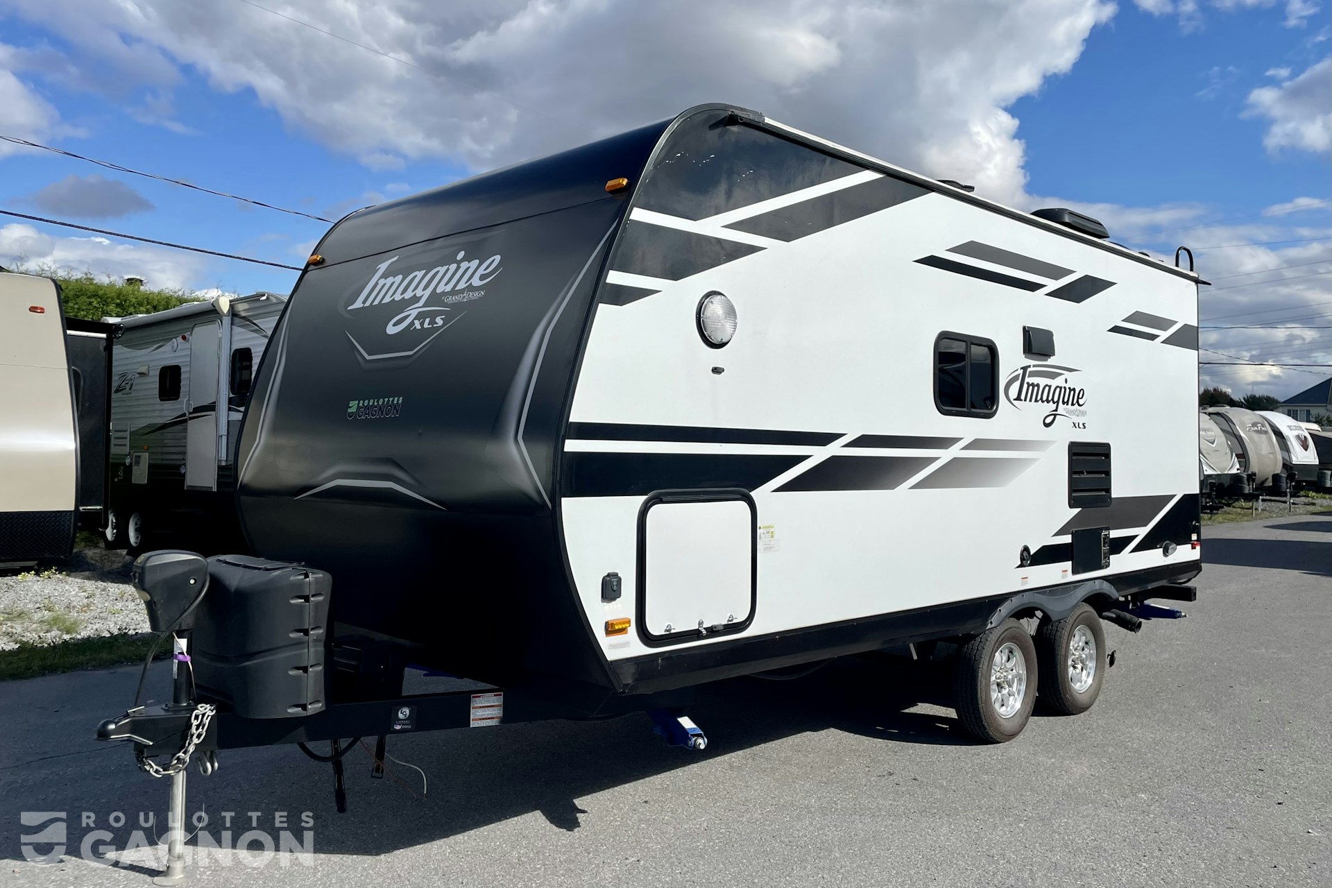 Roulotte Imagine 18 RBE 2019 usagée à vendre. Cette roulotte de voyage est idéale pour un couple et peut coucher jusqu’à 4 personnes. La Imagine 18 RBE mesure 22,5 pieds et pèse 4 250 lb, son revêtement est en fibre de verre et les options suivantes sont incluses : jack de pole électrique, vérins stabilisateurs manuels, préparation pour caméra de recul, échelle, auvent électrique, prise câble ou satellite, prise pour panneau solaire, bluetooth, prise USB, téléviseur, radio, hauts parleurs extérieurs, éclairage au DEL, climatiseur, puits de lumière, mags et spray port.