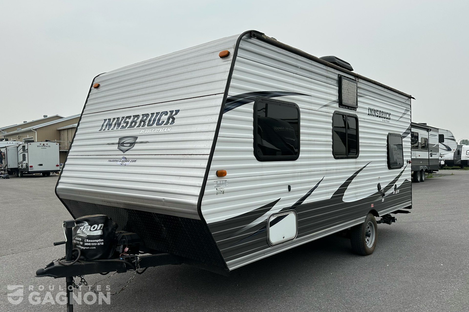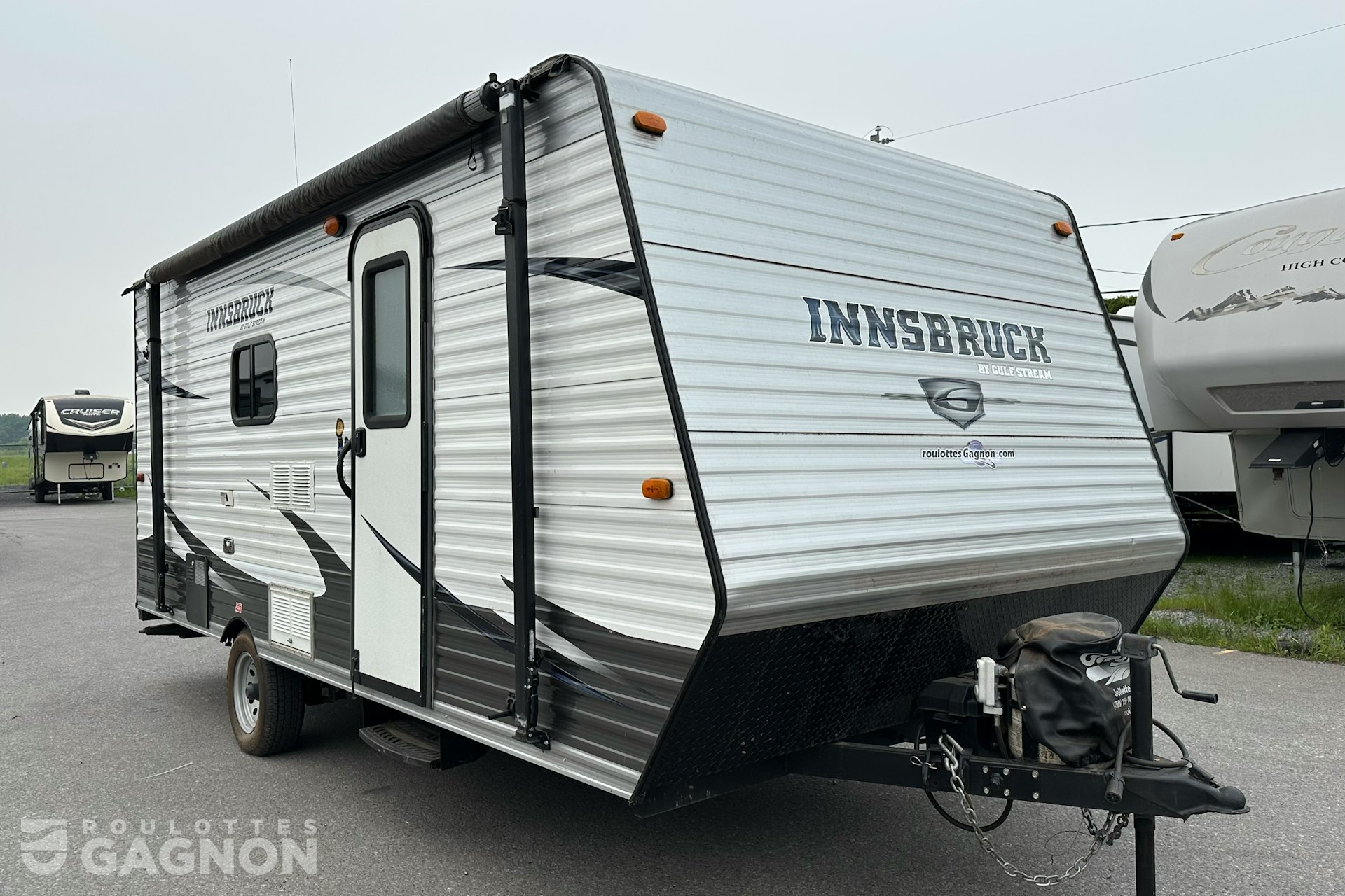 Roulotte Innsbruck 198 BH 2016 usagée à vendre. Cette roulotte de voyage fabriquée par Gulfstream est idéale pour une famille et peut coucher jusqu’à 6 personnes. La Innsbruck 198 BH mesure 21 pieds et pèse 2 822 lb, son revêtement est en aluminium et les options suivantes sont incluses : vérins stabilisateurs manuels, auvent manuel, prise câble ou satellite, radio, climatiseur, puits de lumière et hitch arrière.