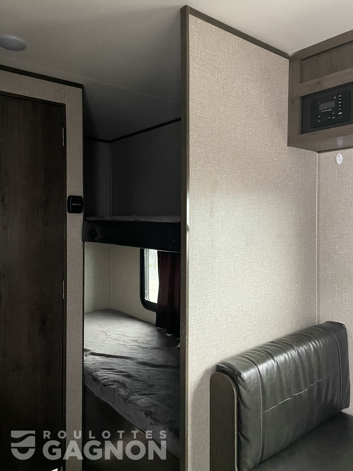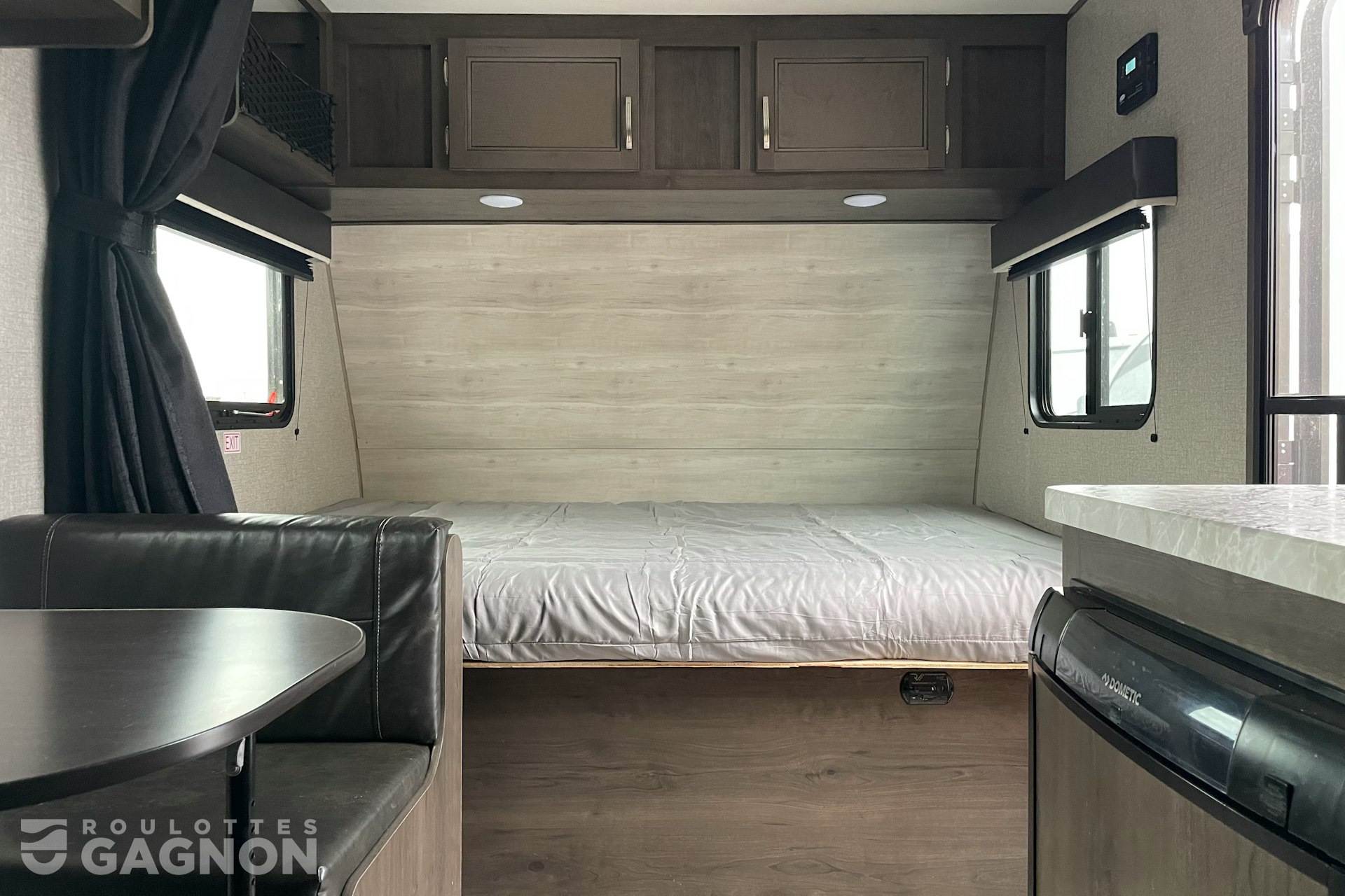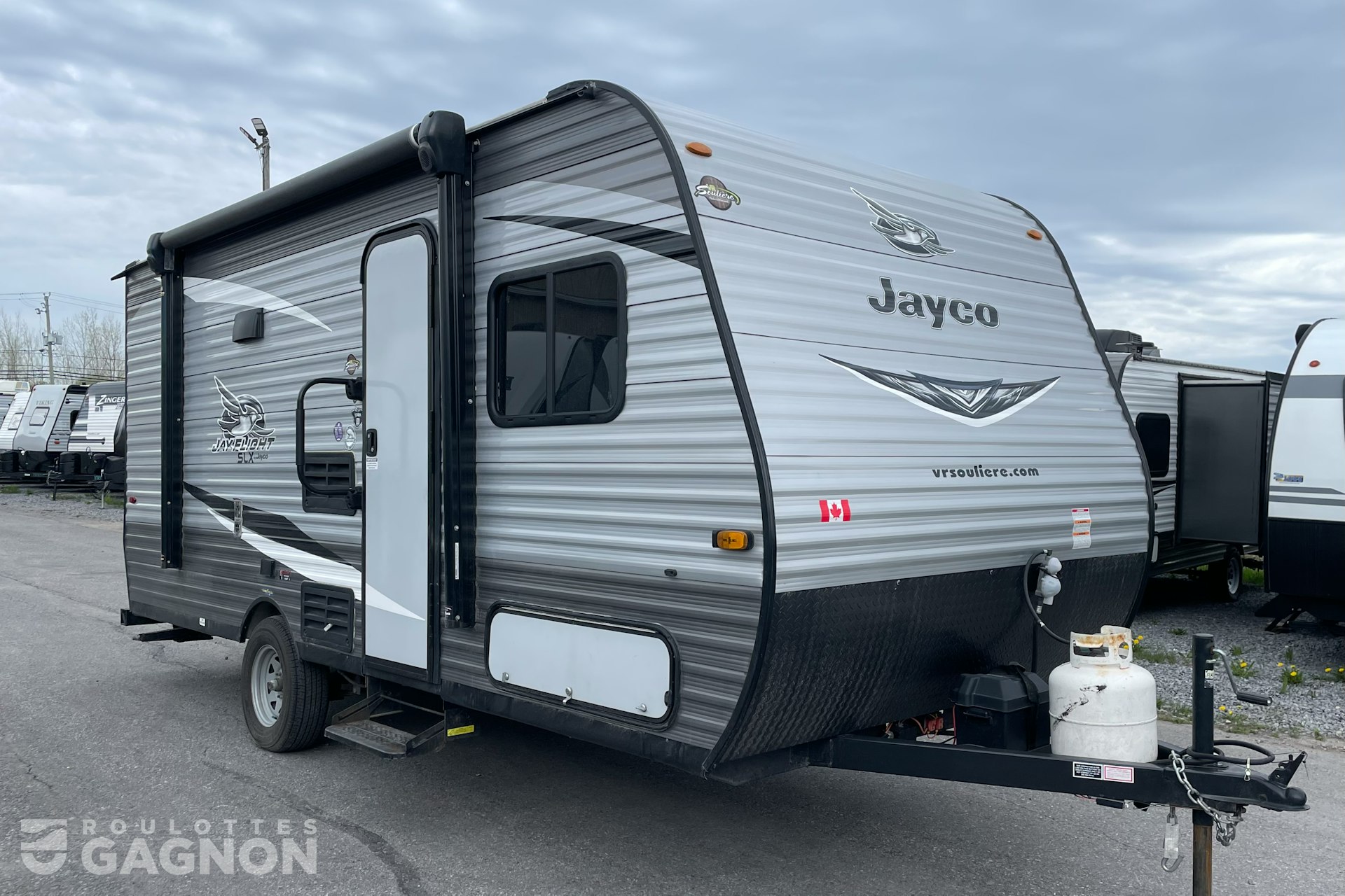 Roulotte Jay Flight 174 BH 2021 usagée à vendre. Cette roulotte de voyage fabriquée par Jayco est idéale pour une famille et peut coucher jusqu’à 5 personnes. La Jay Flight 174 BH mesure 21.7 pieds et pèse 3152 lb, son revêtement est en aluminium et les options suivantes sont incluses : vérins stabilisateurs manuels, auvent électrique, prise câble ou satellite, bluetooth, radio, éclairage au DEL, climatiseur, puits de lumière et panneau solaire.