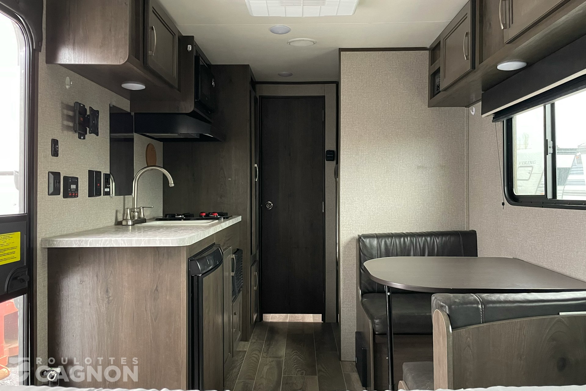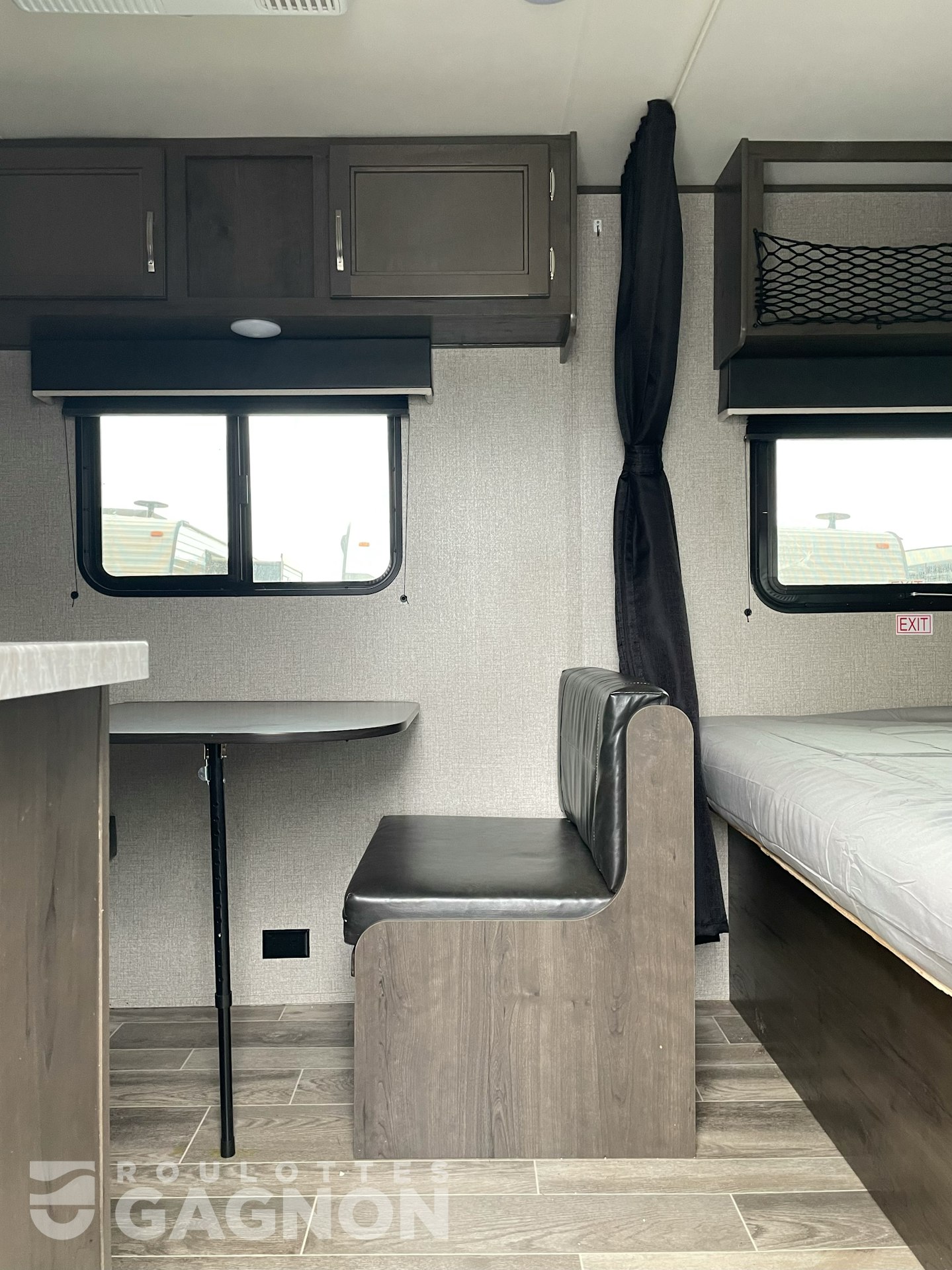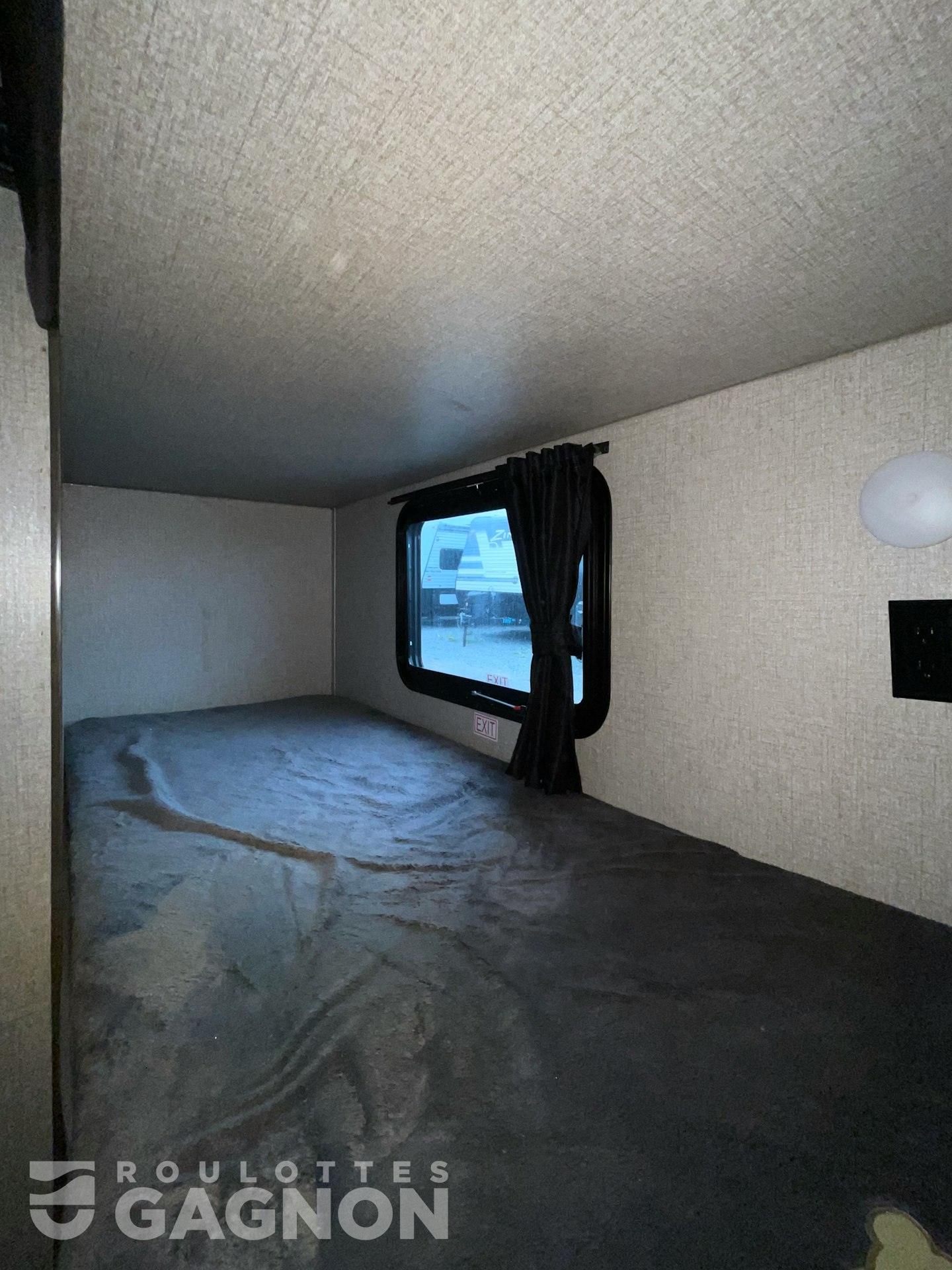 Roulotte Jay Flight 174 BH 2021 usagée à vendre. Cette roulotte de voyage fabriquée par Jayco est idéale pour une famille et peut coucher jusqu’à 5 personnes. La Jay Flight 174 BH mesure 21.7 pieds et pèse 3152 lb, son revêtement est en aluminium et les options suivantes sont incluses : vérins stabilisateurs manuels, auvent électrique, prise câble ou satellite, bluetooth, radio, éclairage au DEL, climatiseur, puits de lumière et panneau solaire.