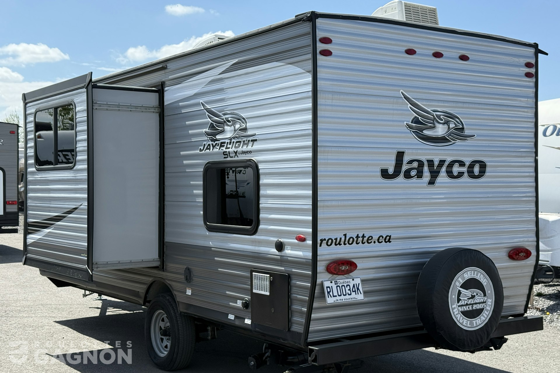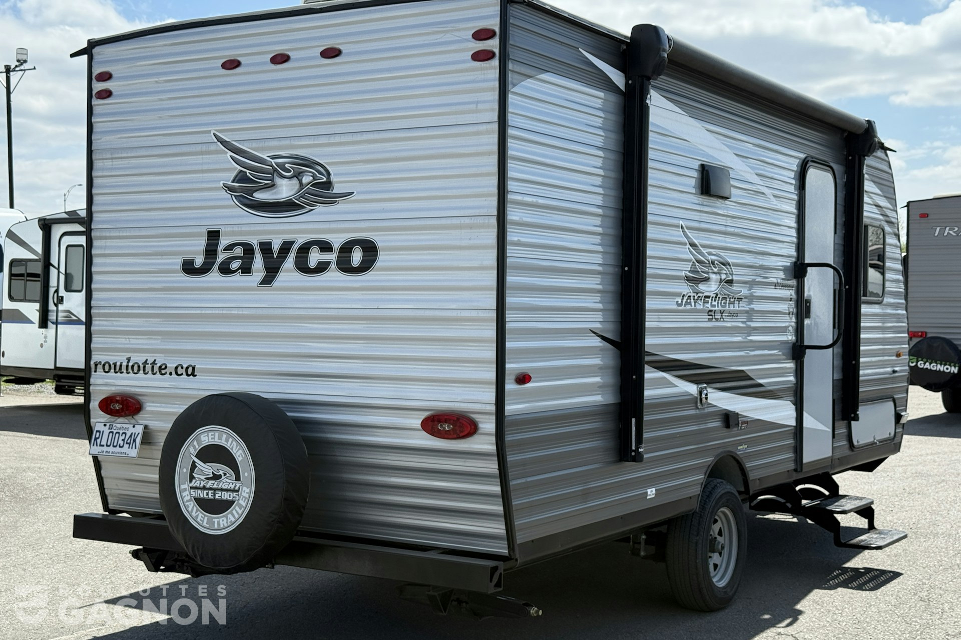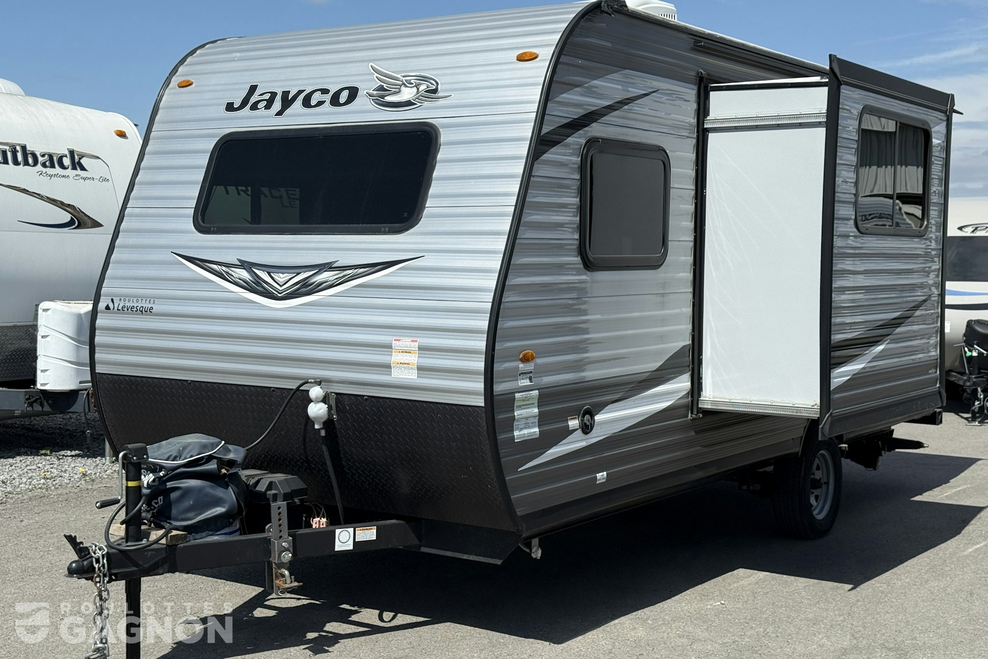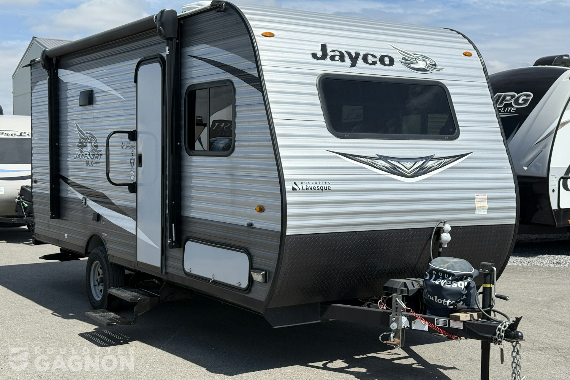 Roulotte Jay Flight 184 BS 2021 usagée à vendre. Cette roulotte de voyage fabriquée par Jayco est idéale pour une famille et peut coucher jusqu’à 6 personnes. La Jay Flight 184 BS mesure 21.5 pieds et pèse 3240 lb, son revêtement est en aluminium et les options suivantes sont incluses : vérins stabilisateurs manuels, auvent électrique, prise câble ou satellite, radio, hauts parleurs extérieurs, éclairage au DEL, climatiseur, puits de lumière et douche extérieure.