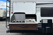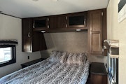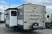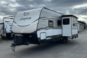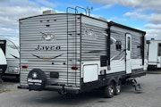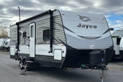 Roulotte Jay Flight 24 RBS 2018 usagée à vendre. Cette roulotte de voyage fabriquée par Jayco est idéale pour un couple et peut coucher jusqu’à 5 personnes. La Jay Flight 24 RBS mesure 28,8 pieds et pèse 5 706 lb, son revêtement est en aluminium et les options suivantes sont incluses : jack de pole électrique, vérins stabilisateurs électriques, préparation pour caméra de recul, échelle, auvent électrique, prise câble ou satellite, bluetooth, prise USB, téléviseur, radio, hauts parleurs extérieurs, éclairage au DEL, cuisinette extérieure, climatiseur, puits de lumière, douche extérieure, mags, slide topper et prise 12v.