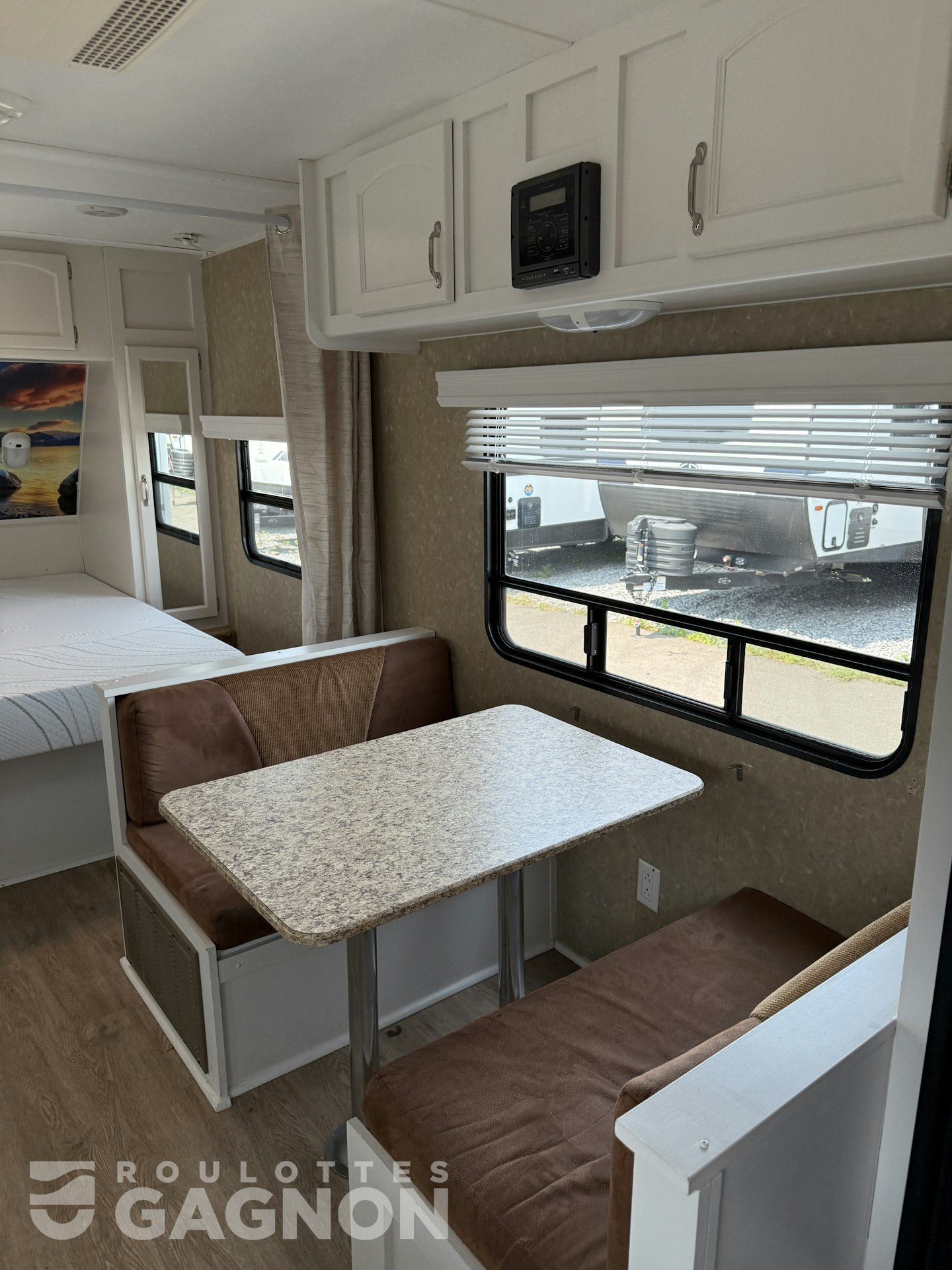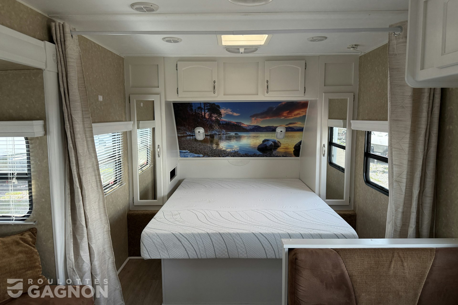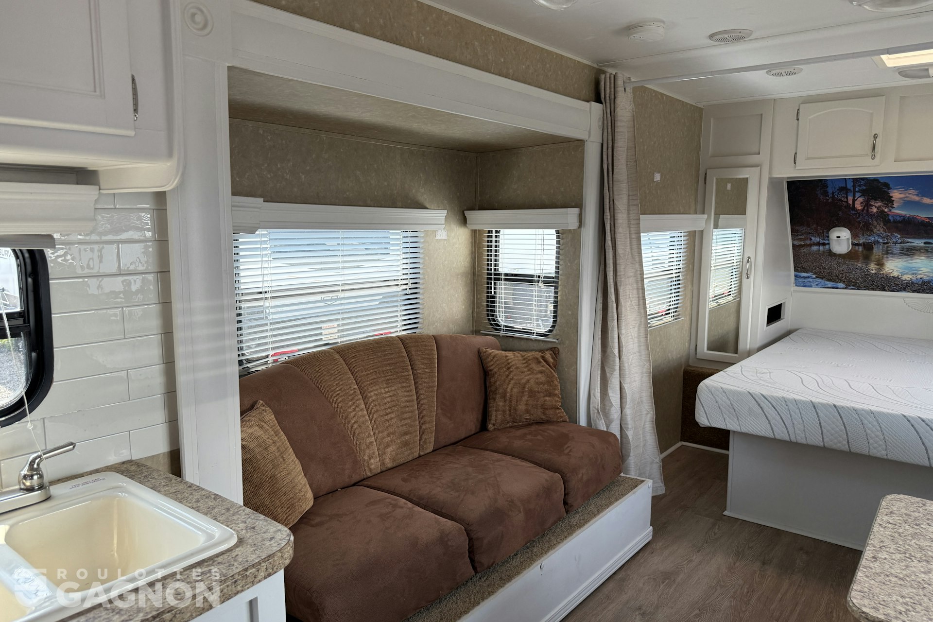 Note: Nous nous efforçons pour décrire les spécifications et les options des roulottes affichées sur notre site le plus précisément possible, toutefois, des erreurs peuvent se glisser. Nous sommes désolés si tel était le cas. Les photos sont à titre indicatif seulement. Les couleurs et les options peuvent varier selon les derniers changements apportés par le fabricant.