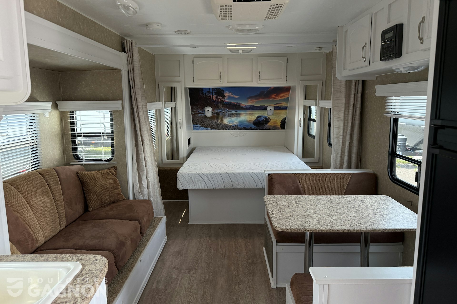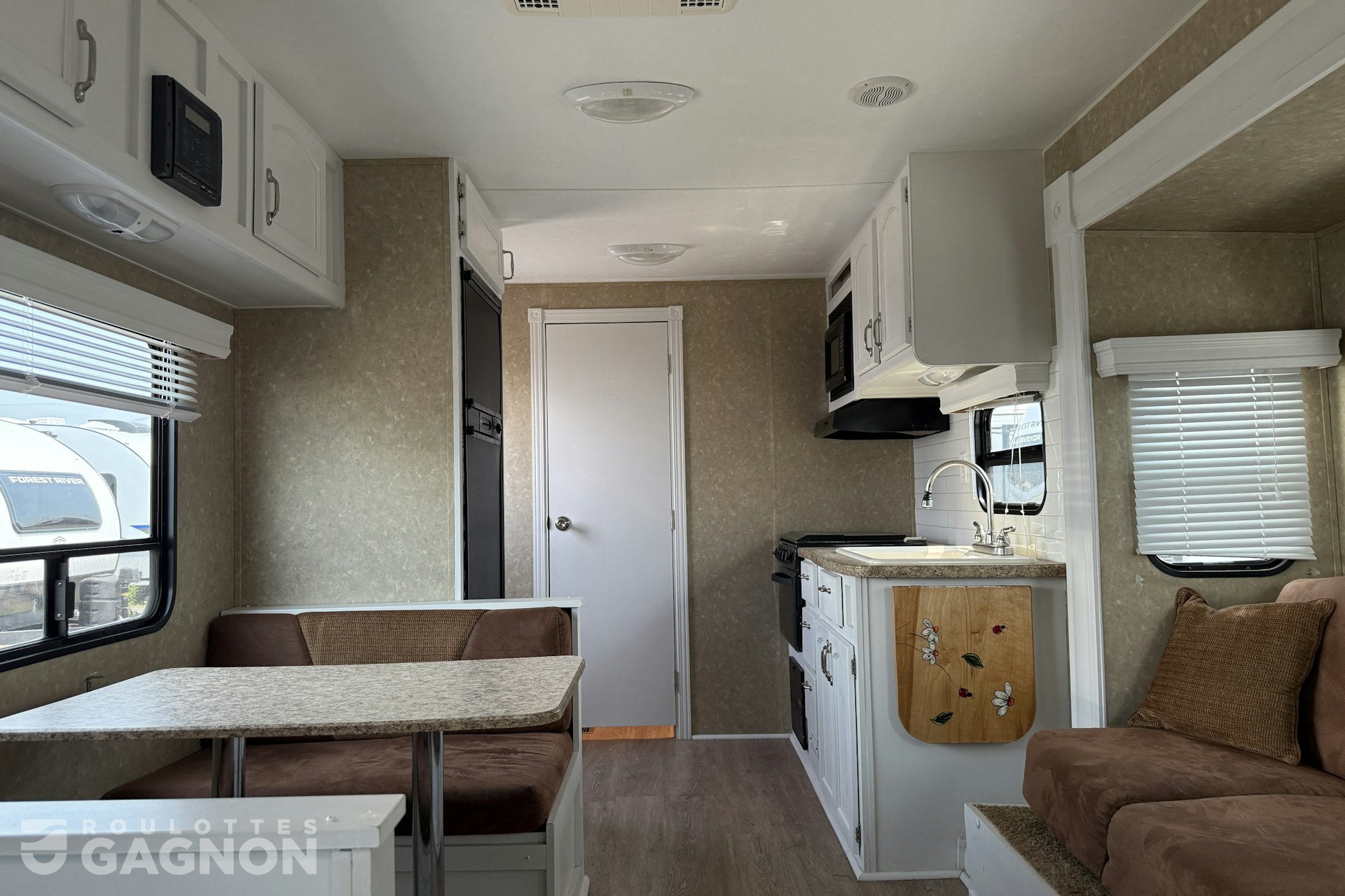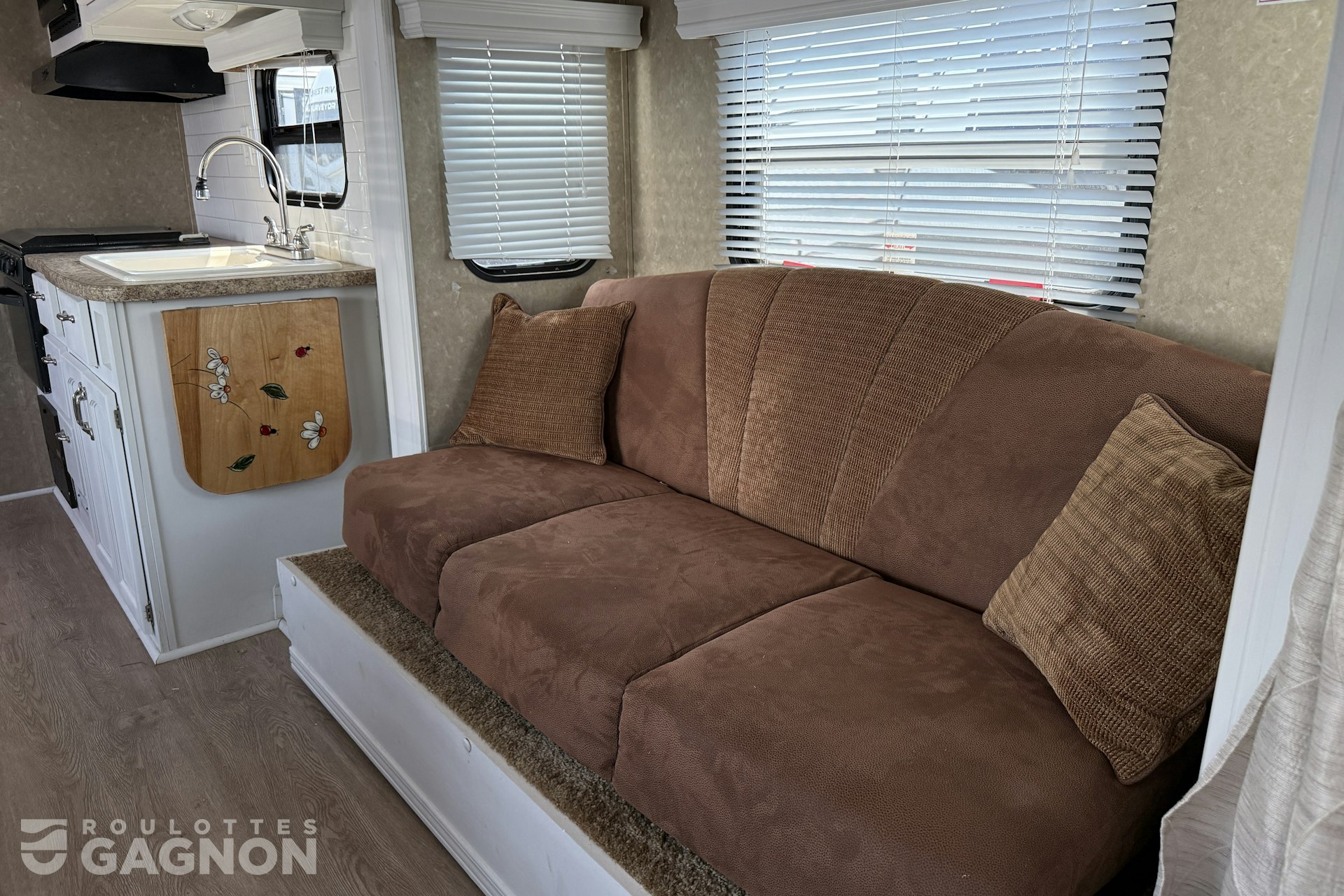 Note: Nous nous efforçons pour décrire les spécifications et les options des roulottes affichées sur notre site le plus précisément possible, toutefois, des erreurs peuvent se glisser. Nous sommes désolés si tel était le cas. Les photos sont à titre indicatif seulement. Les couleurs et les options peuvent varier selon les derniers changements apportés par le fabricant.