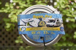 Il est important de choisir un bon boyau de raccordement pour alimenter votre roulotte en eau potable. Le boyau Aqua Pro est spécialisé pour les véhicules récréatifs et a été conçu spécialement pour faire circuler de l’eau potable. À la différence des tuyaux d’arrosage classiques, son enduit intérieur a été traité pour que l’eau ne goute pas le caoutchouc, même quand le soleil plombe dessus (sa couleur blanche aide d’ailleurs à réfléchir la chaleur du soleil.) Ses composants sont exempts de plomb et non-toxiques.