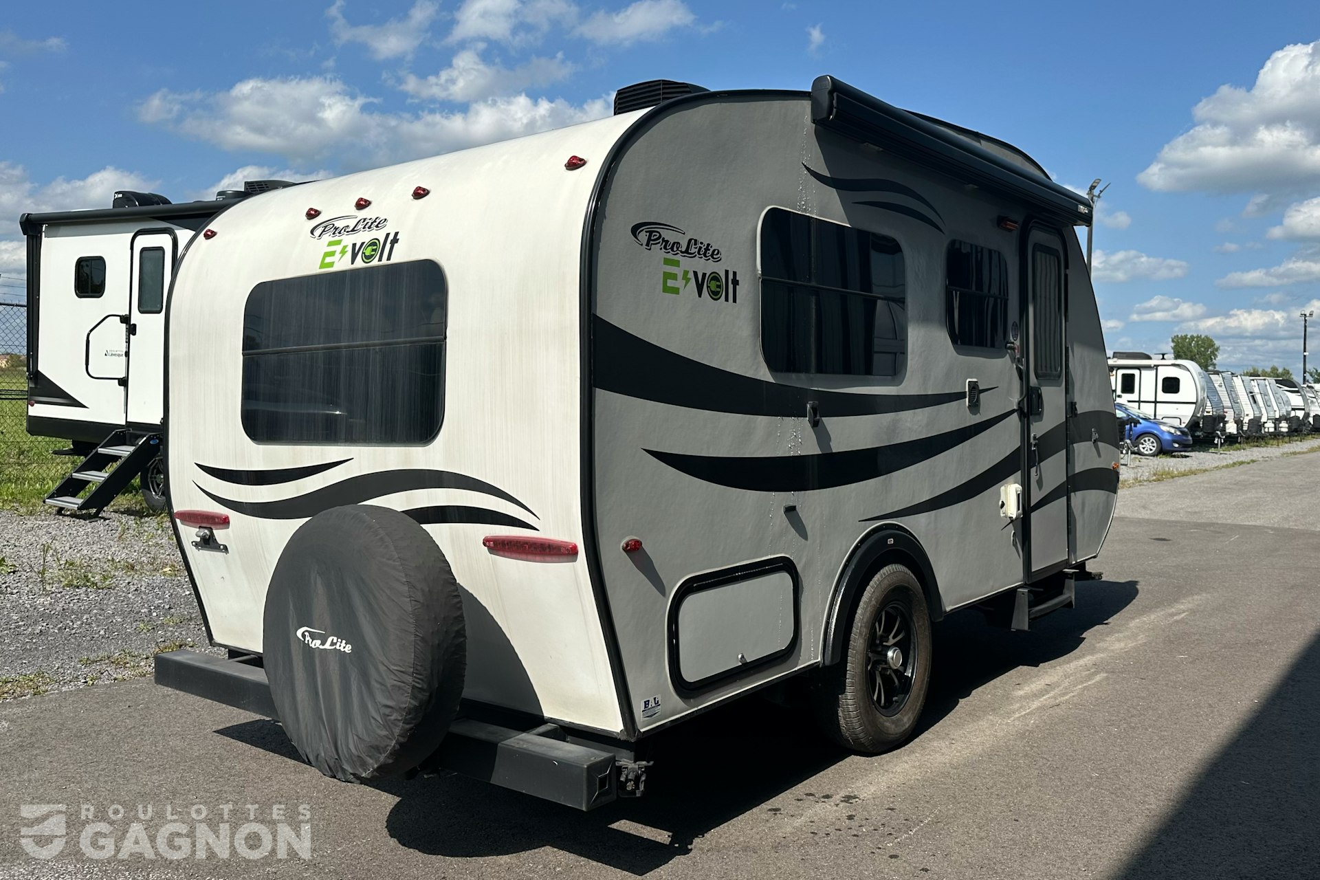 Roulotte Prolite E-Volt 2021 usagée à vendre. Cette roulotte de voyage fabriquée par Prolite est idéale pour un couple et peut coucher jusqu’à 3 personnes. La Prolite E-Volt mesure 16,9 pieds et pèse 1 989 lb, son revêtement est en fibre de verre et les options suivantes sont incluses : vérins stabilisateurs manuels, auvent manuel, prise câble ou satellite, prise pour panneau solaire, prise USB, éclairage au DEL, douche extérieure, mags, panneau solaire 400 w, maxxair et prise 12v.