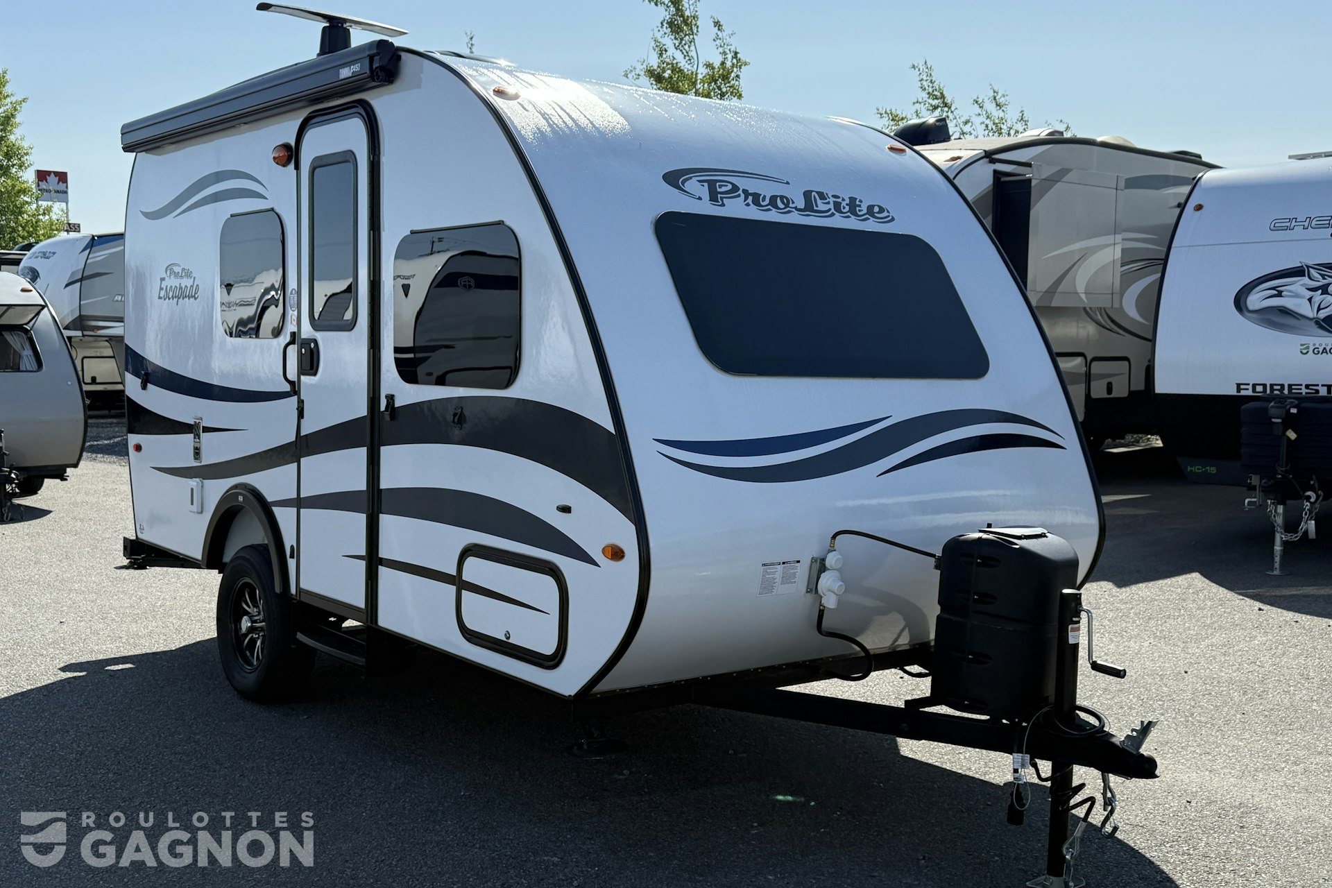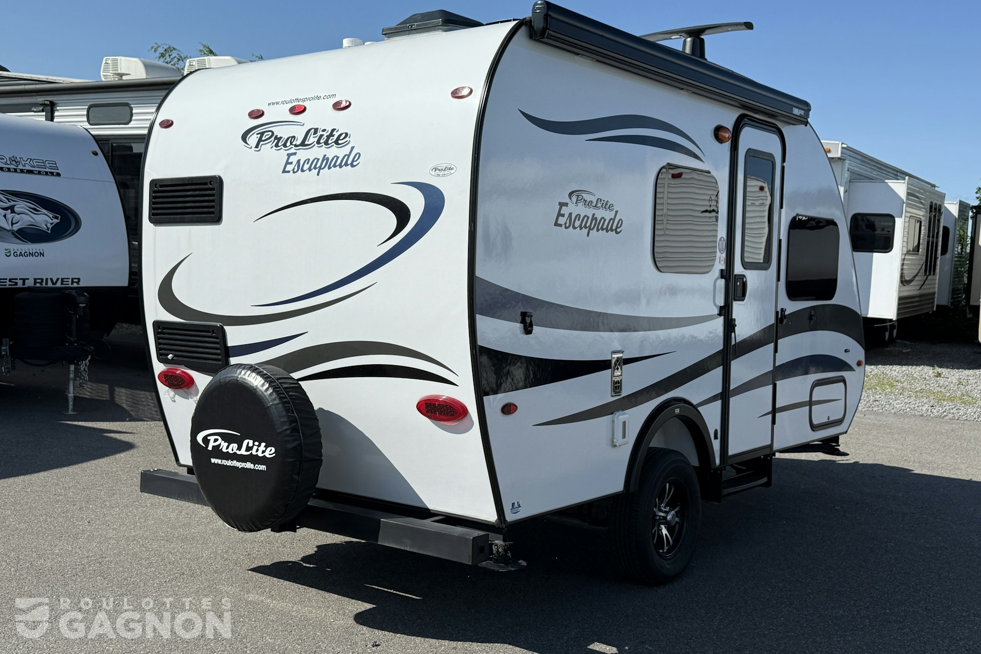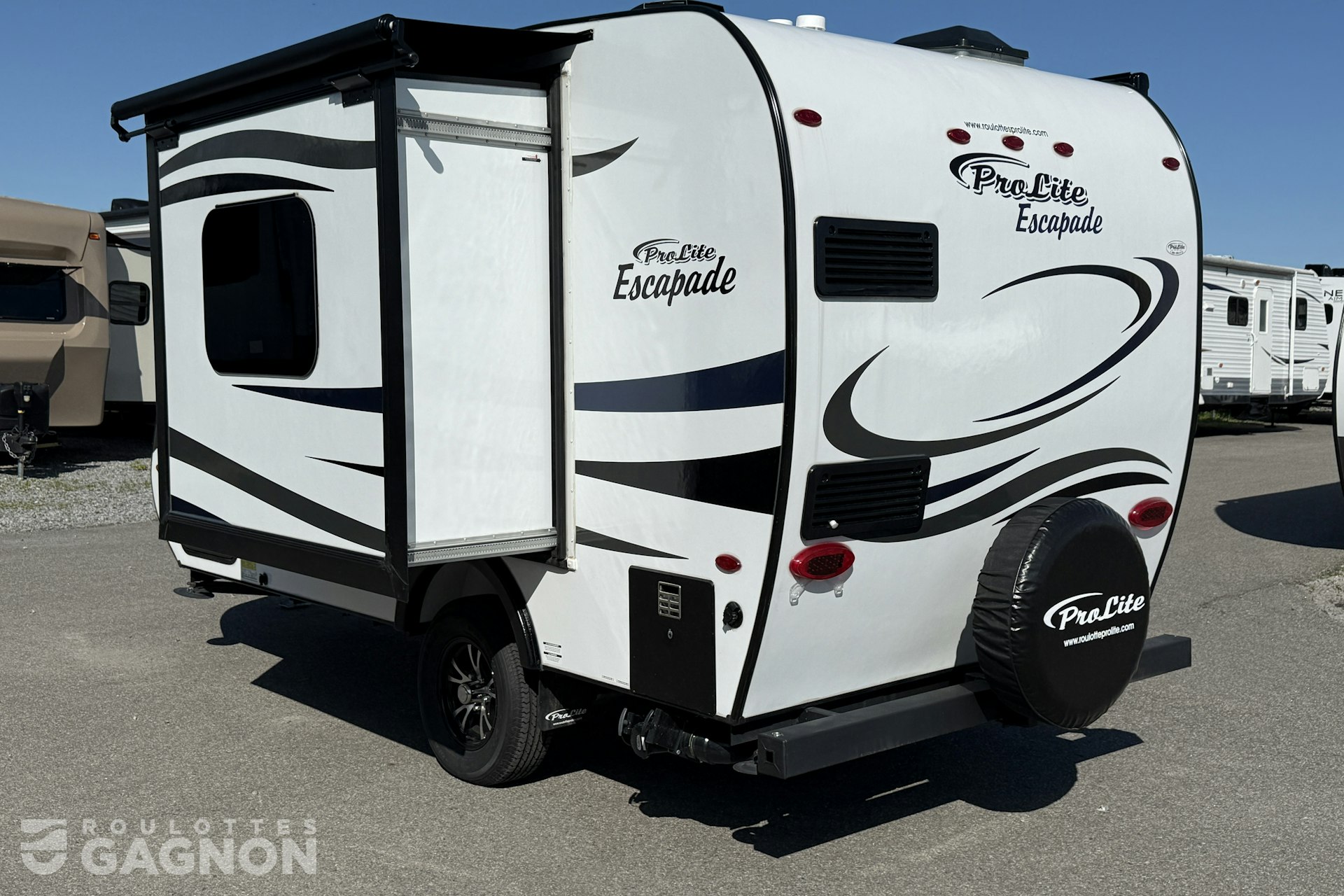 Roulotte Prolite Escapade 2024 usagée à vendre. Cette roulotte de voyage fabriquée par Prolite est idéale pour un couple et peut coucher jusqu’à 4 personnes. La Prolite Escapade mesure 16.1 pieds et pèse 2035 lb, son revêtement est en fibre de verre et les options suivantes sont incluses : vérins stabilisateurs manuels, auvent manuel, prise pour panneau solaire et mags.
