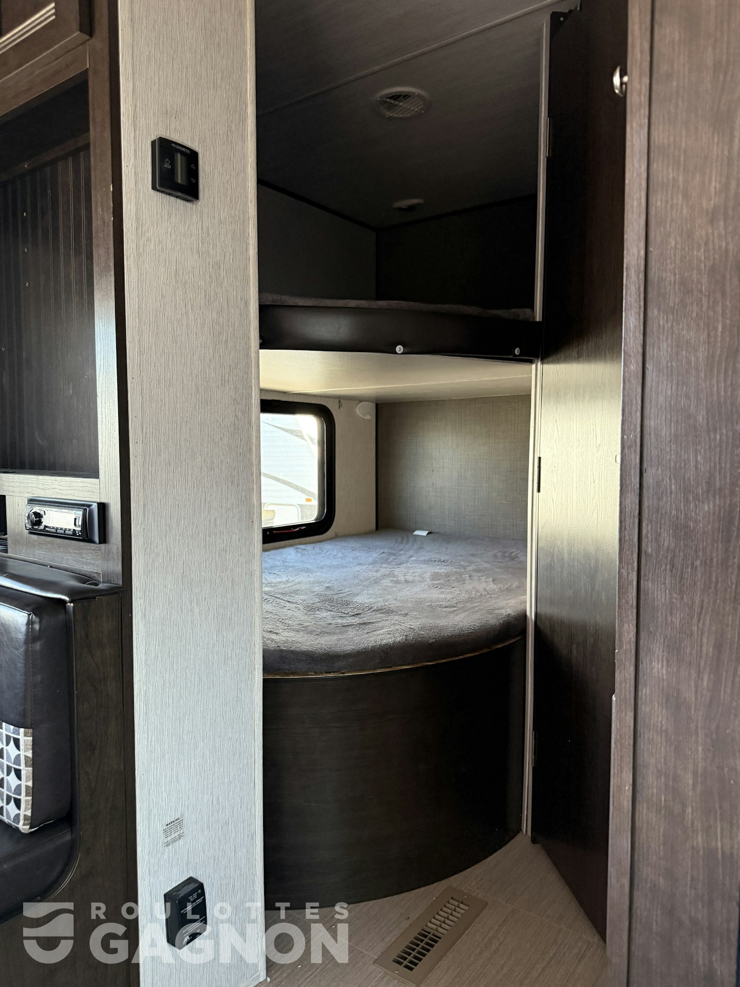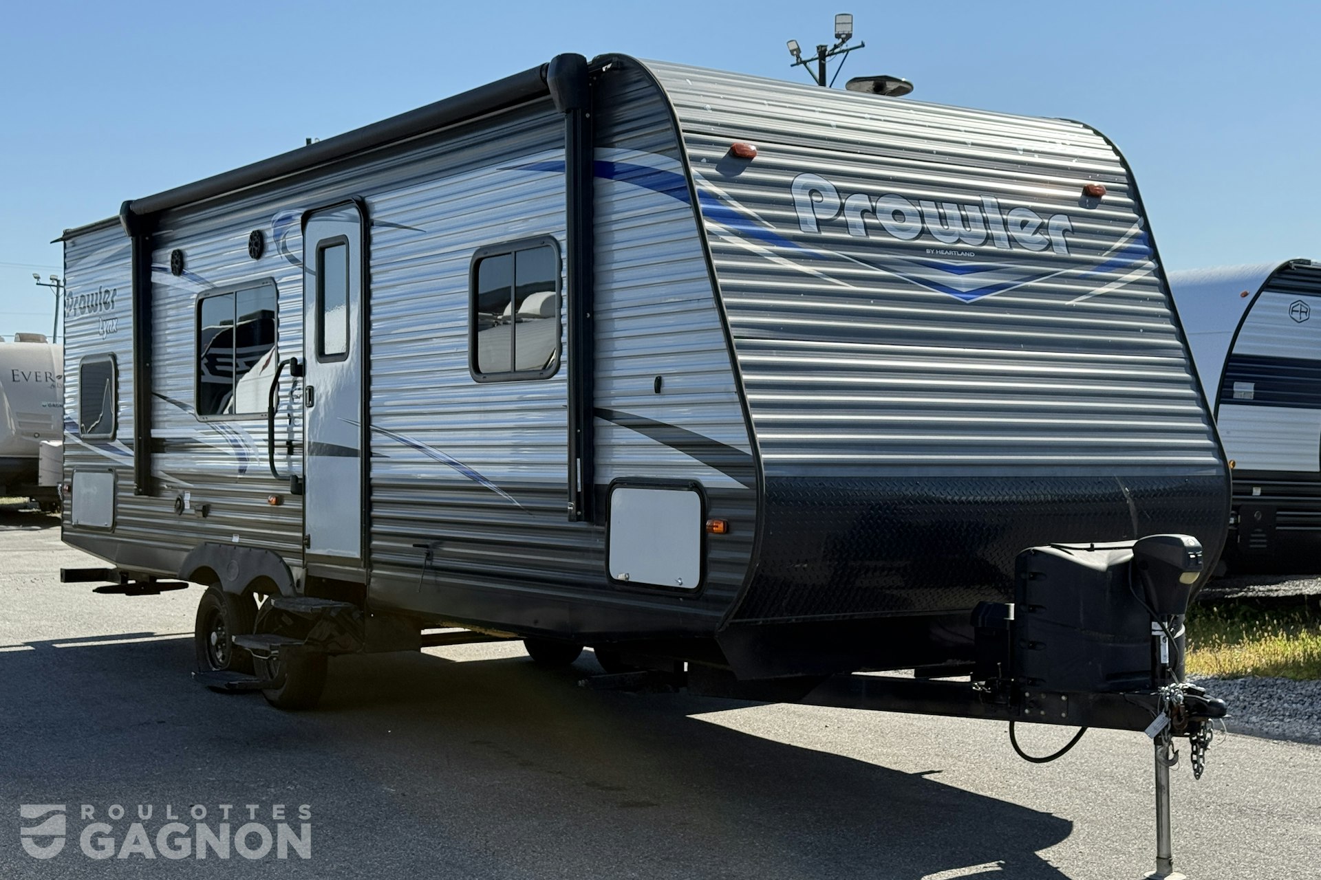Roulotte Prowler 262 LX 2019 usagée à vendre. Cette roulotte de voyage fabriquée par Fleetwood est idéale pour une famille et peut coucher jusqu’à 8 personnes. La Prowler 262 LX mesure 30 pieds et pèse 5775 lb, son revêtement est en aluminium et les options suivantes sont incluses : jack de pole électrique, vérins stabilisateurs manuels, auvent électrique, radio, climatiseur et douche extérieure.