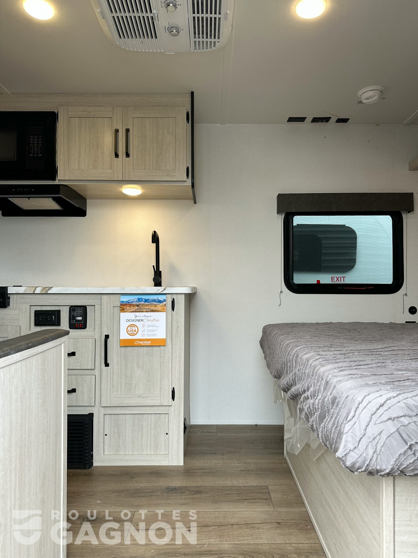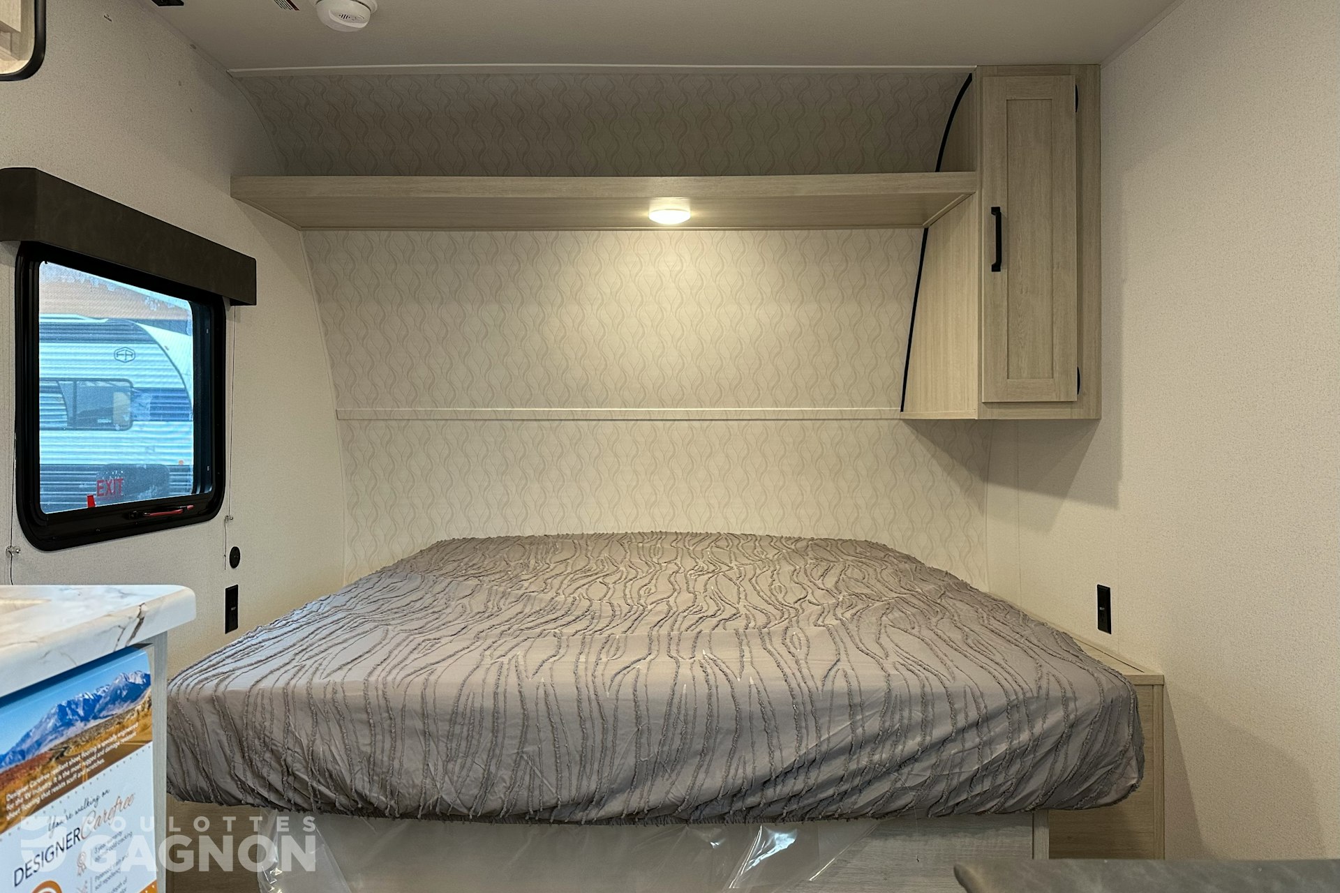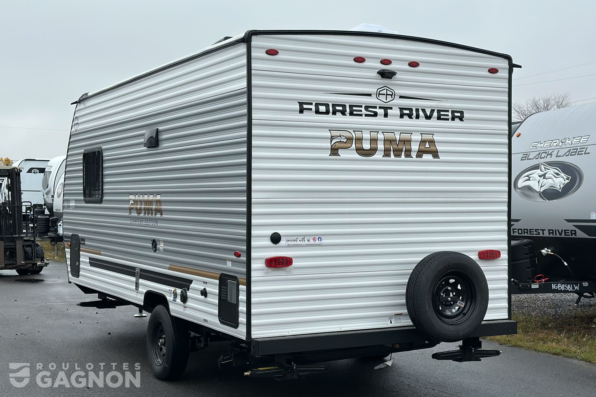 Roulotte Puma 16 QBCE 2026 neuve à vendre. Cette roulotte de voyage fabriquée par Forest River est idéale pour un couple et peut coucher jusqu’à 3 personnes. La Puma 16 QBCE mesure 20,9 pieds et pèse 3 398 lb, son revêtement est en aluminium et les options suivantes sont incluses : vérins stabilisateurs manuels, préparation pour caméra de recul, auvent électrique, prise câble ou satellite, prise pour panneau solaire, bluetooth, prise USB, radio, hauts parleurs extérieurs, éclairage au DEL, climatiseur, prises usb c et panneau solaire.