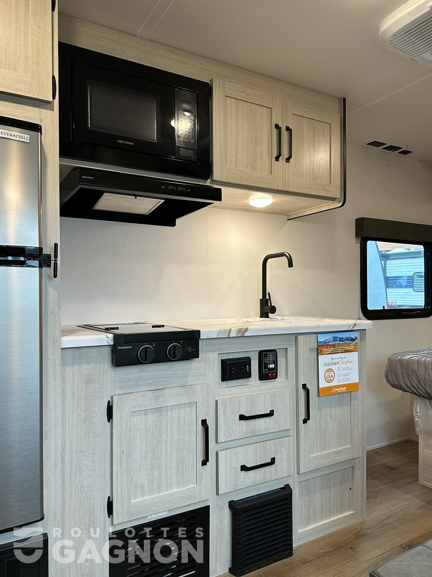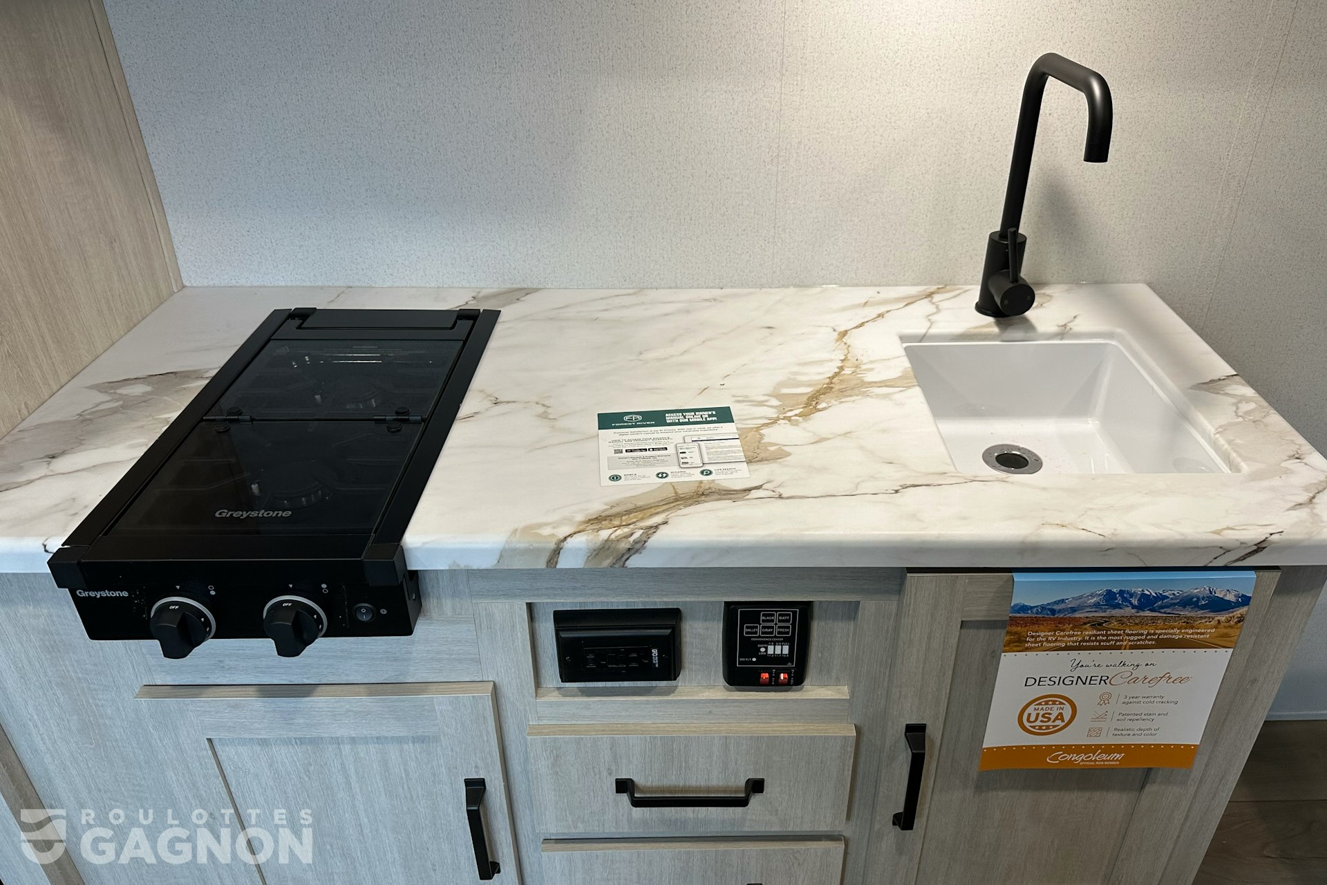 Note: Nous nous efforçons pour décrire les spécifications et les options des roulottes affichées sur notre site le plus précisément possible, toutefois, des erreurs peuvent se glisser. Nous sommes désolés si tel était le cas. Les photos sont à titre indicatif seulement. Les couleurs et les options peuvent varier selon les derniers changements apportés par le fabricant.