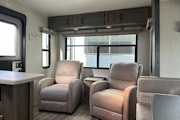 Roulotte Puma 253 FBS 2021 usagée à vendre. Cette fifth wheel fabriquée par Forest River est idéale pour un couple et peut coucher jusqu’à 4 personnes. La Puma 253 FBS mesure 27,5 pieds et pèse 6 727 lb, son revêtement est en aluminium et les options suivantes sont incluses : jack de pole électrique, vérins stabilisateurs électriques, préparation pour caméra de recul, échelle, auvent électrique, prise câble ou satellite, prise pour panneau solaire, bluetooth, prise USB, radio, hauts parleurs extérieurs, éclairage au DEL, cuisinette extérieure, climatiseur, puits de lumière, douche extérieure et spray port.