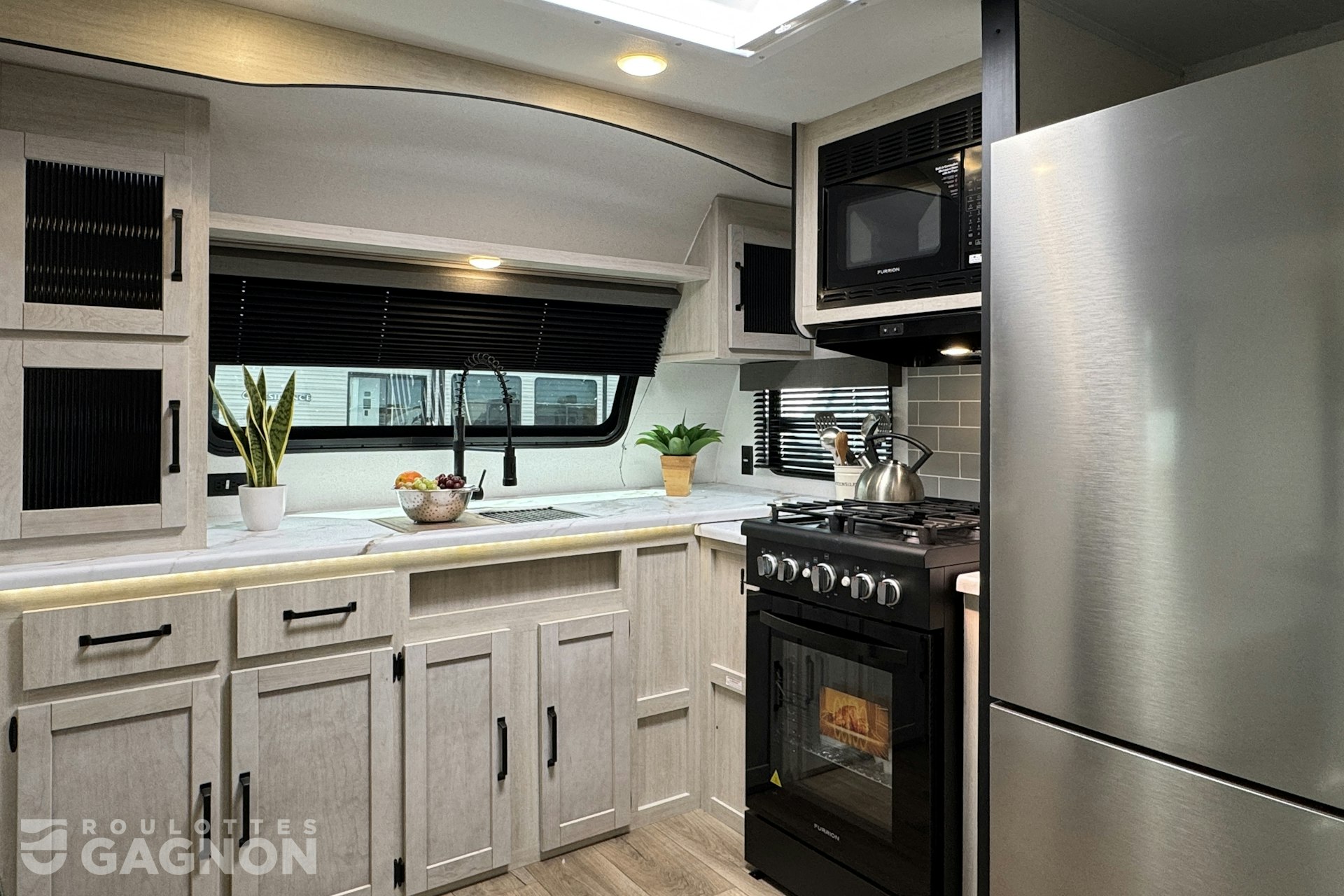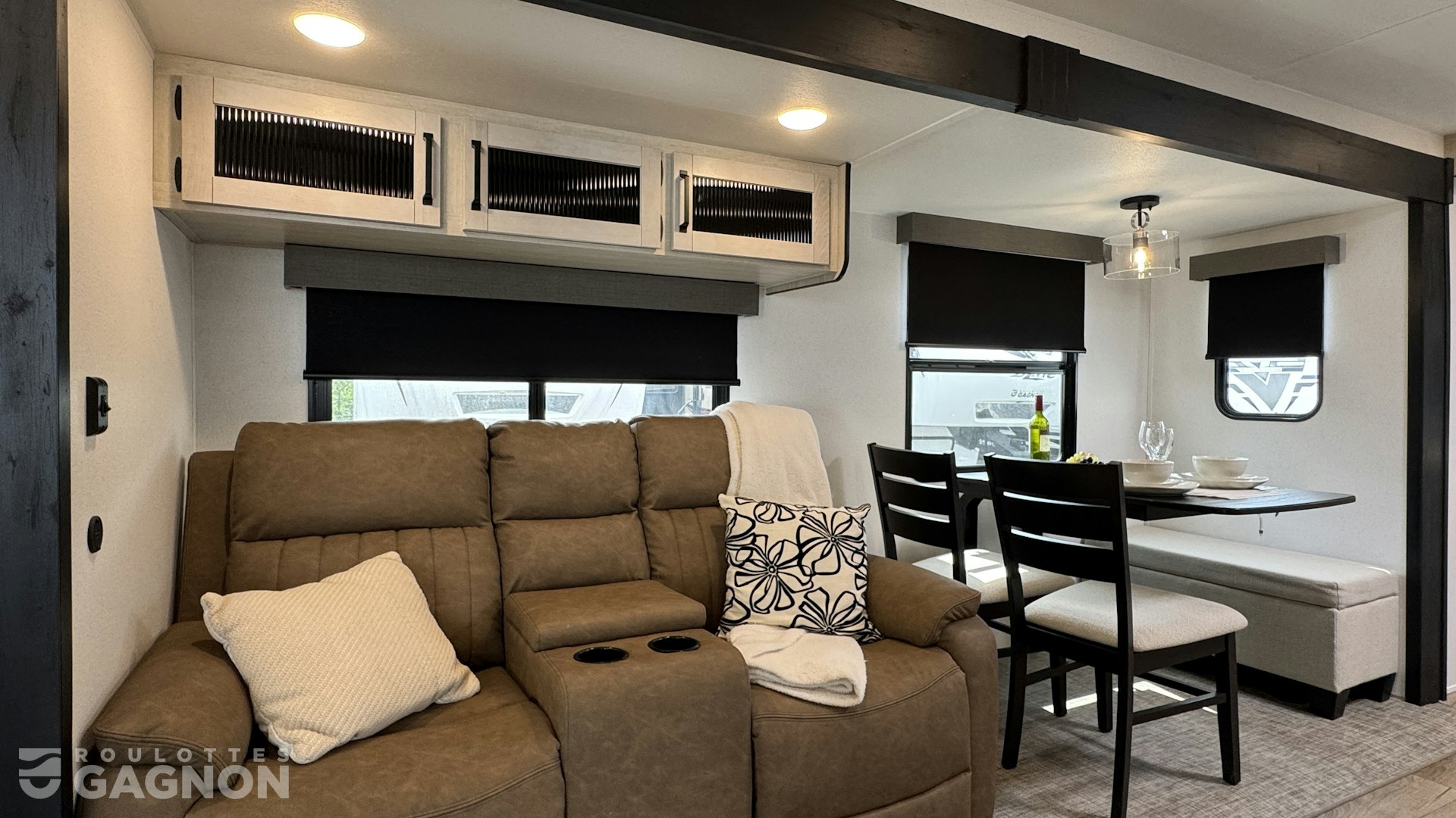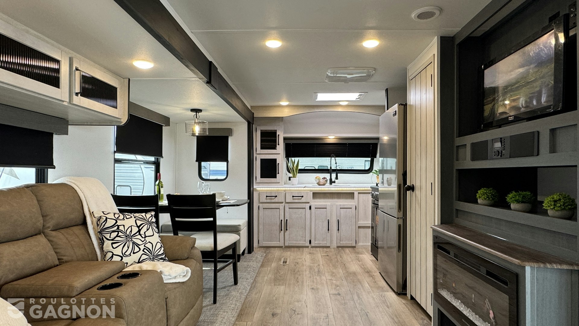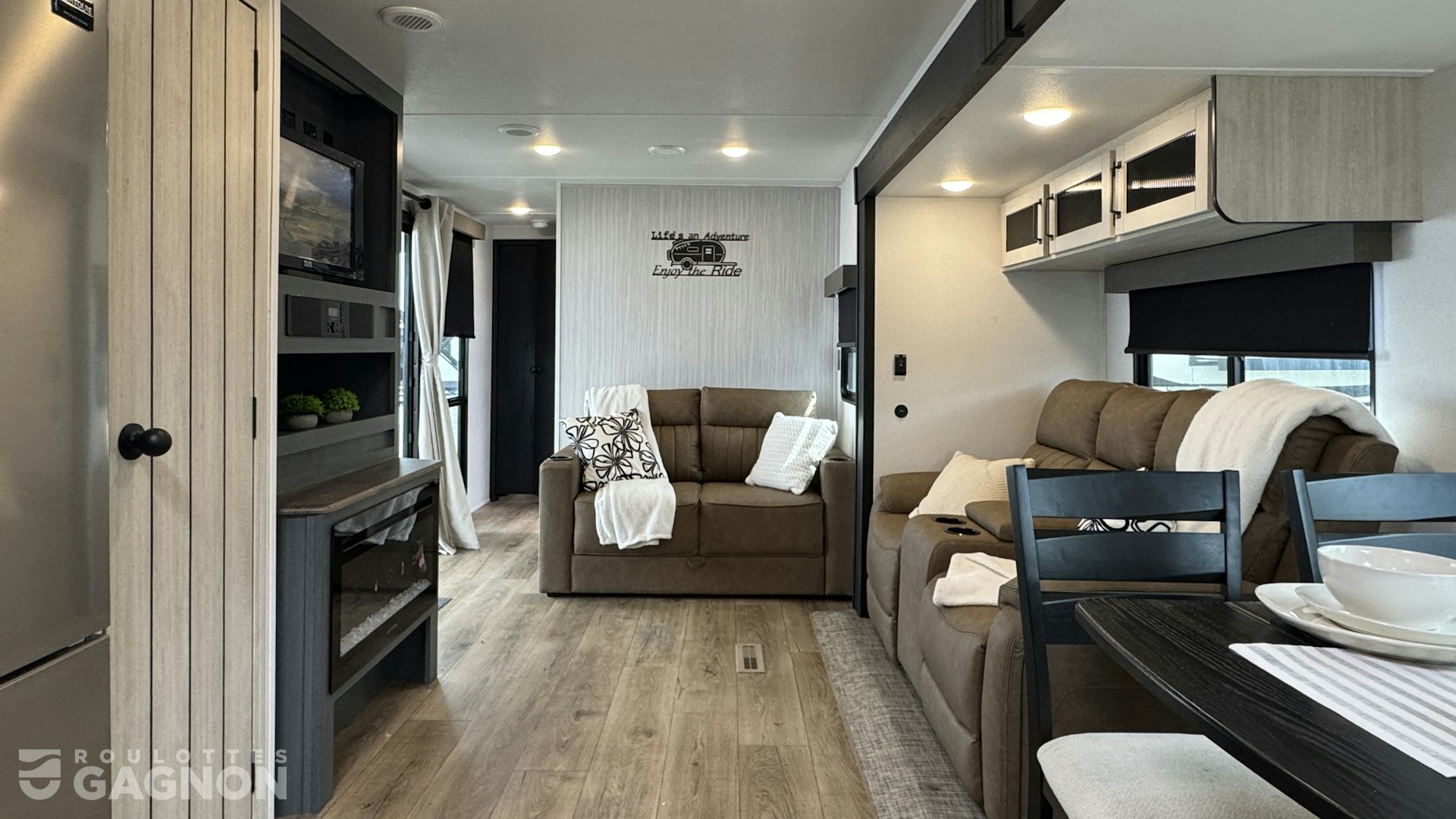 Note: Nous nous efforçons pour décrire les spécifications et les options des roulottes affichées sur notre site le plus précisément possible, toutefois, des erreurs peuvent se glisser. Nous sommes désolés si tel était le cas. Les photos sont à titre indicatif seulement. Les couleurs et les options peuvent varier selon les derniers changements apportés par le fabricant.