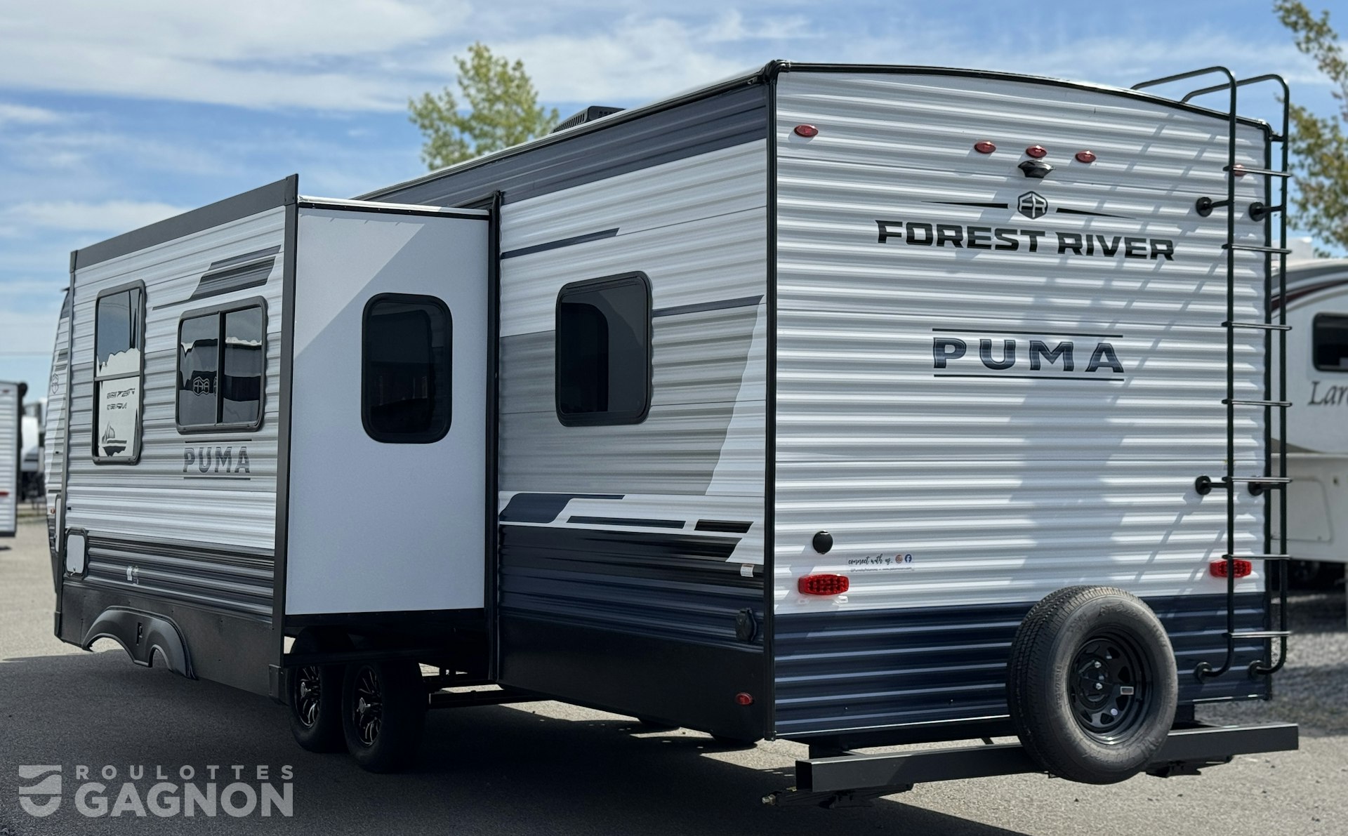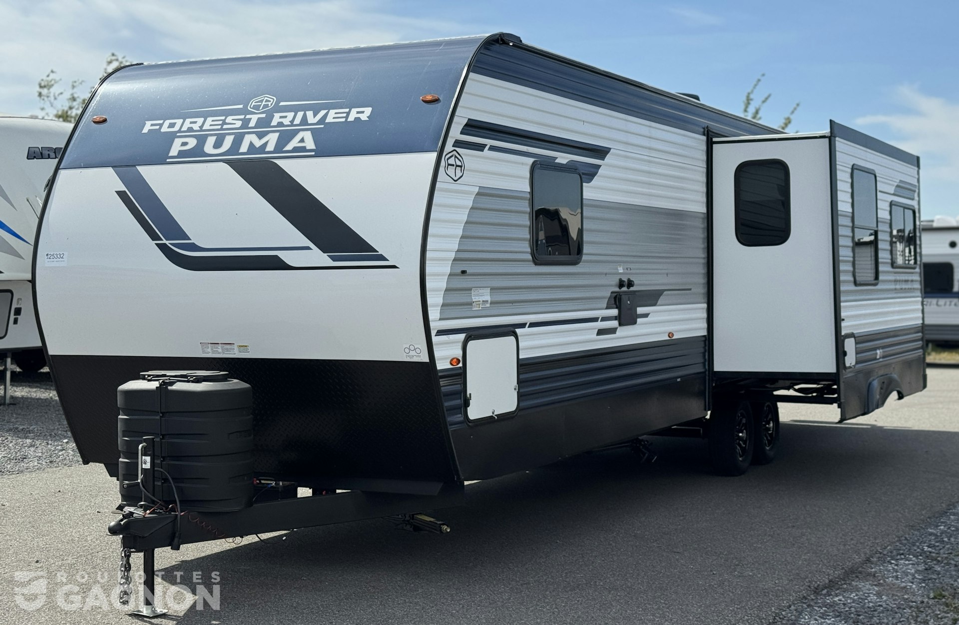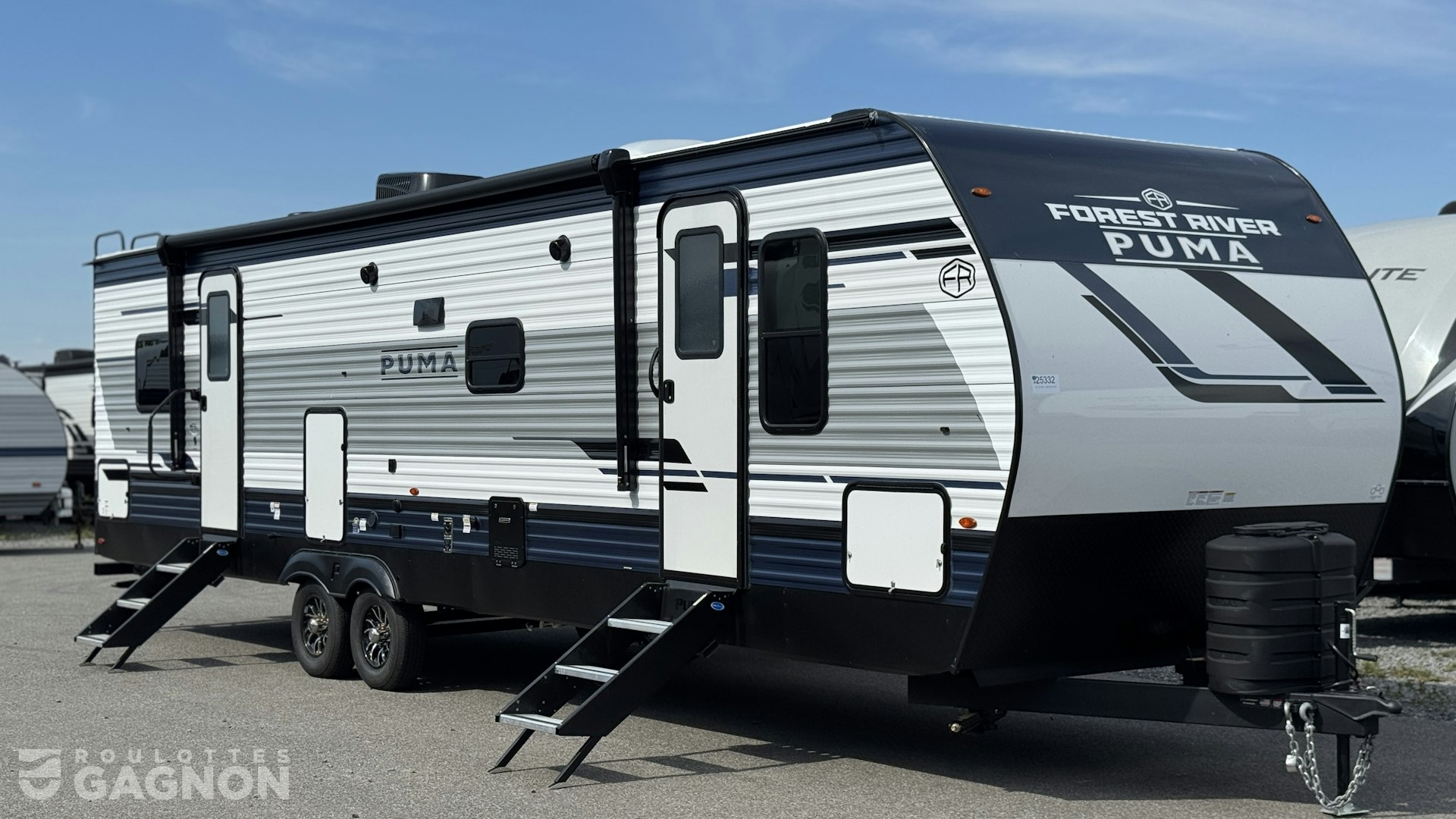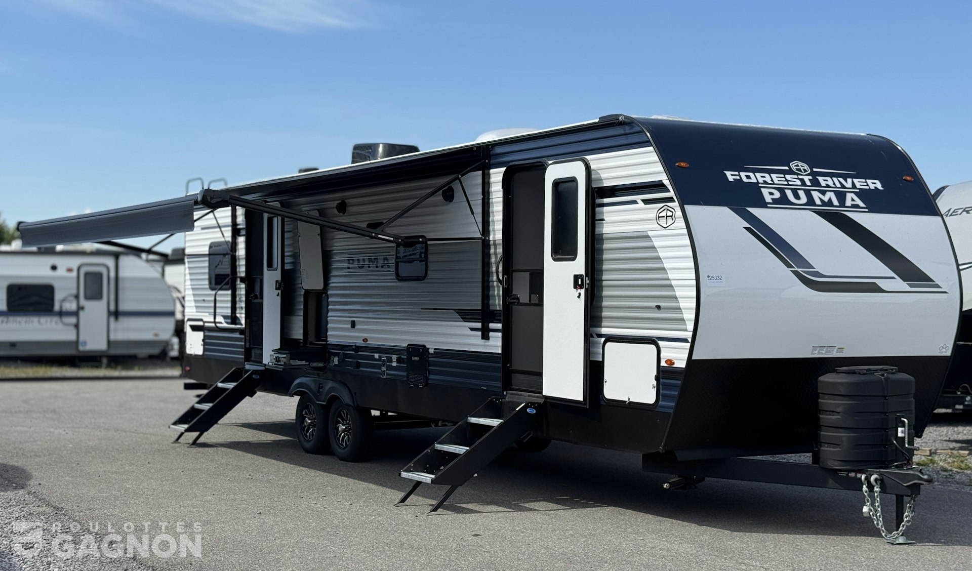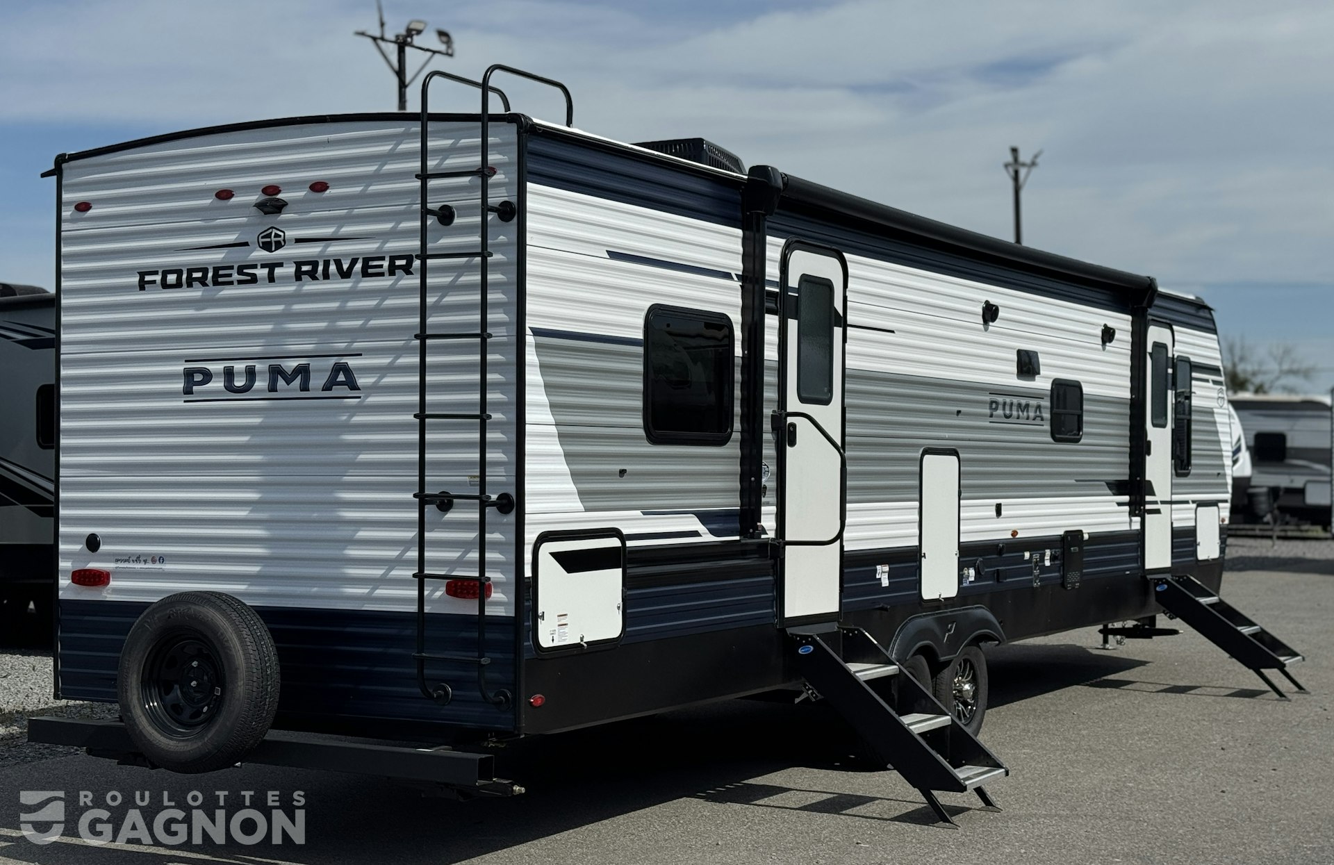 Roulotte Puma 337 BH 2026 neuve à vendre. Cette roulotte de voyage fabriquée par Forest River est idéale pour une famille et peut coucher jusqu’à 8 personnes. La Puma 337 BH mesure 37 pieds et pèse 7 463 lb, son revêtement est en aluminium et les options suivantes sont incluses : vérins stabilisateurs manuels, préparation pour caméra de recul, échelle, auvent électrique, marche pied en un bloc (solid step), prise câble ou satellite, bluetooth, prise USB, radio, hauts parleurs extérieurs, éclairage au DEL, cuisinette extérieure, climatiseur, puits de lumière, douche extérieure, mags, spray port, foyer électrique, prises usb c et chauffe-eau instantané.