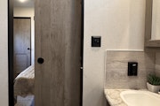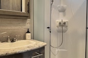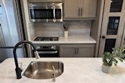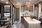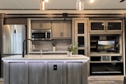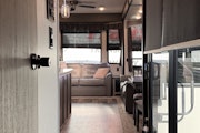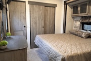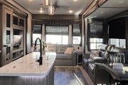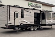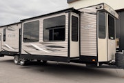 Roulotte Residence 40 MKTS 2021 usagée à vendre. Cette roulotte de voyage fabriquée par Keystone est idéale pour un couple et peut coucher jusqu’à 4 personnes. La Residence 40 MKTS mesure 40,8 pieds et pèse 11 846 lb, son revêtement est en aluminium et les options suivantes sont incluses : vérins stabilisateurs manuels, trois auvents électriques, prise câble ou satellite, téléviseur, radio, hauts parleurs extérieurs, éclairage au DEL, climatiseur, puits de lumière, douche extérieure et préparation pour laveuse et sécheuse.