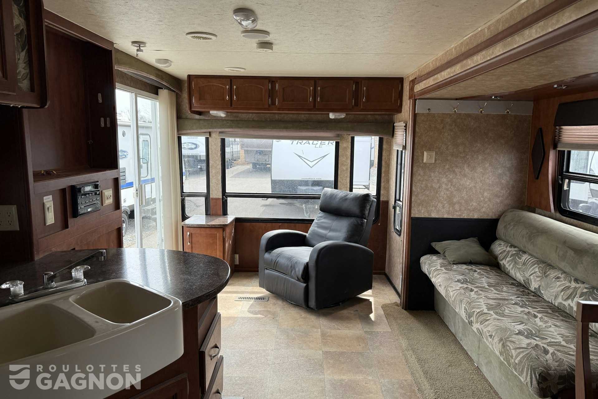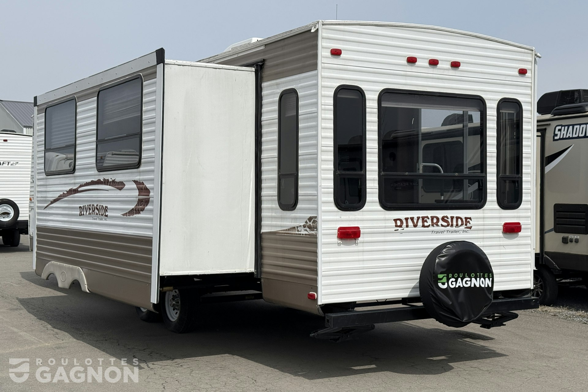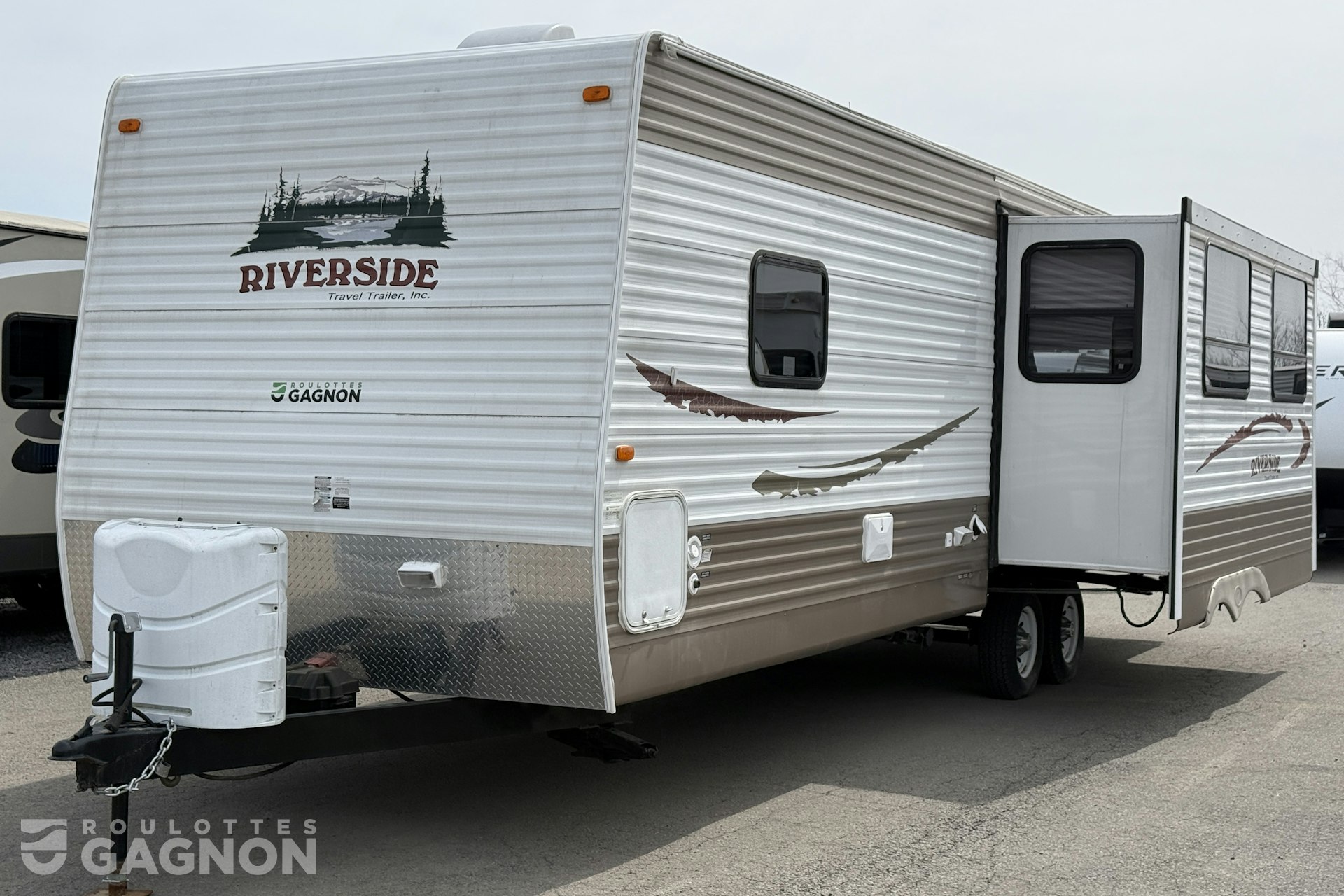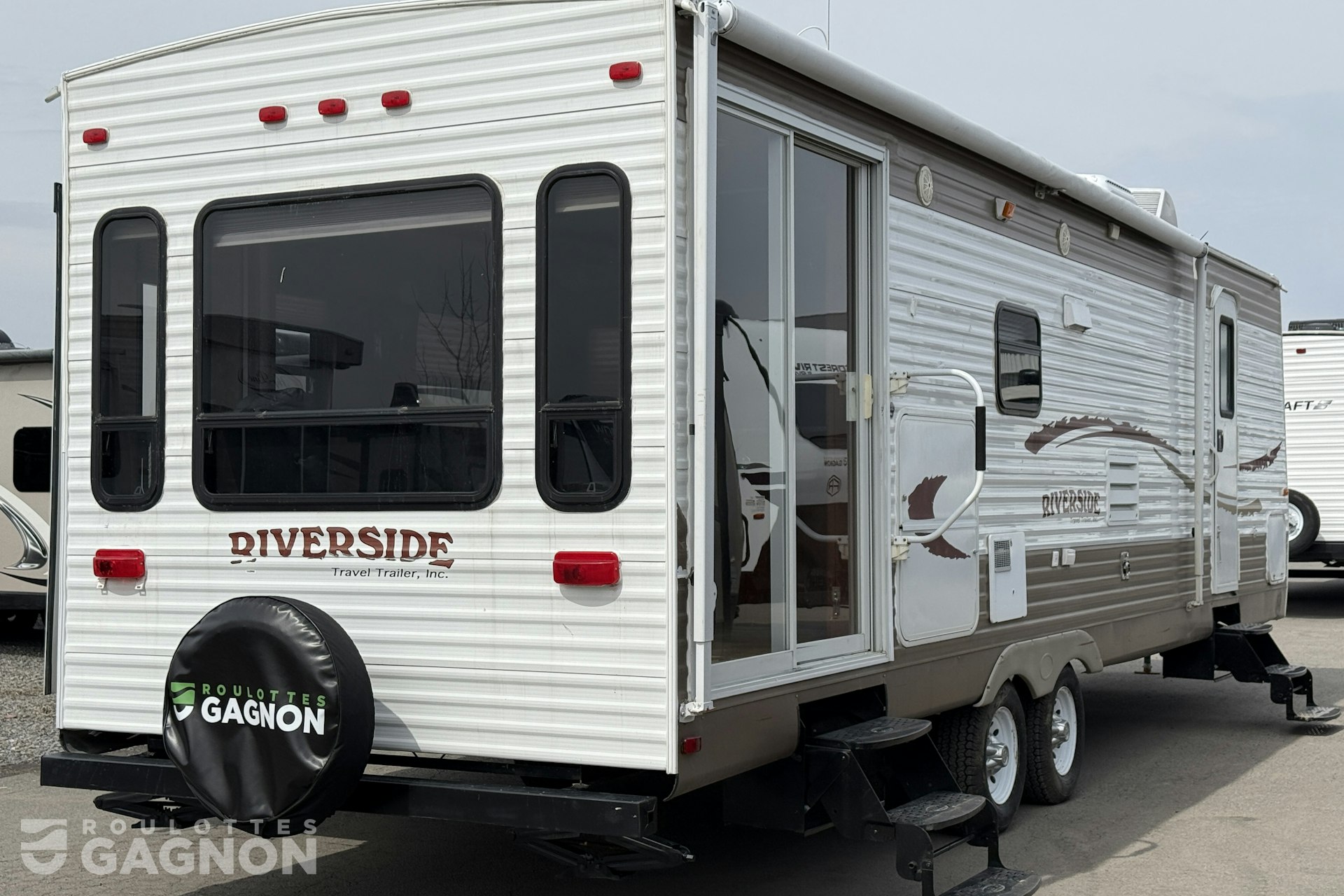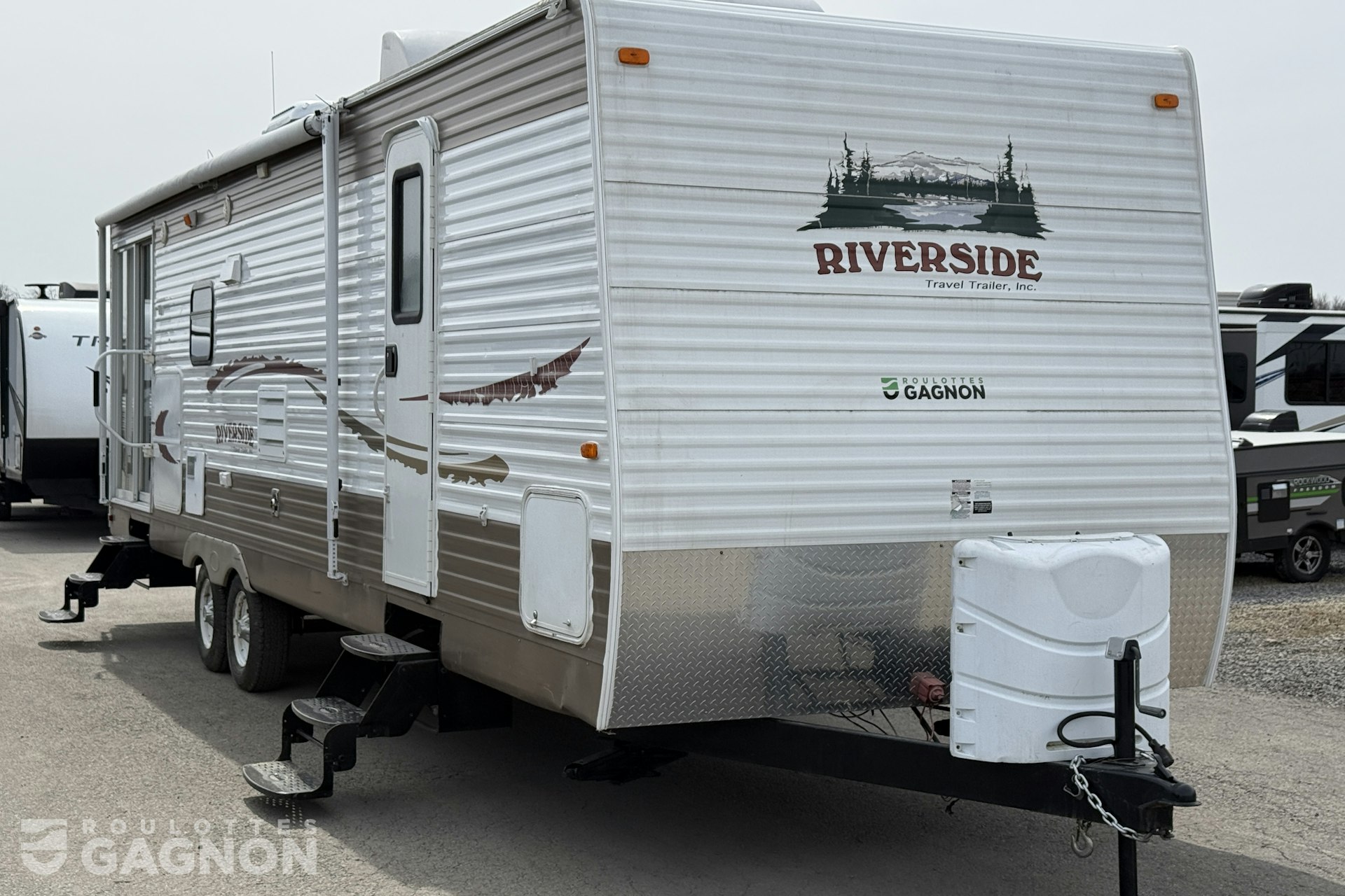 Roulotte Riverside 29 RLS 2011 usagée à vendre. Cette roulotte de voyage fabriquée par Riverside est idéale pour un couple. La Riverside 29 RLS mesure 32 pieds, son revêtement est en aluminium et les options suivantes sont incluses : vérins stabilisateurs manuels, auvent manuel