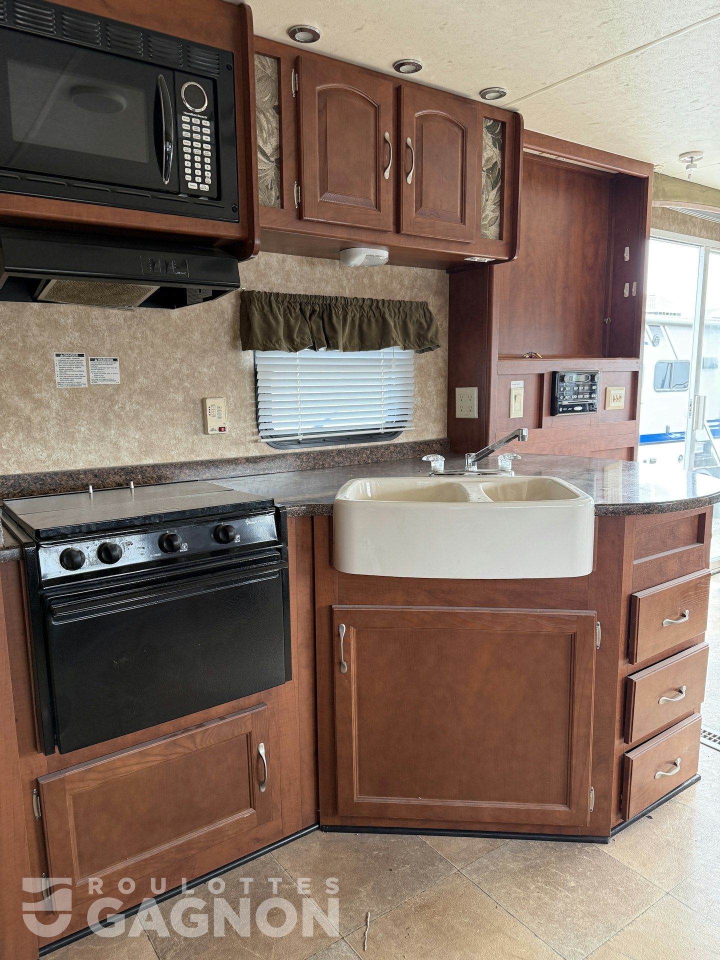 Note: Nous nous efforçons pour décrire les spécifications et les options des roulottes affichées sur notre site le plus précisément possible, toutefois, des erreurs peuvent se glisser. Nous sommes désolés si tel était le cas. Les photos sont à titre indicatif seulement. Les couleurs et les options peuvent varier selon les derniers changements apportés par le fabricant.