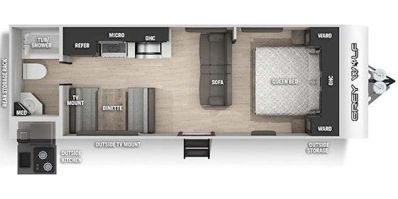 Roulotte Grey Wolf 24JS 2022 usagée à vendre. Cette roulotte de voyage fabriquée par Fores River est idéale pour un couple et peut coucher jusqu’à 6 personnes. La Grey Wolf 24JS 2022 mesure 27 pieds et pèse 4395 lb, son revêtement est en aluminium et les options suivantes sont incluses : auvent électrique, caméra de recul incluse, climatiseur, cuisinette extérieure, éclairage au DEL, hauts parleurs extérieurs, jack de pole électrique, mags, marche pied en un bloc (solid step), plateforme cargo, prise câble ou satellite, prise USB, puits de lumière, radio et vérins stabilisateurs manuels.